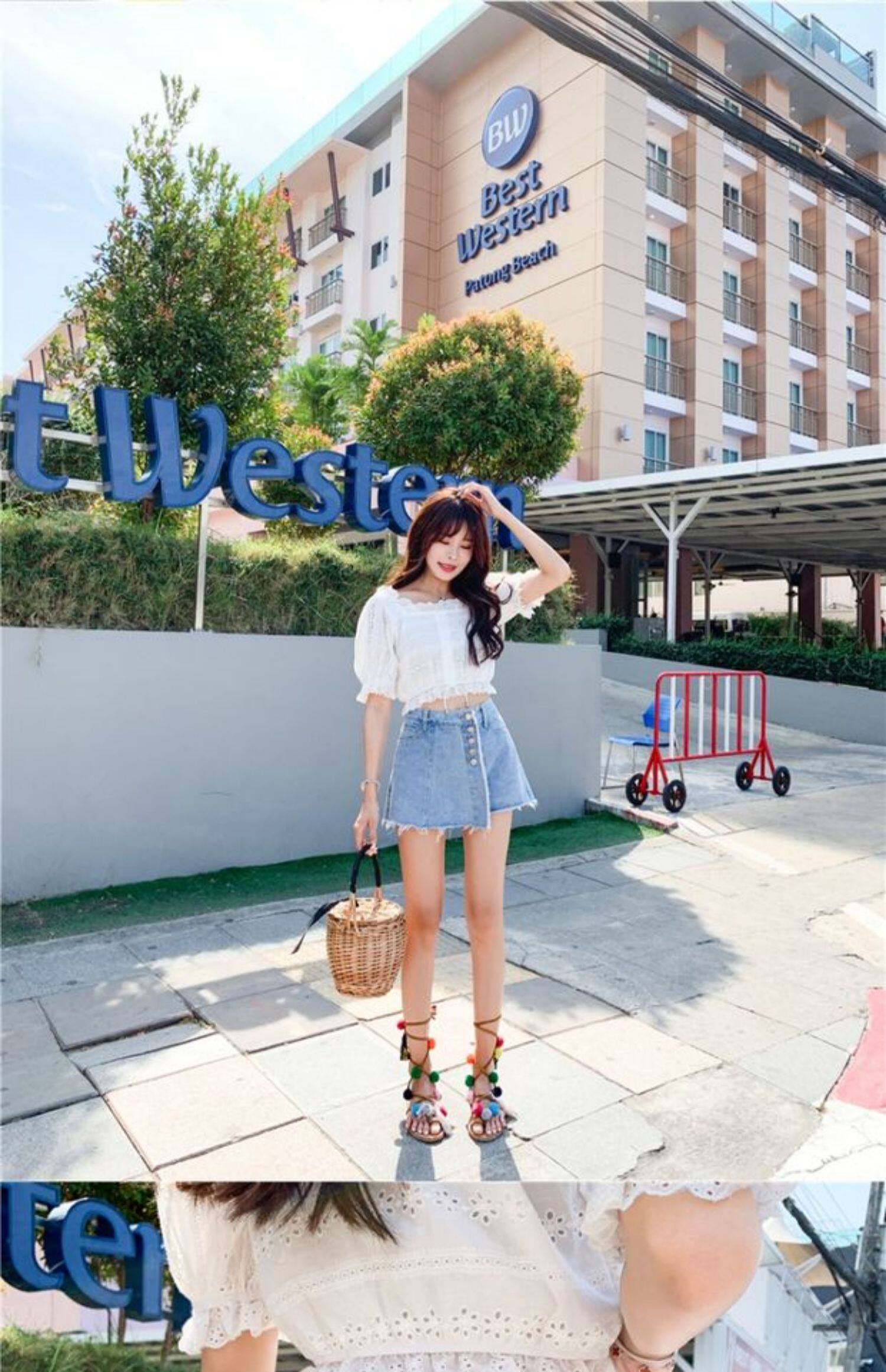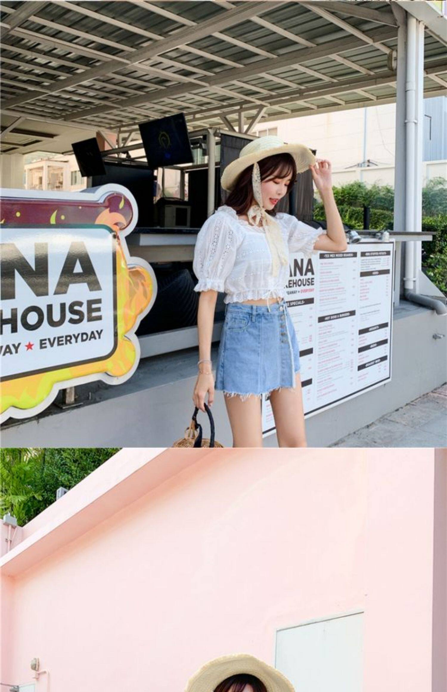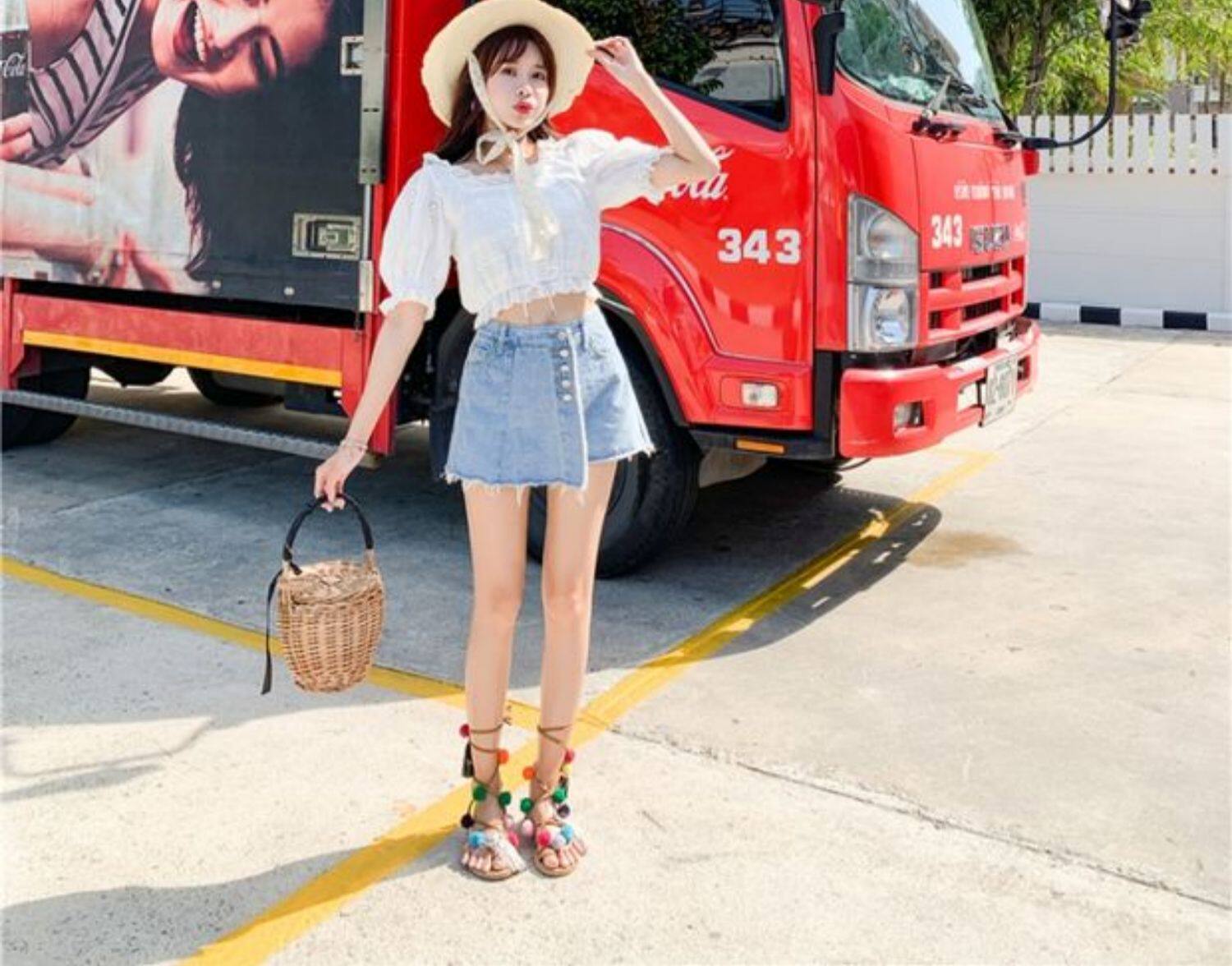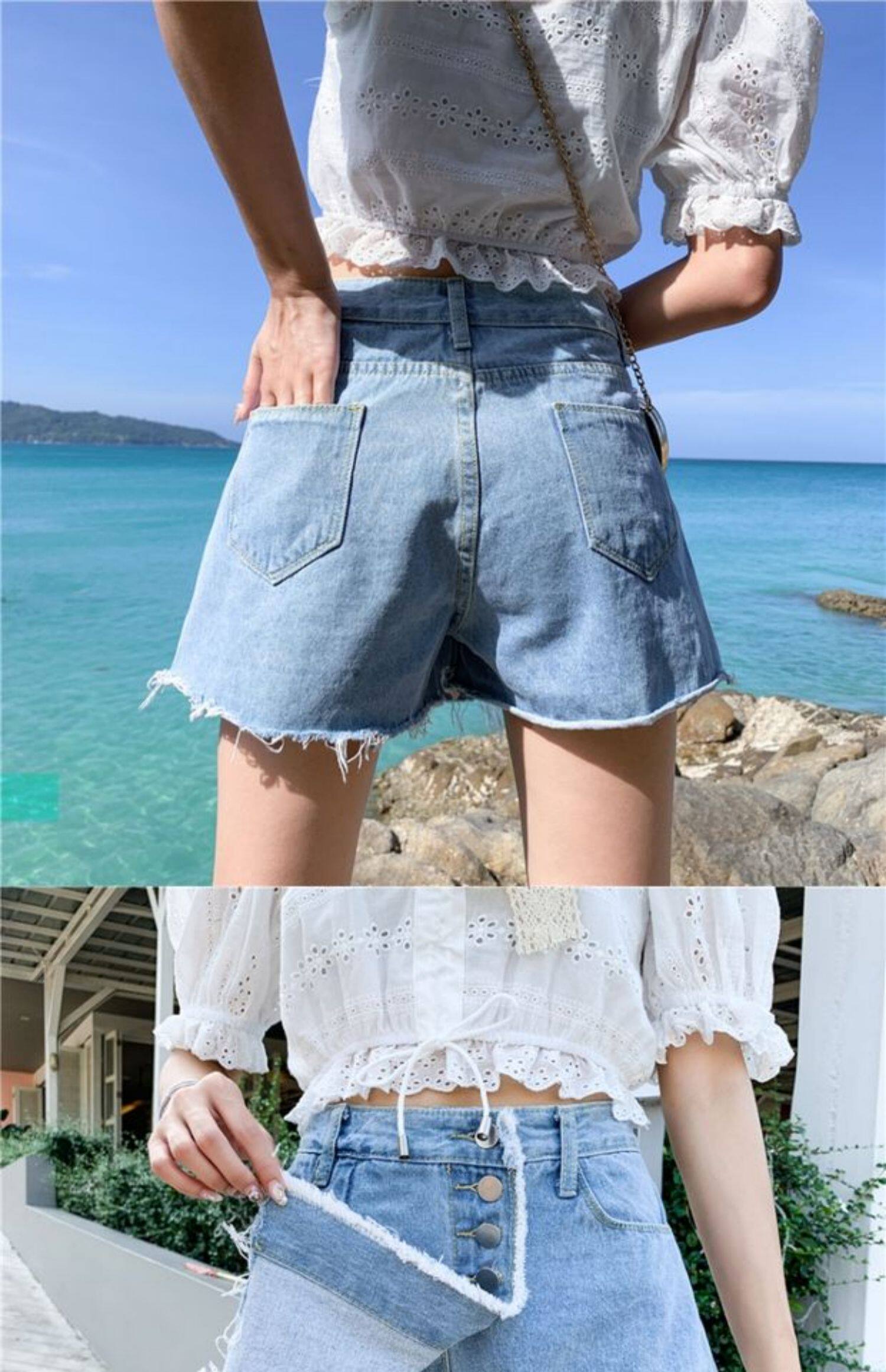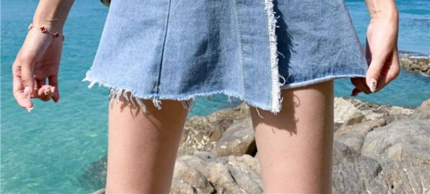 Джинсовая юбка, шорты, летние штаны, в корейском стиле, высокая талия, большой размер, свободный крой
