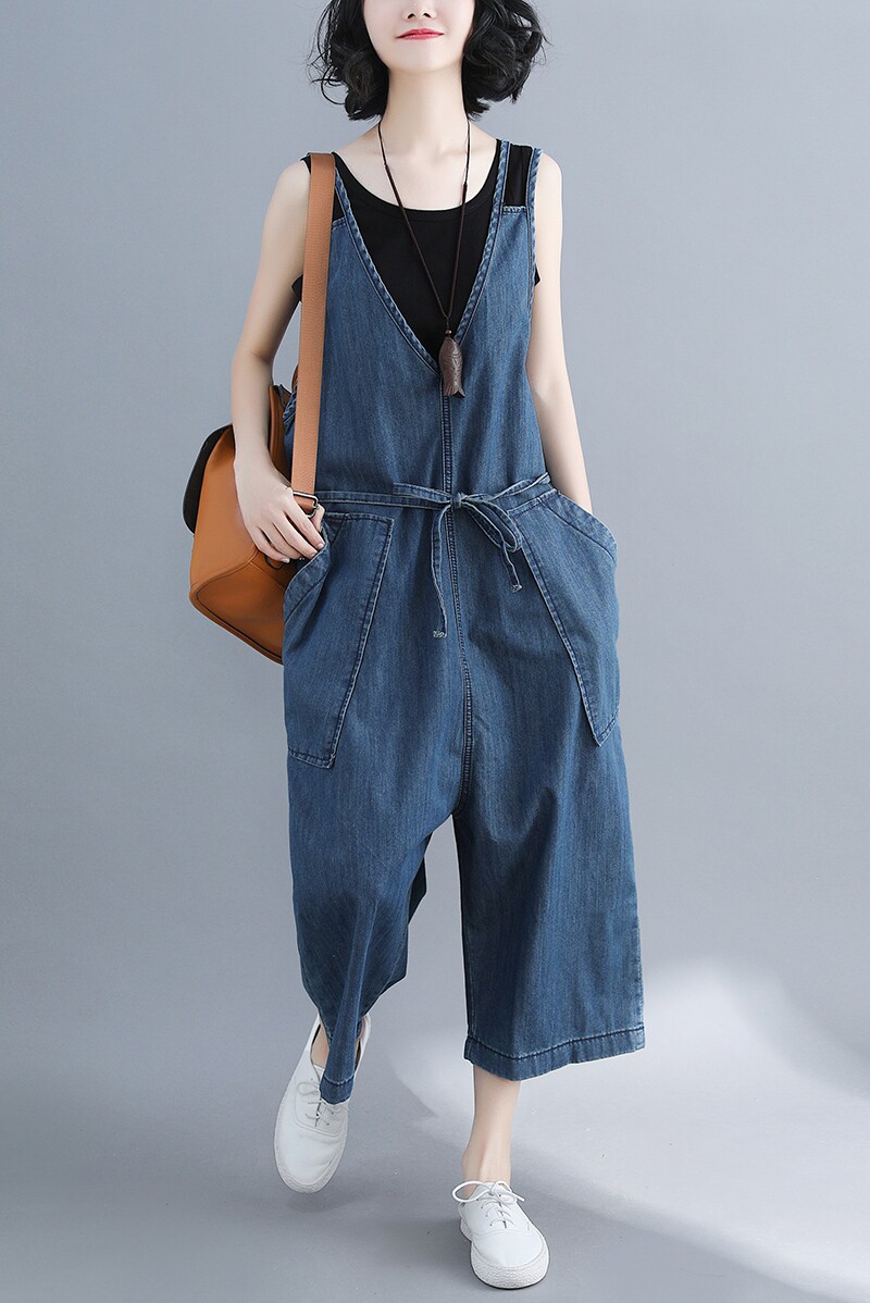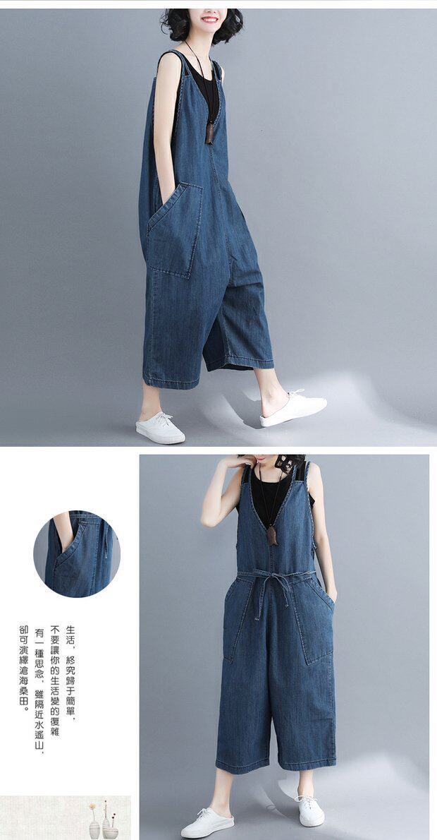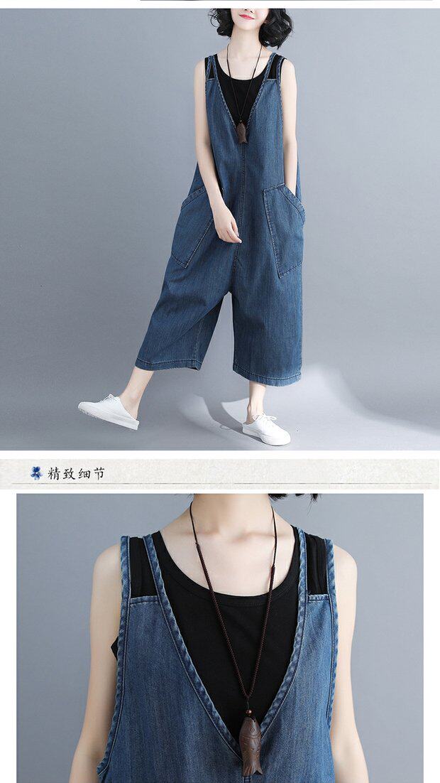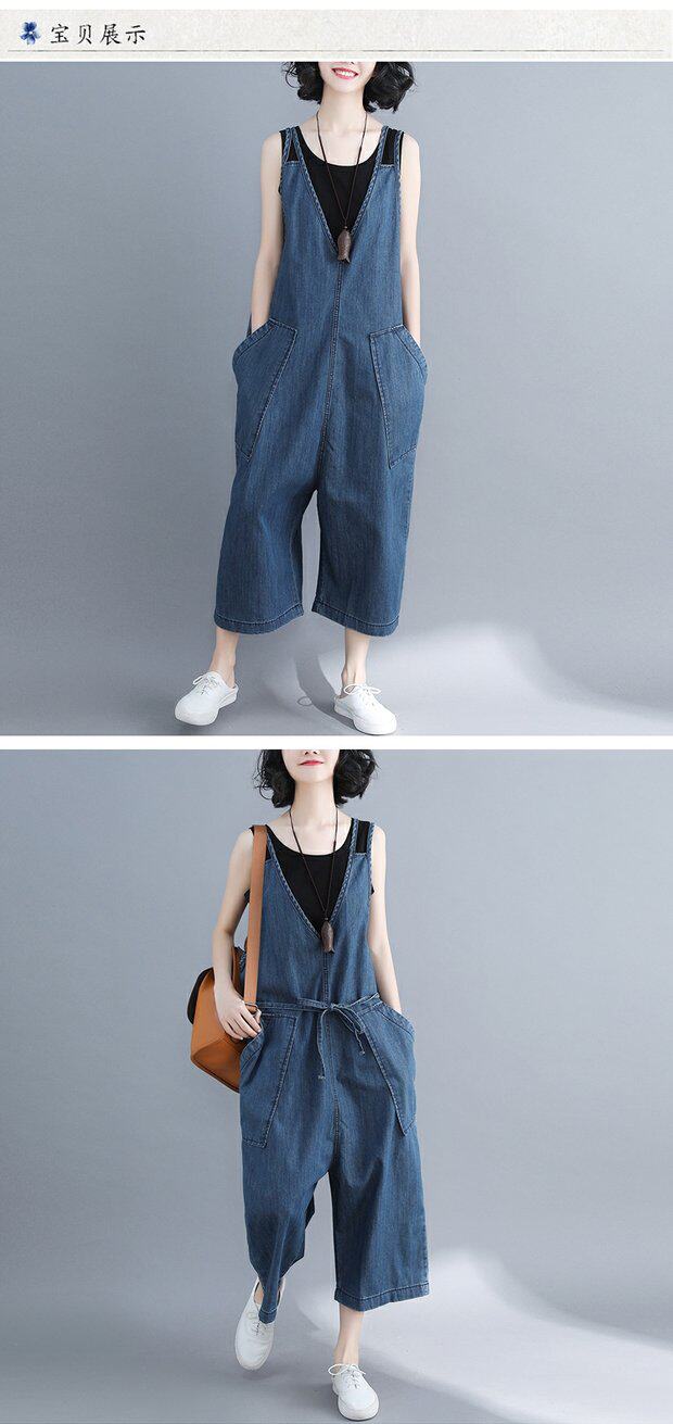 Джинсовый комбинезон, штаны, универсальная летняя одежда, в корейском стиле, большой размер, по фигуре, свободный крой