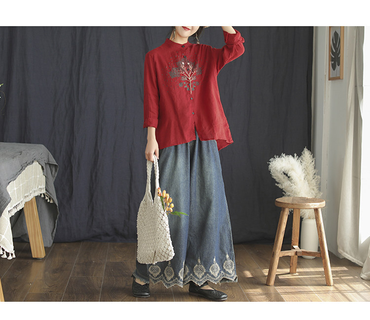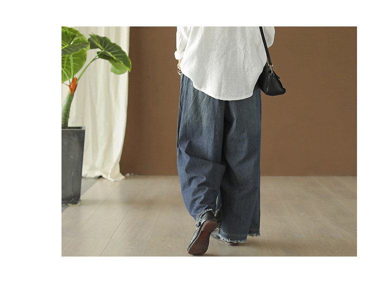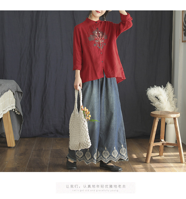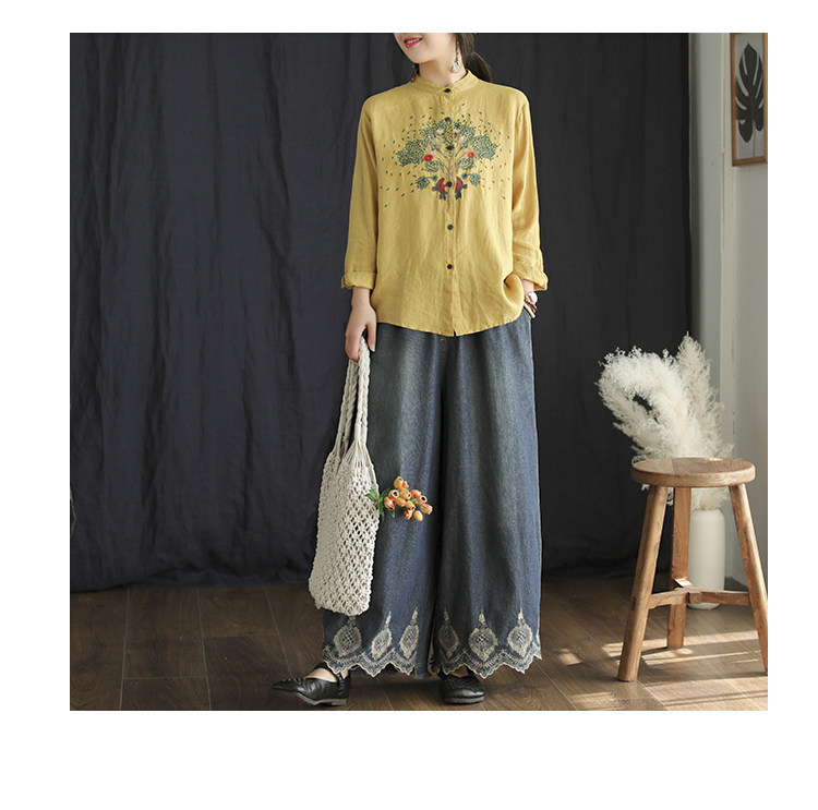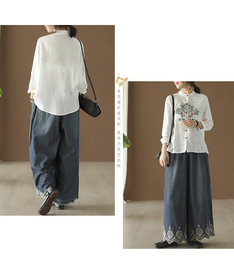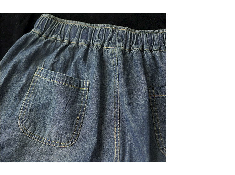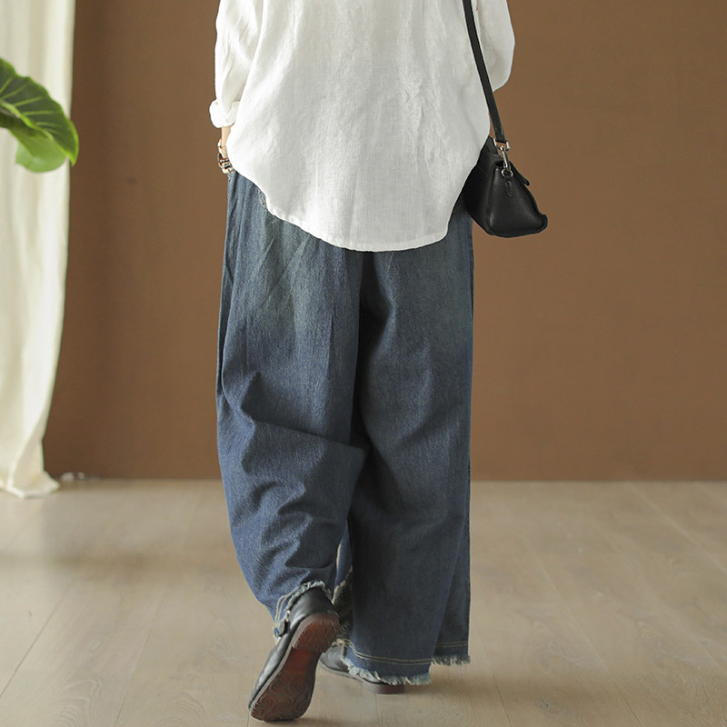 Хлопковые джинсовые весенние ретро штаны, с вышивкой, эластичная талия
