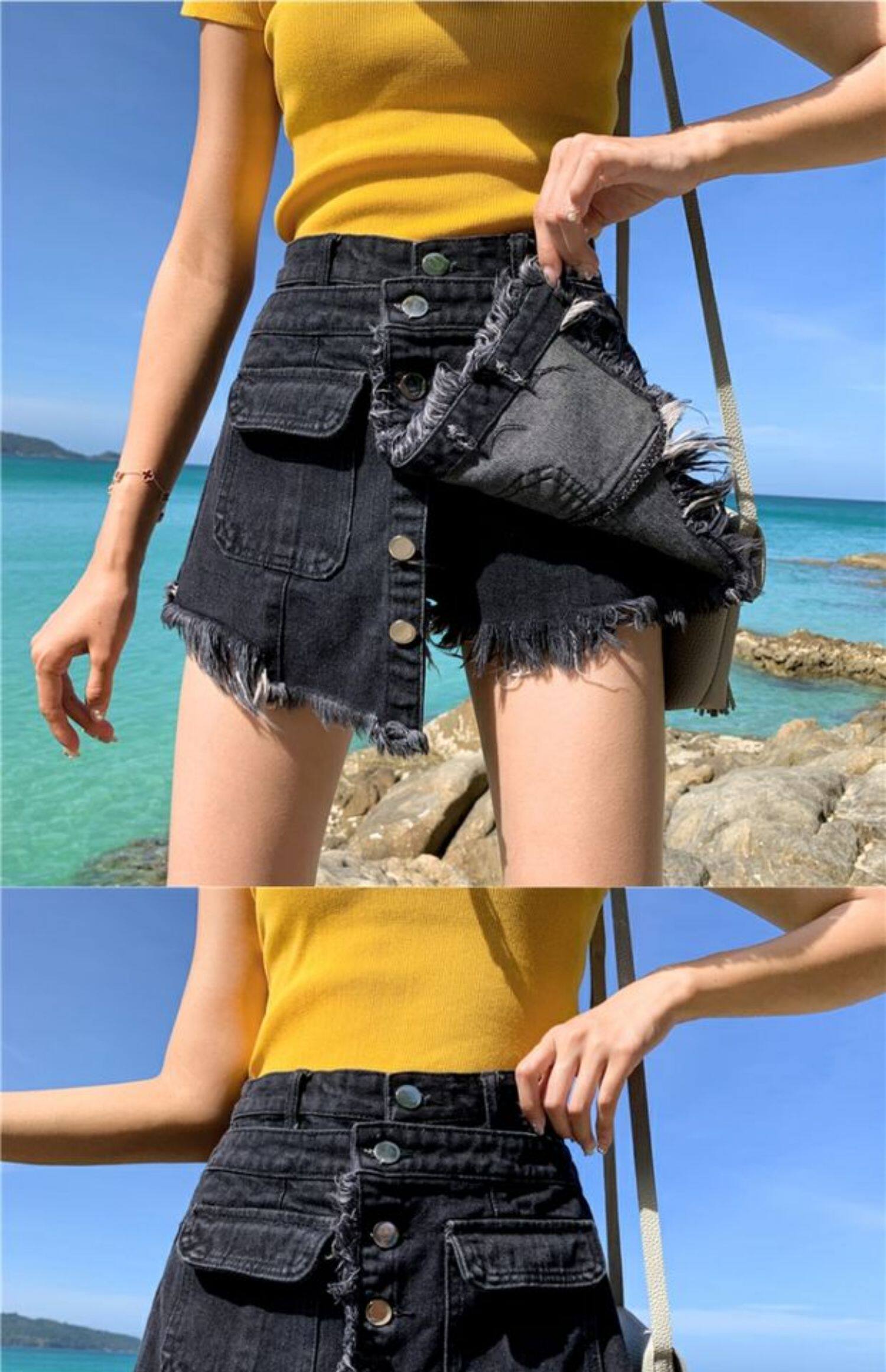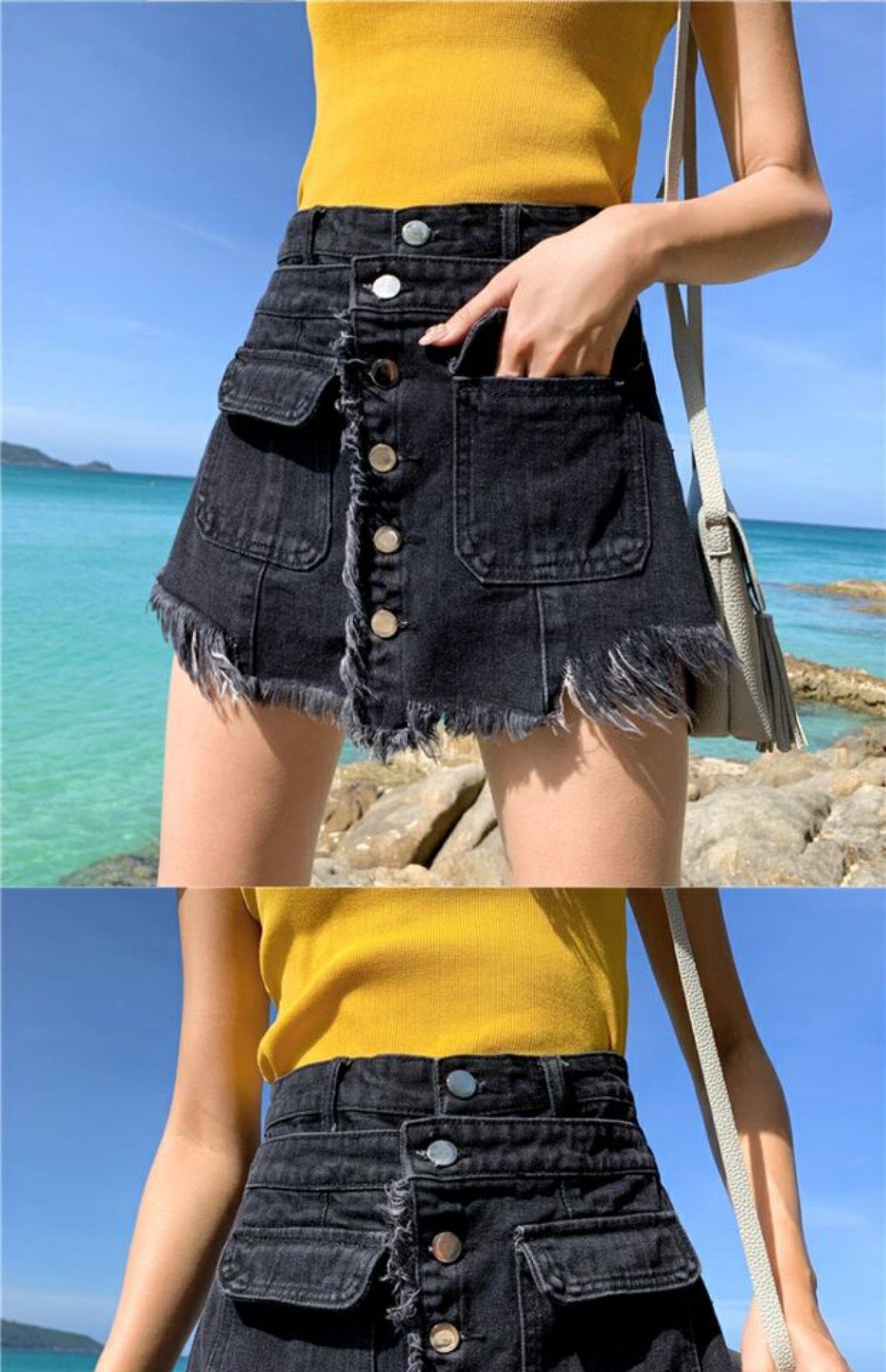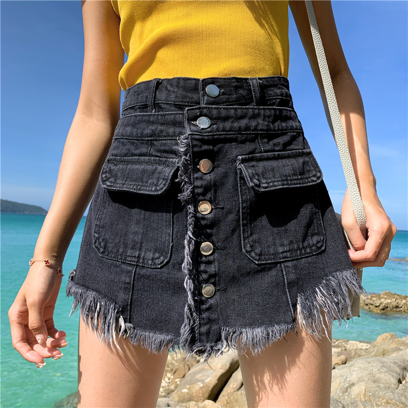 Джинсовая юбка, шорты, штаны для школьников, 2020, в корейском стиле, большой размер, высокая талия, свободный крой, А-силуэт