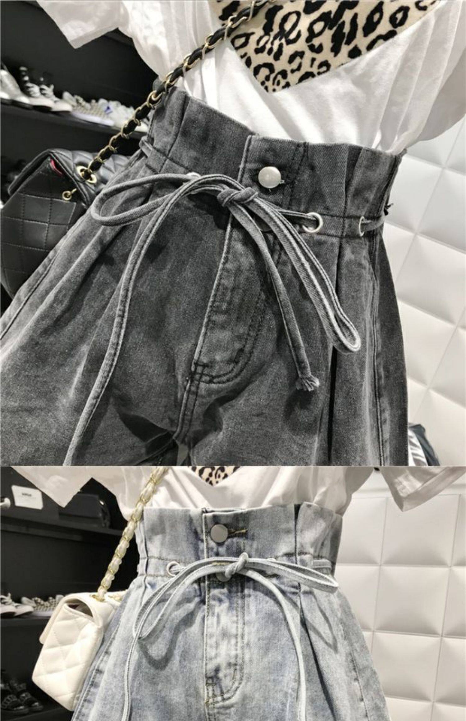 Джинсовая юбка, шорты, штаны для школьников, в корейском стиле, большой размер, оверсайз, А-силуэт, свободный крой