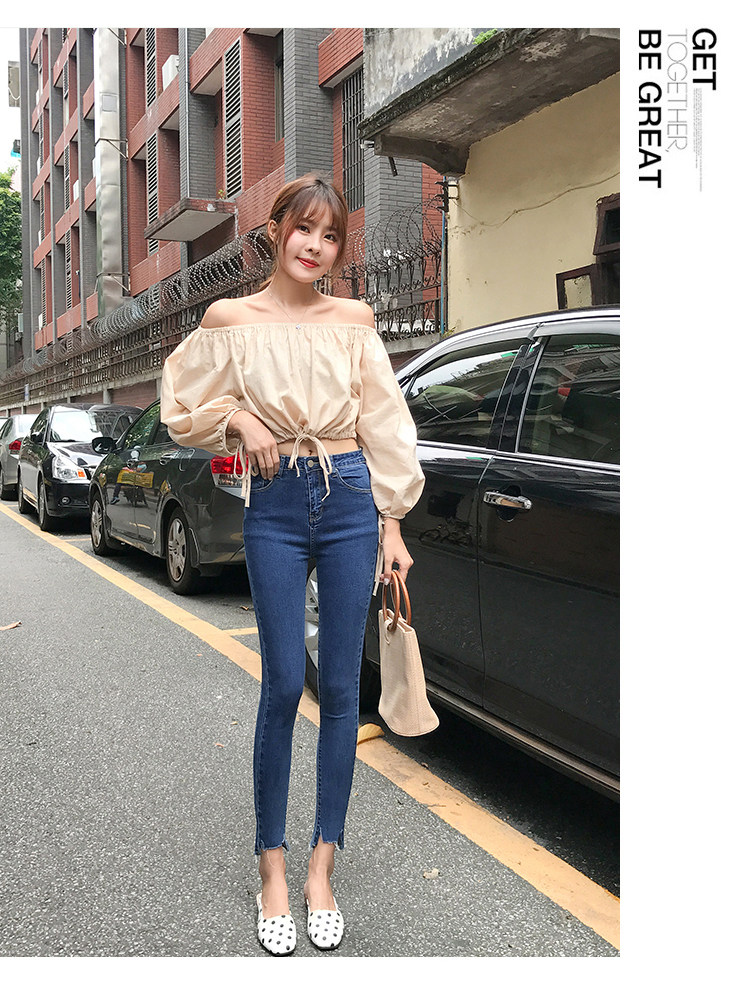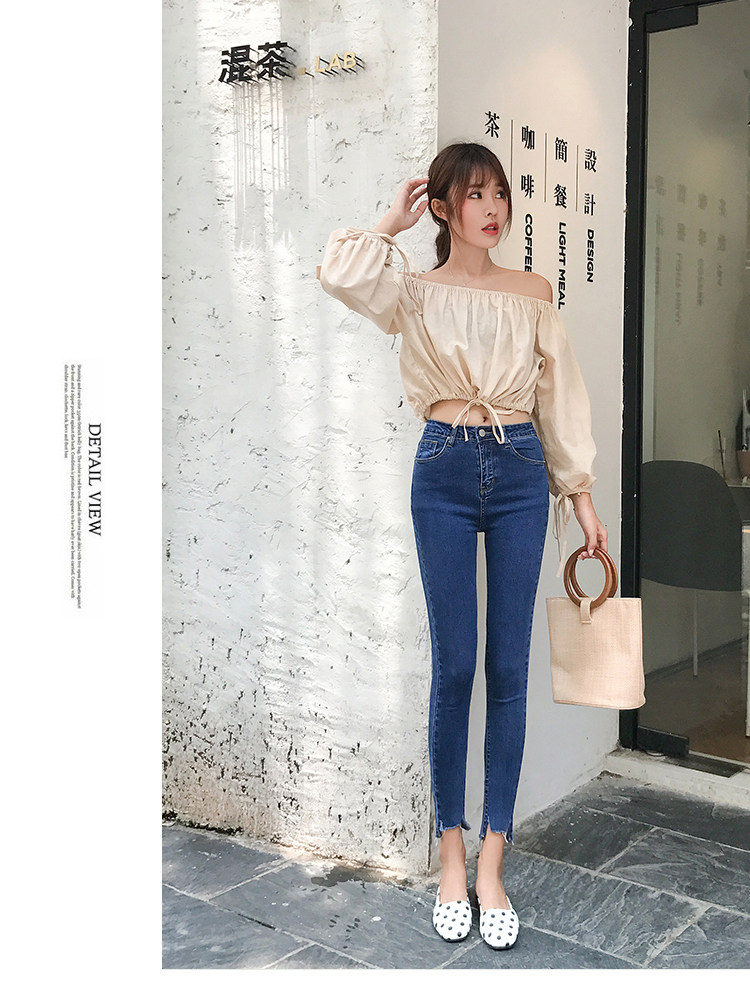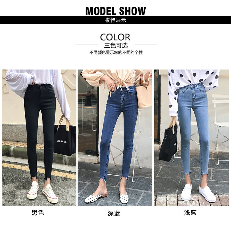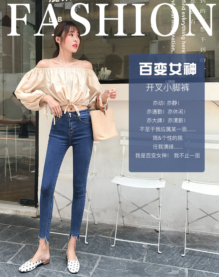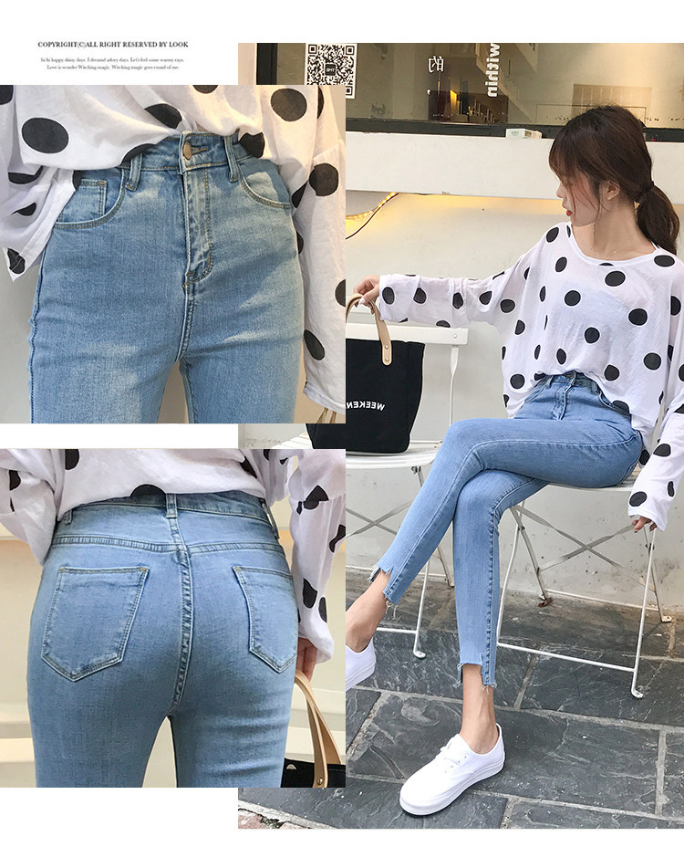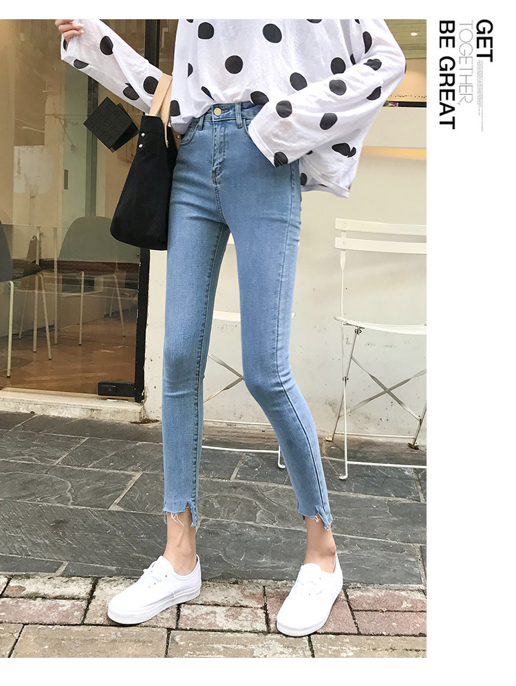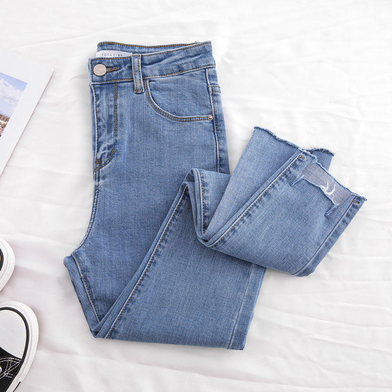 Осенние джинсы, светлые штаны, карандаш для школьников, высокая талия, в обтяжку