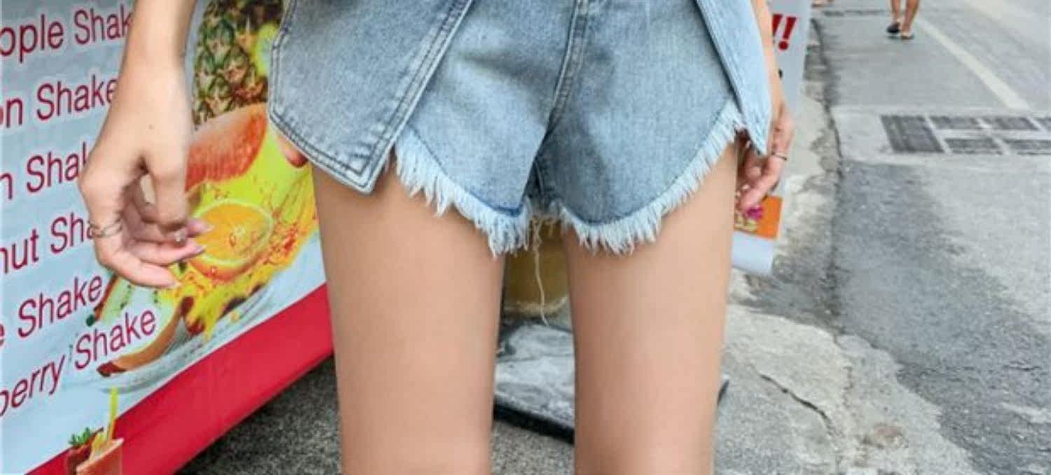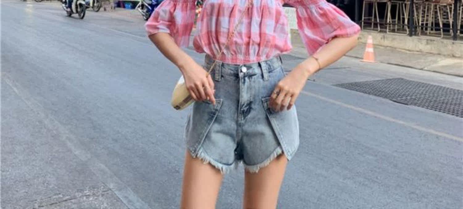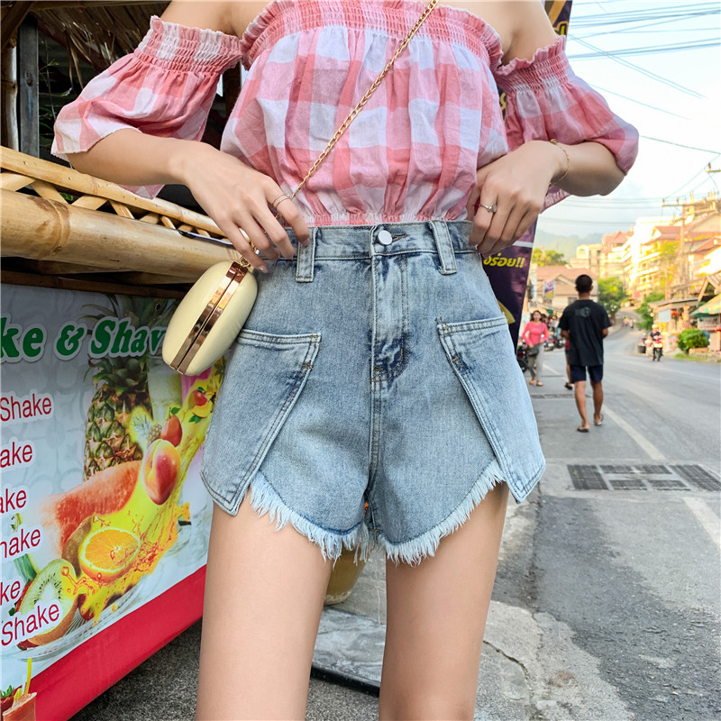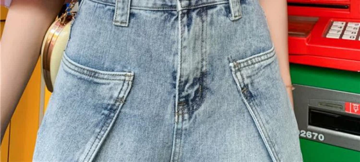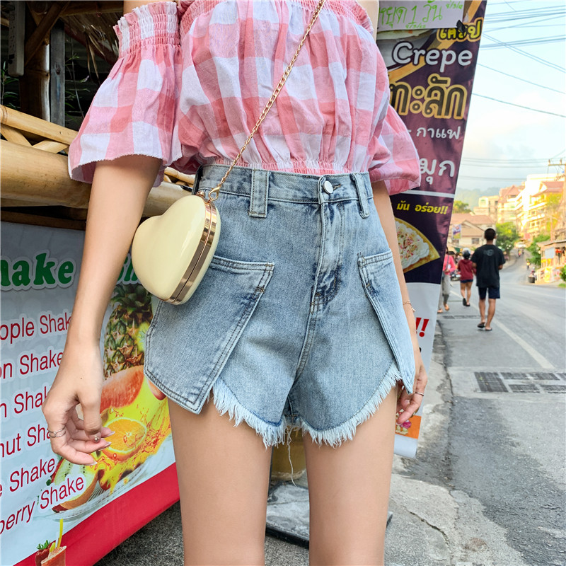 Джинсовая юбка, шорты, штаны, коллекция 2021, в корейском стиле, большой размер, высокая талия, свободный крой, А-силуэт