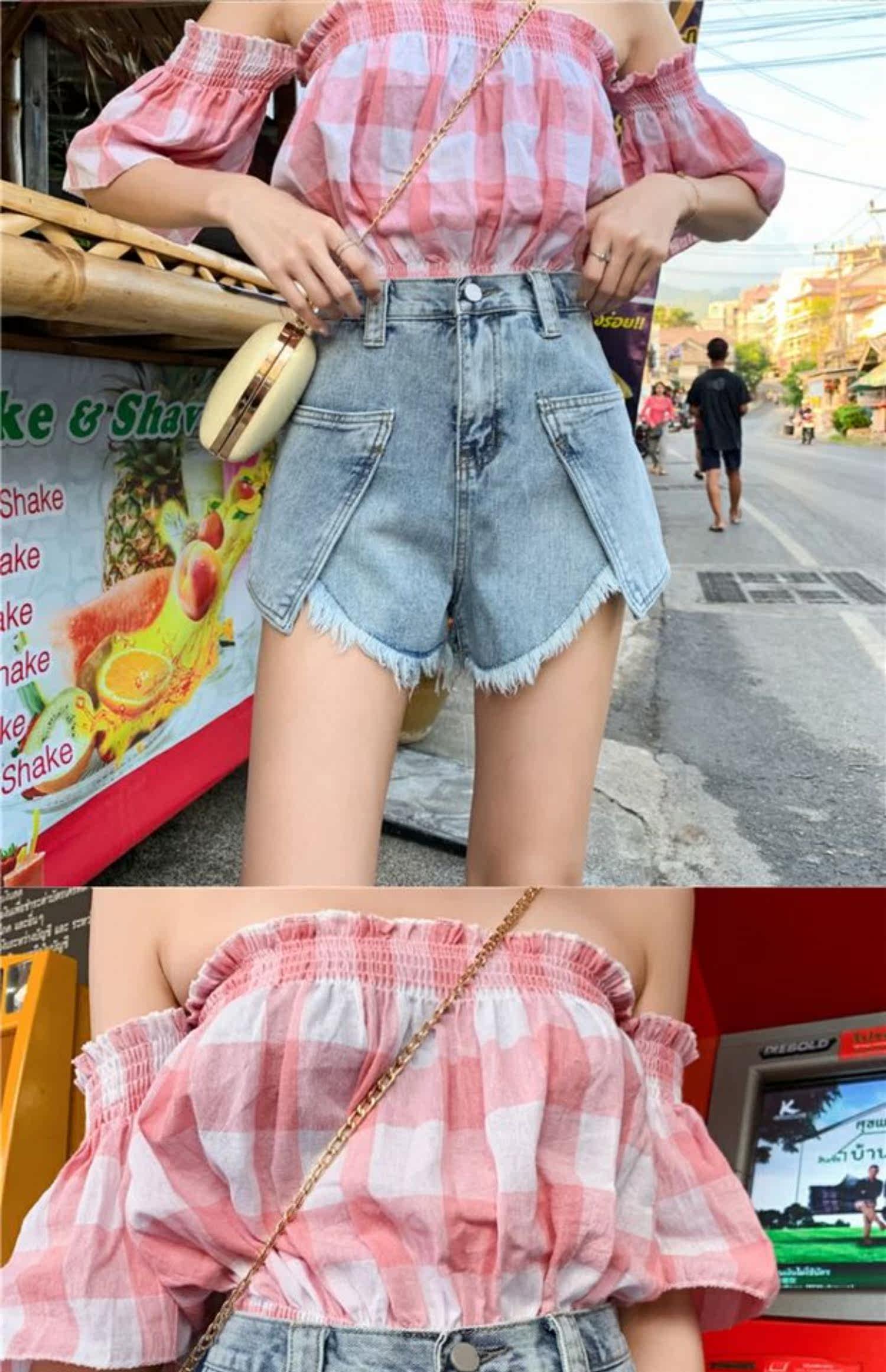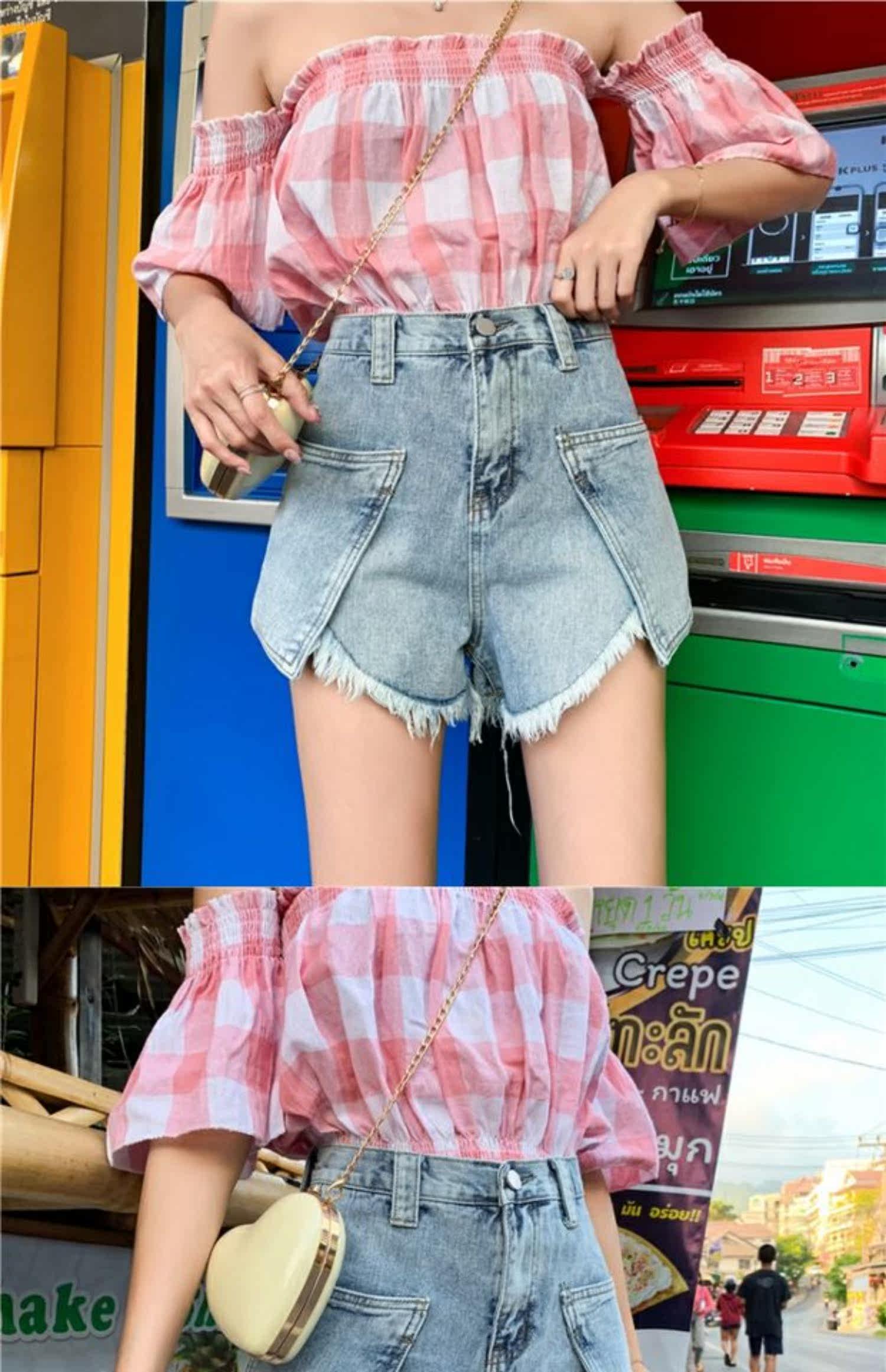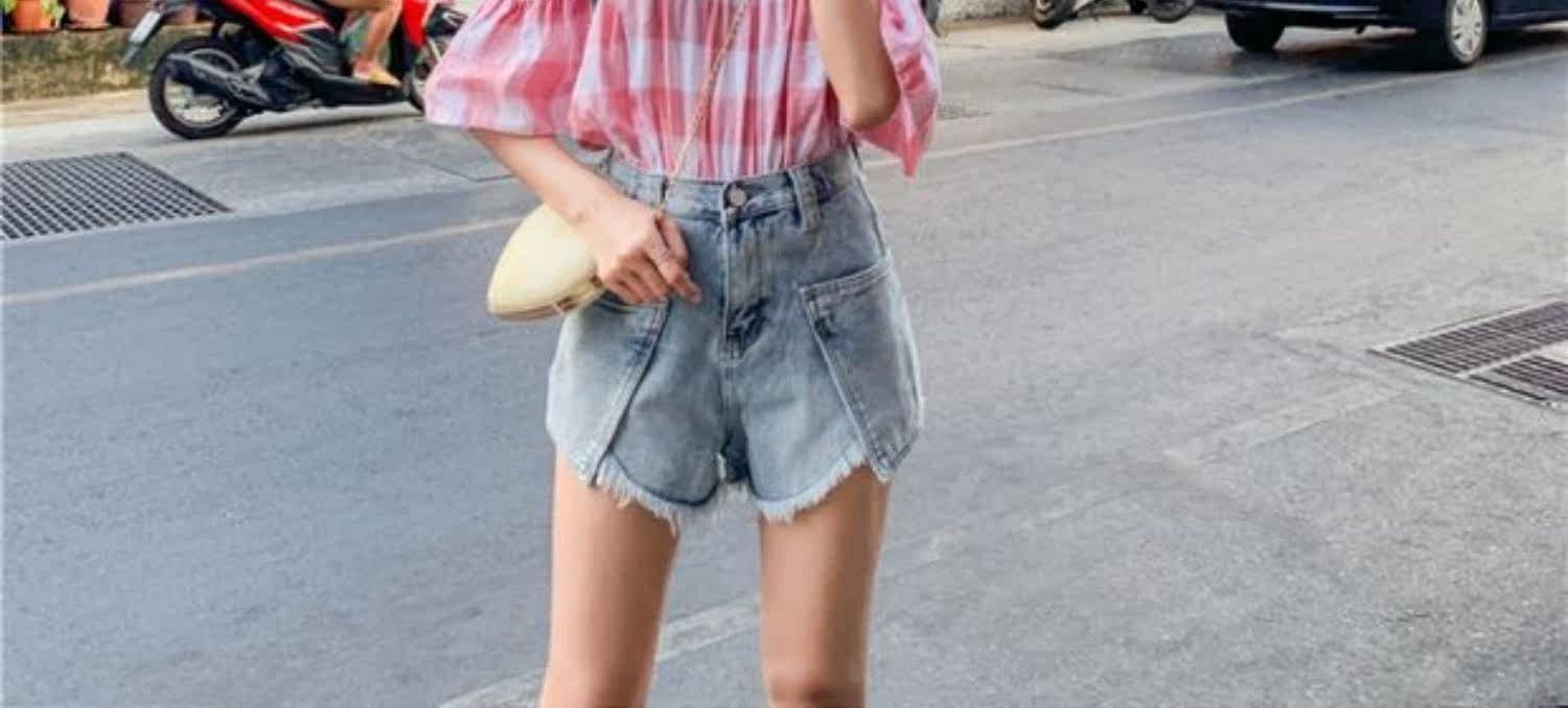 Джинсовая юбка, шорты, штаны, коллекция 2021, в корейском стиле, большой размер, высокая талия, свободный крой, А-силуэт