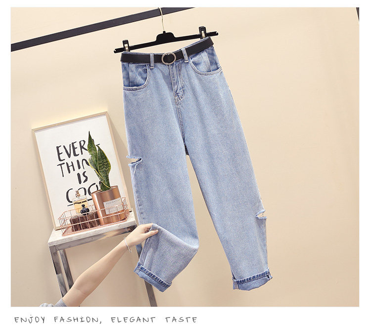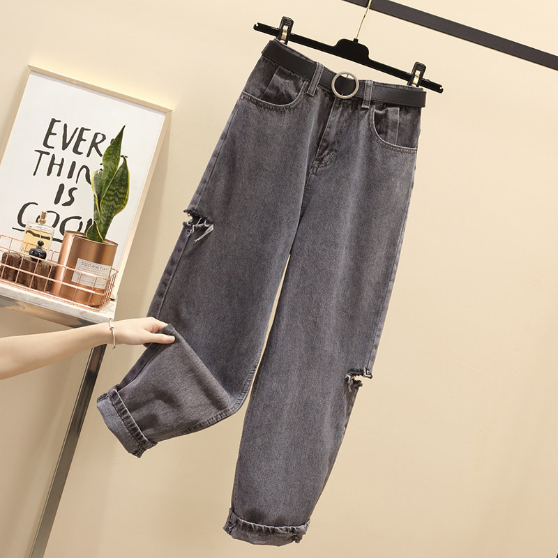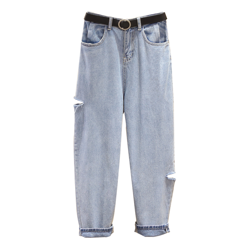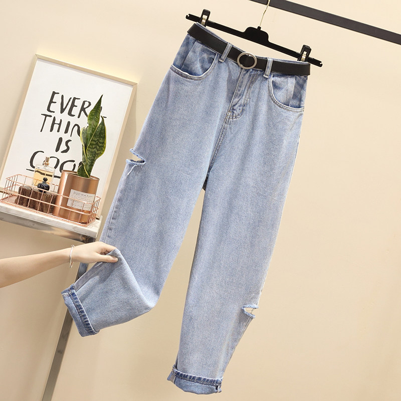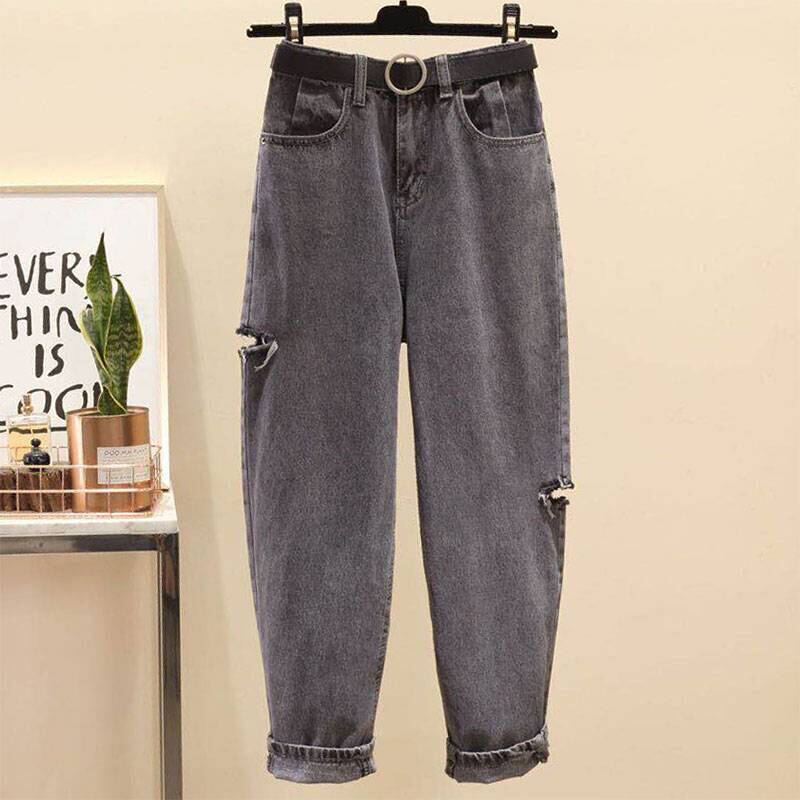 Летние джинсы, штаны, в корейском стиле, большой размер, высокая талия, свободный крой