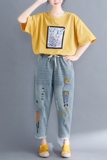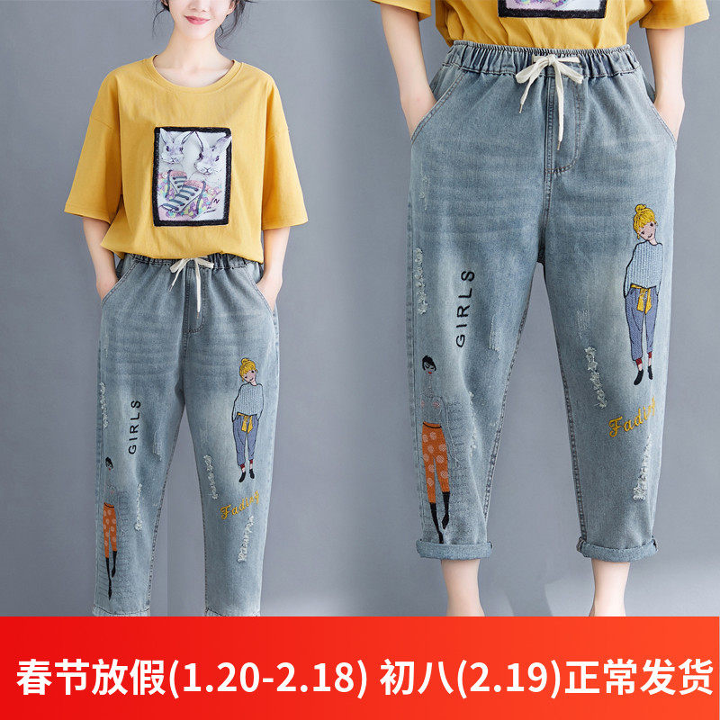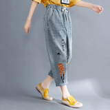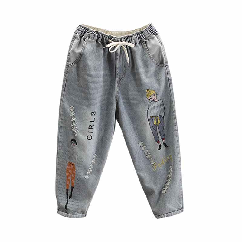 Джинсы, ретро штаны для отдыха, с вышивкой, свободный крой, эластичная талия, по фигуре