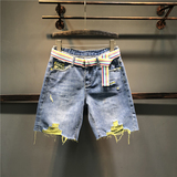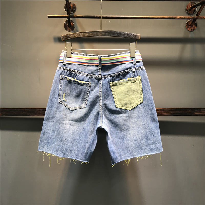 Джинсы, летние штаны, шорты, высокая талия, оверсайз, свободный прямой крой