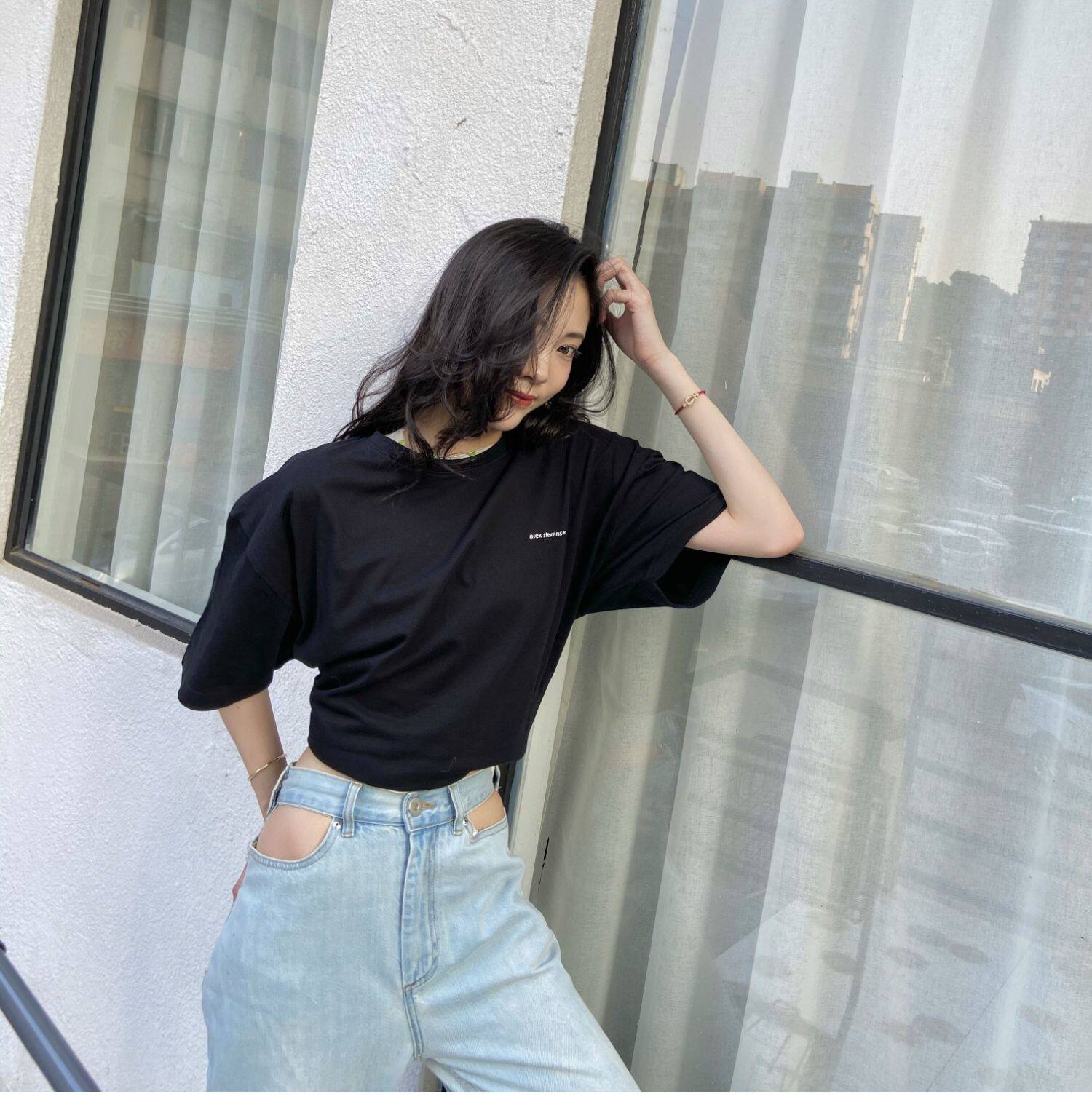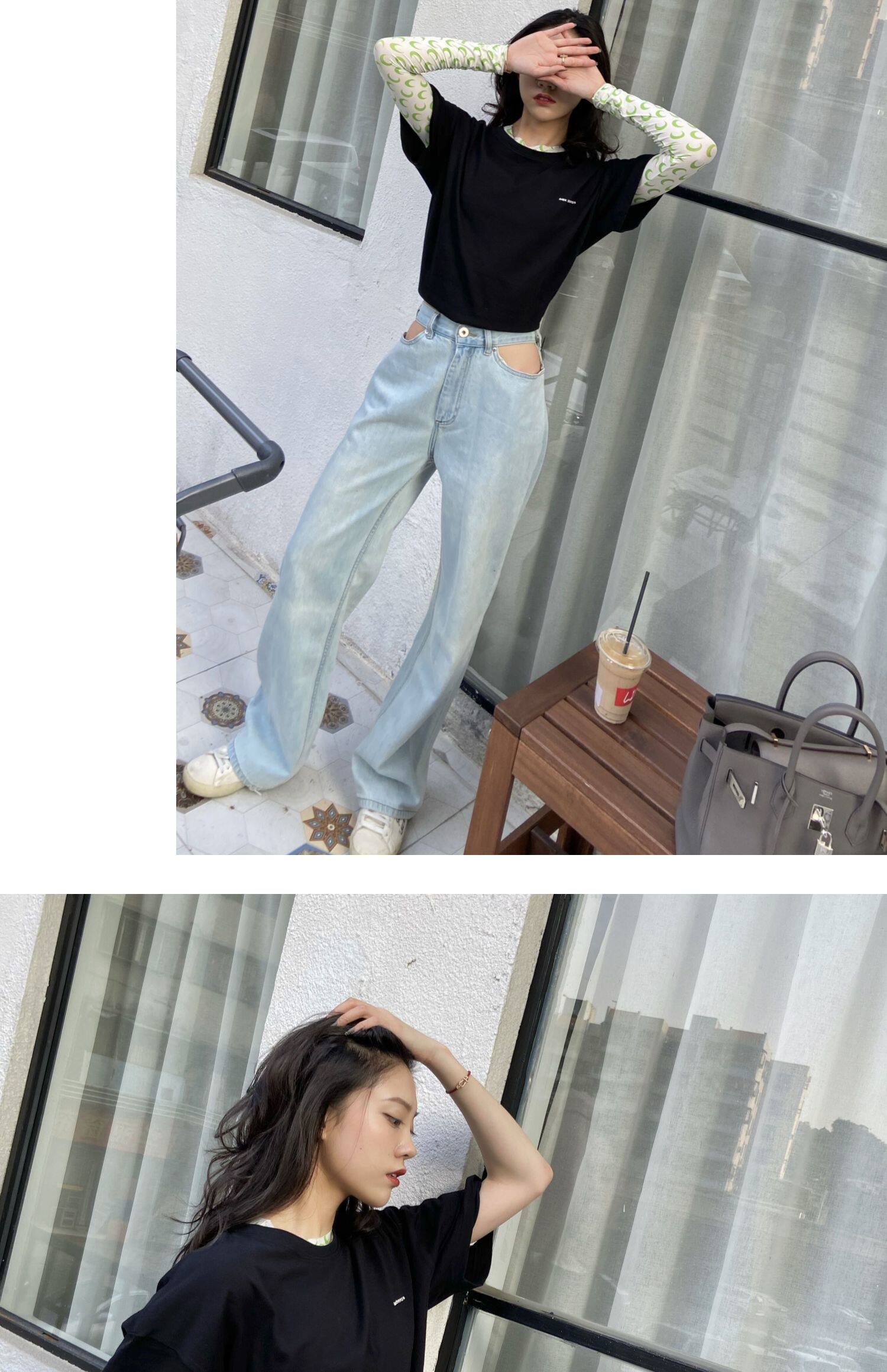 Летние штаны, джинсовые джинсы, высокая талия, свободный прямой крой