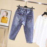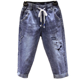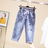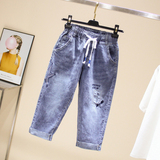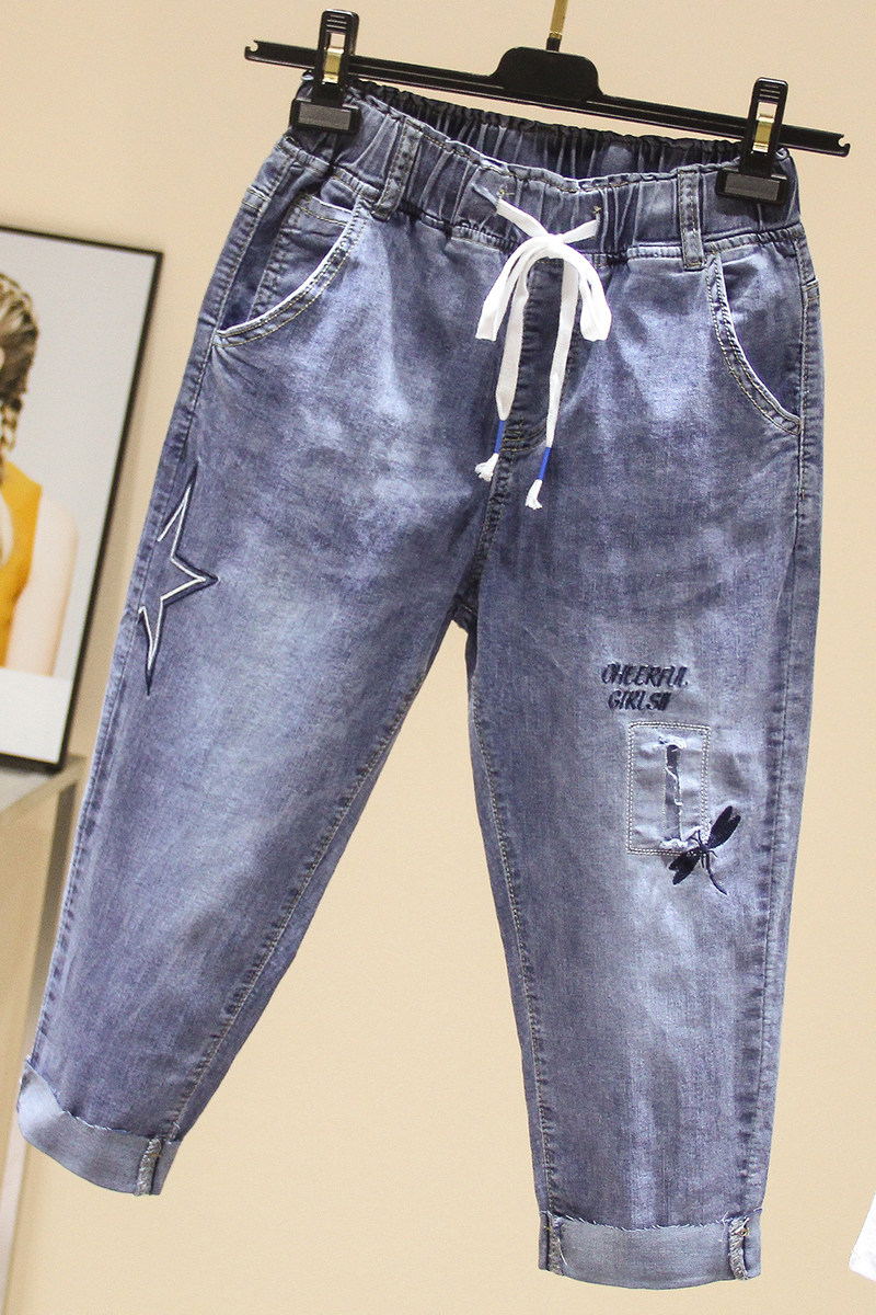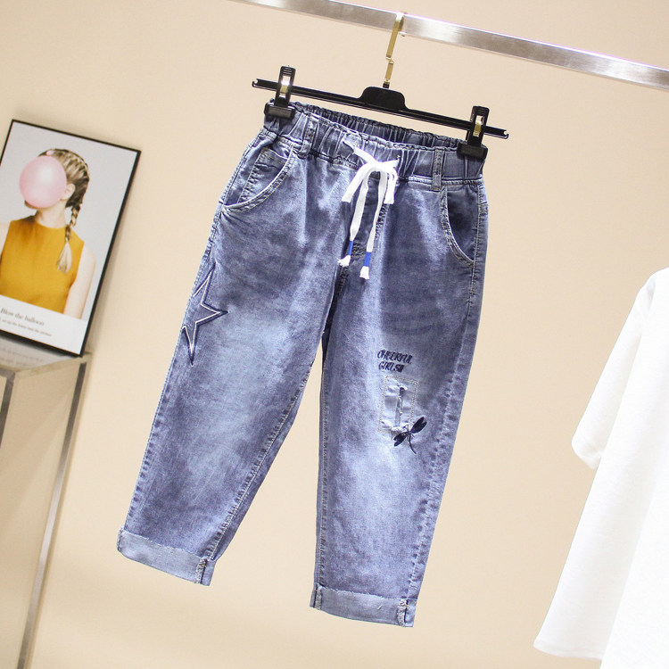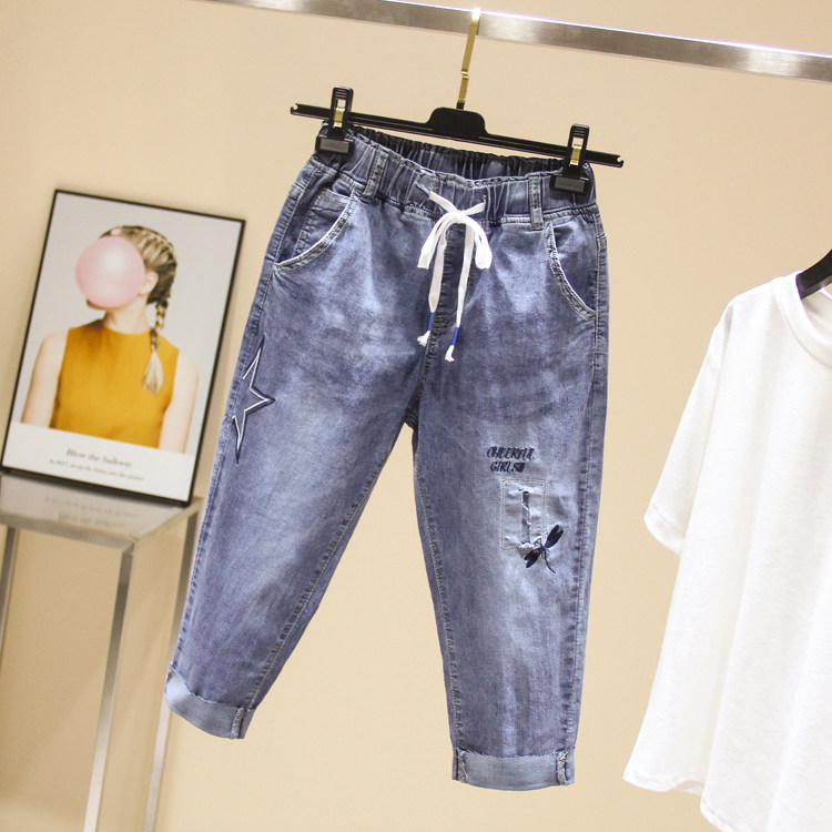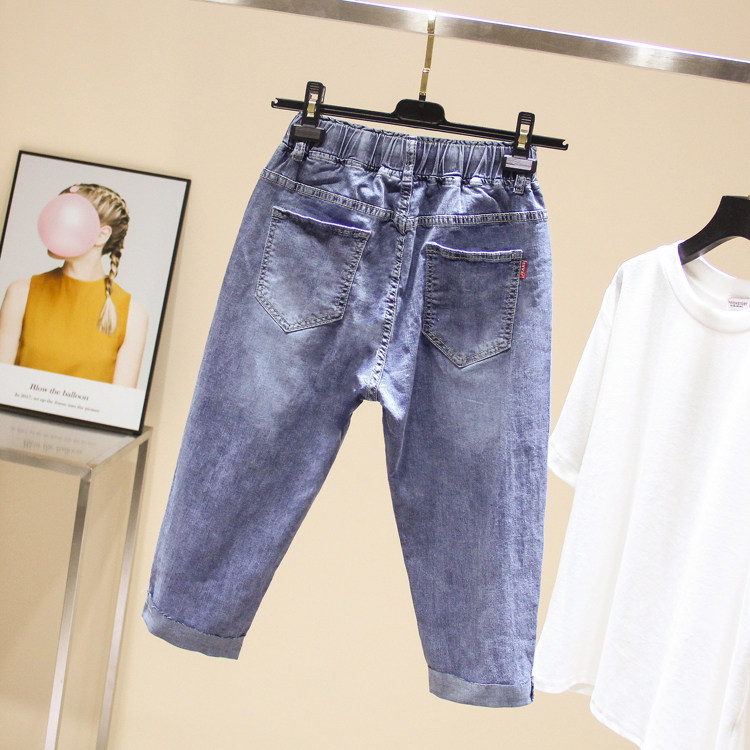 Эластичные джинсовые летние приталенные штаны, большой размер, подходит для полных девушек, высокая талия