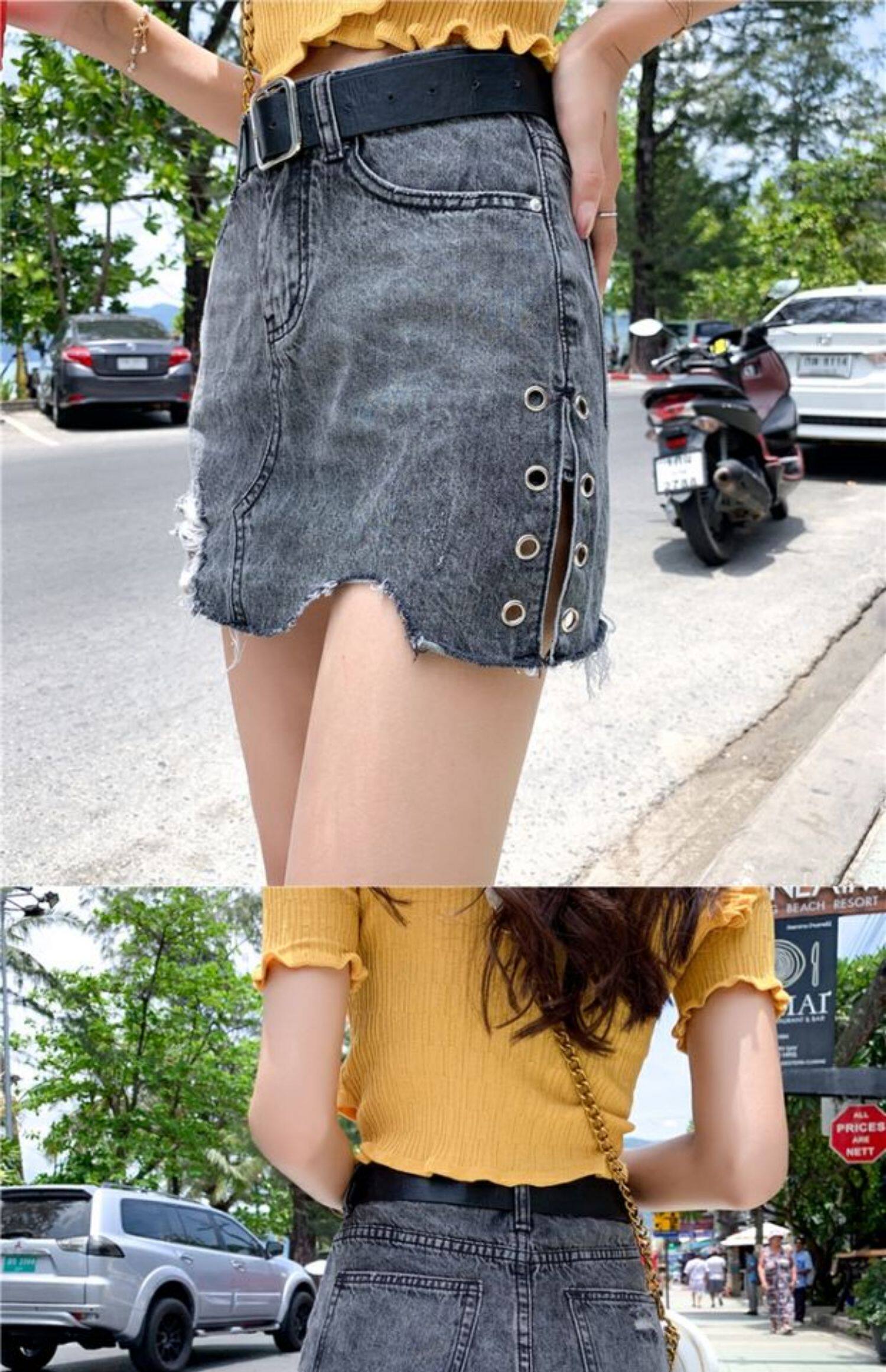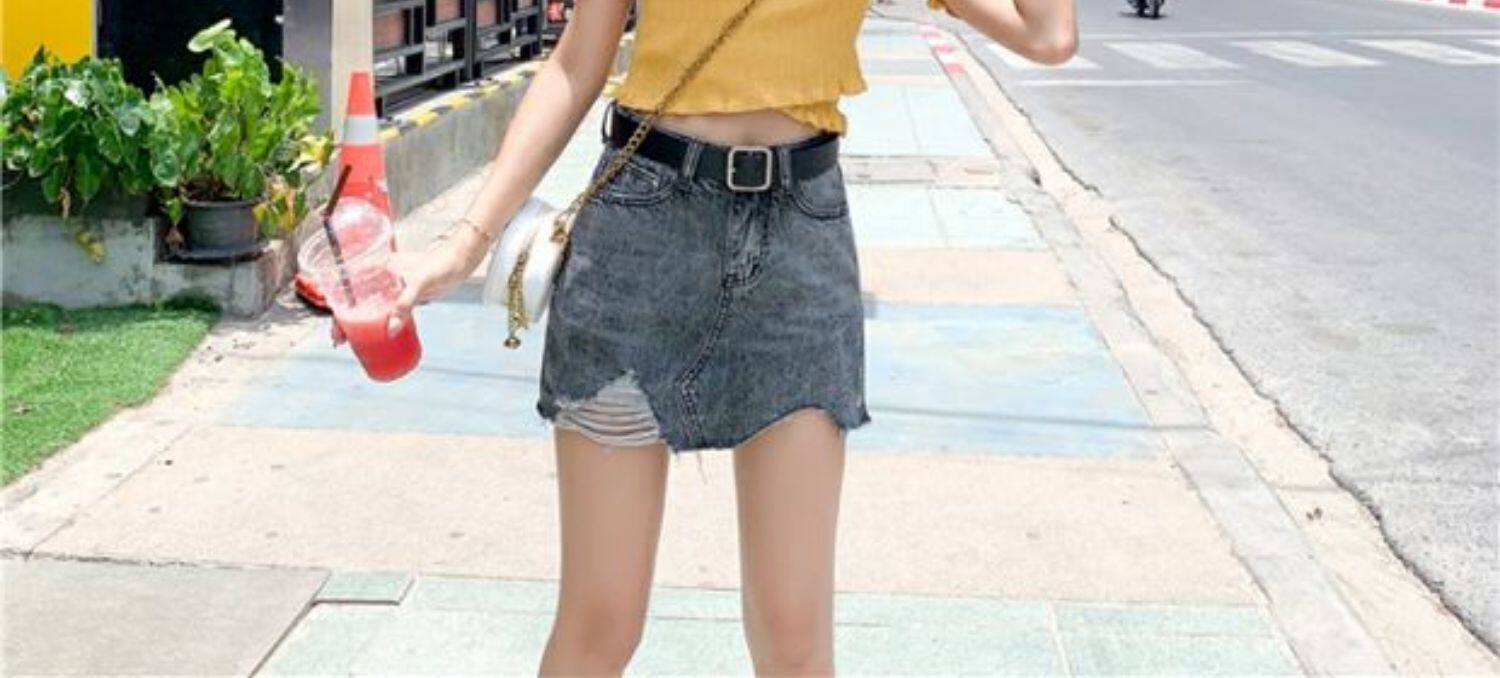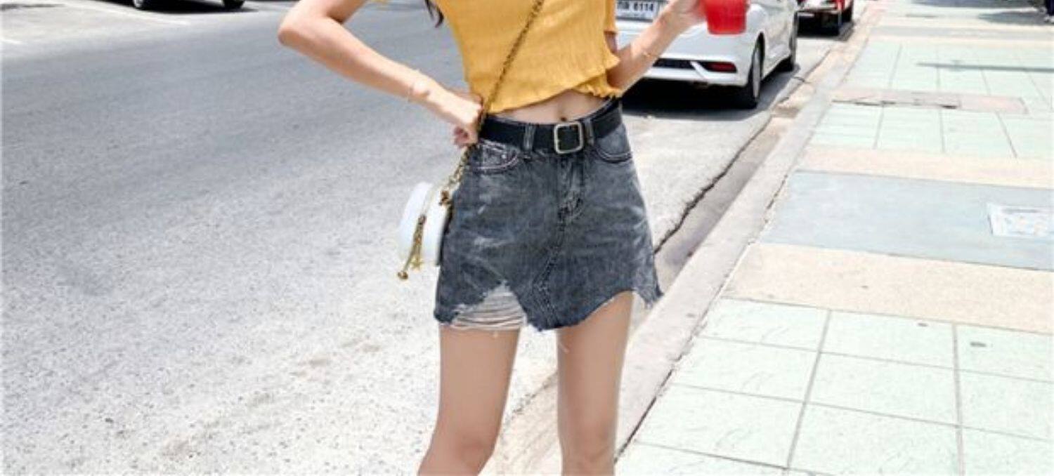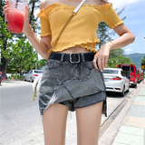 Летняя джинсовая юбка, шорты, штаны, в корейском стиле, большой размер, высокая талия, свободный крой, А-силуэт