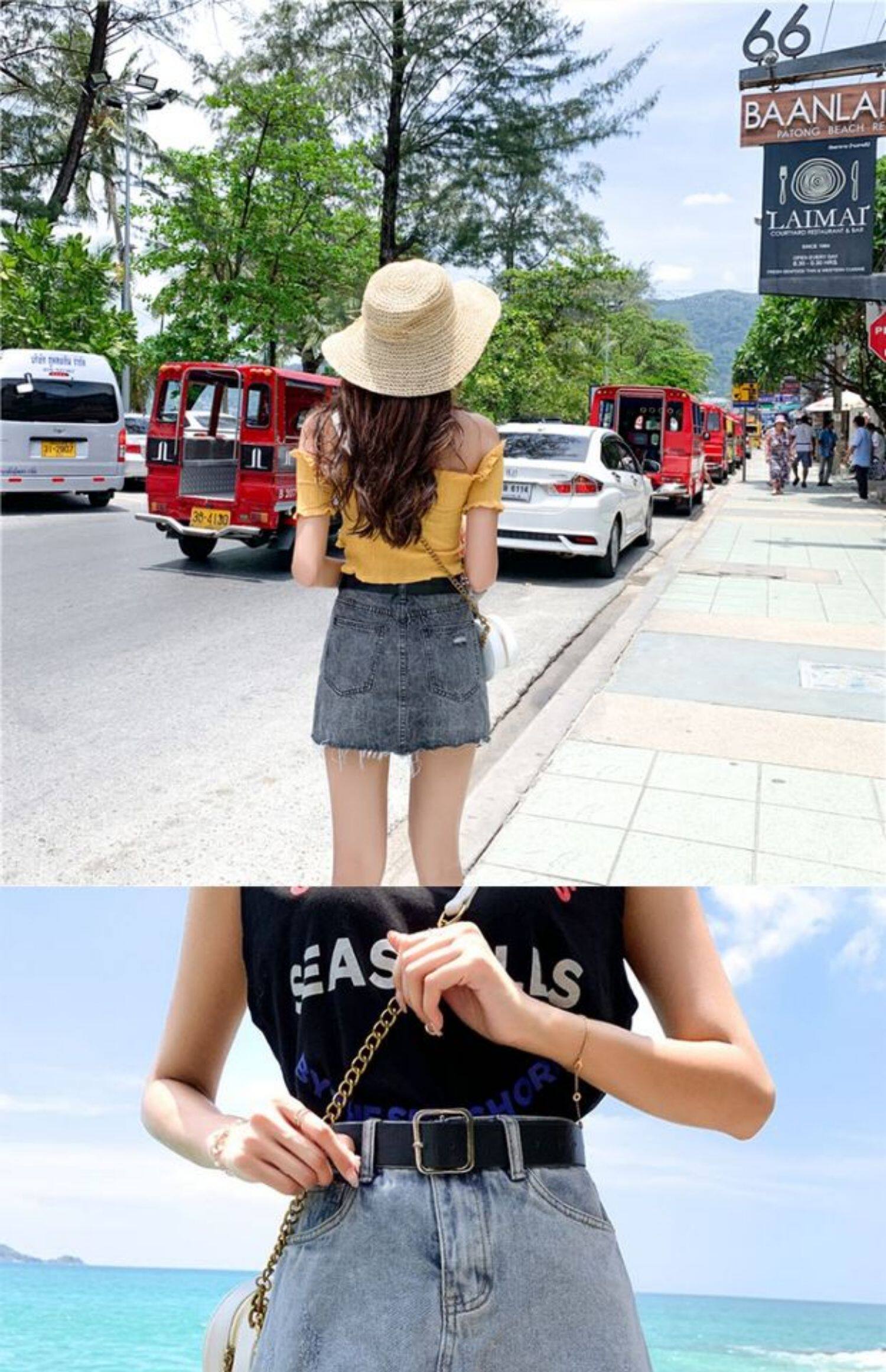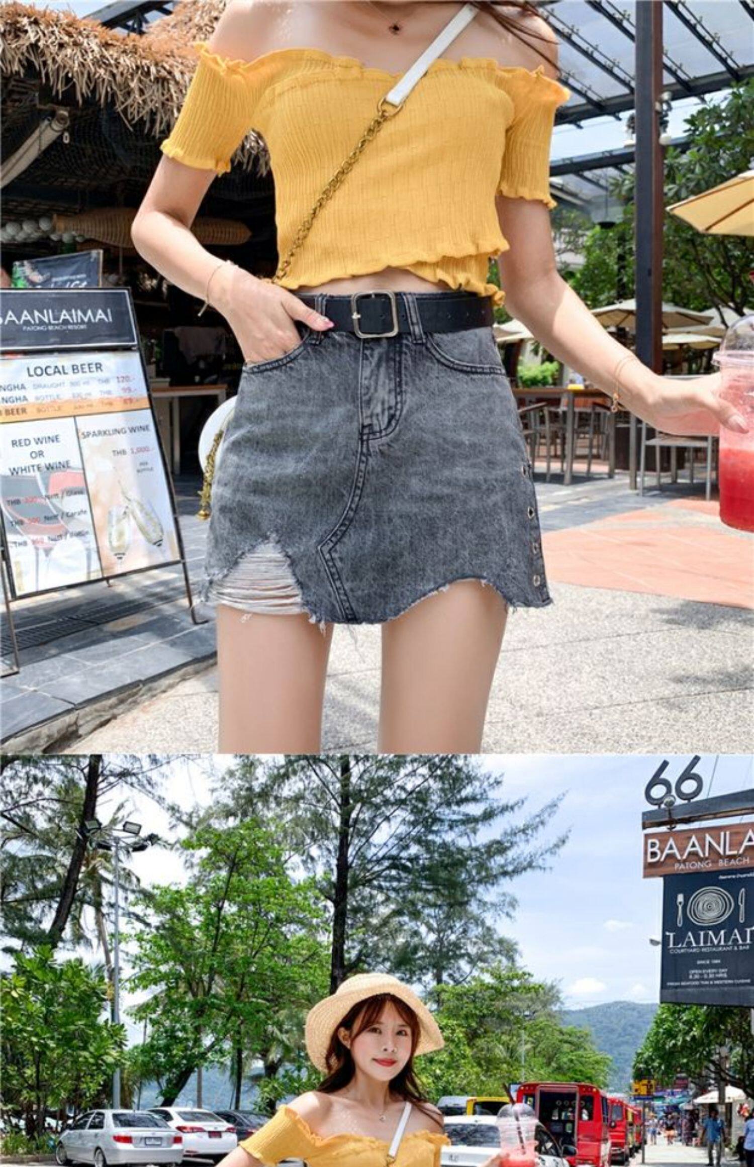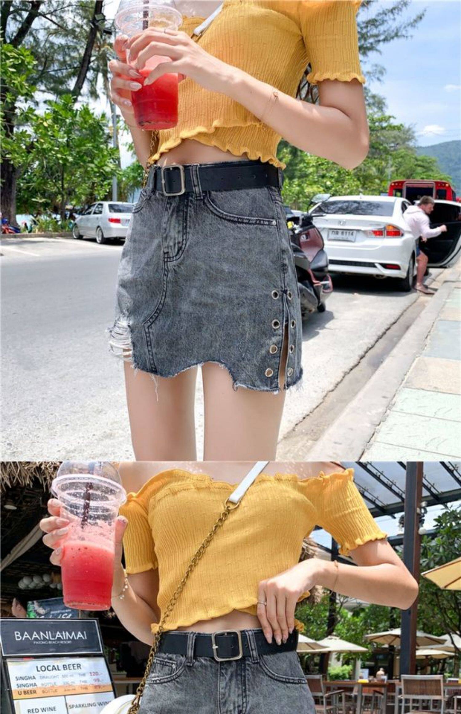 Летняя джинсовая юбка, шорты, штаны, в корейском стиле, большой размер, высокая талия, свободный крой, А-силуэт