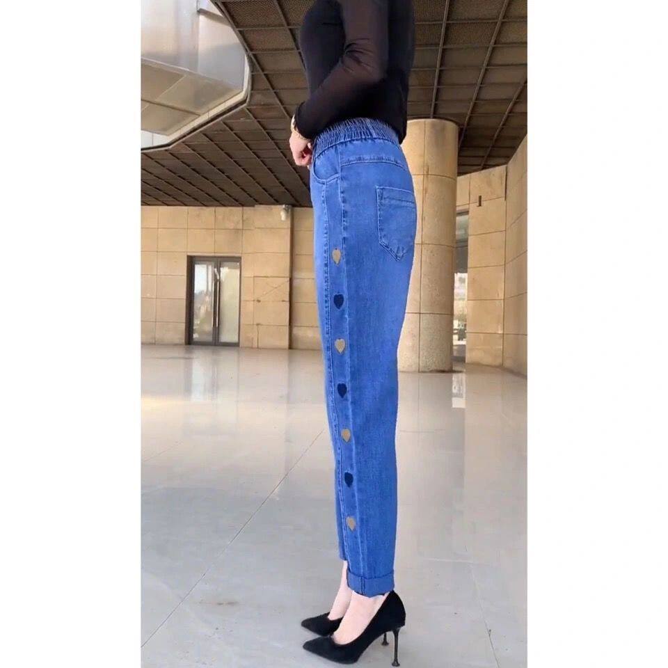 Штаны, летние осенние флисовые джинсы, с вышивкой, высокая талия, большой размер