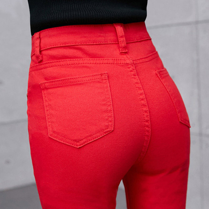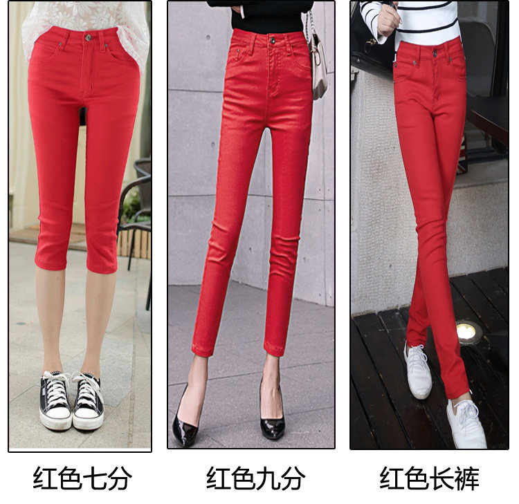 Красные летние тонкие штаны, леггинсы, джинсы, 2023 года, в корейском стиле, по фигуре