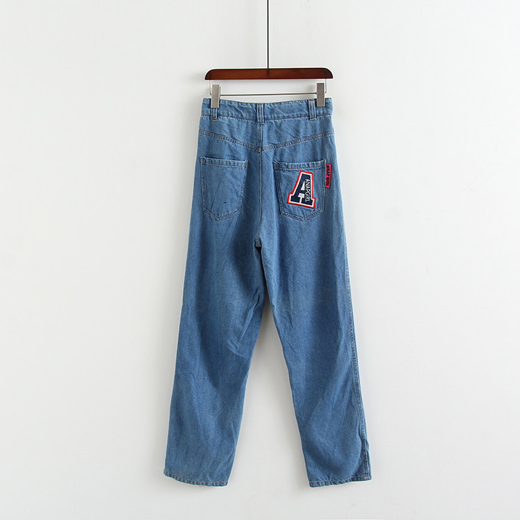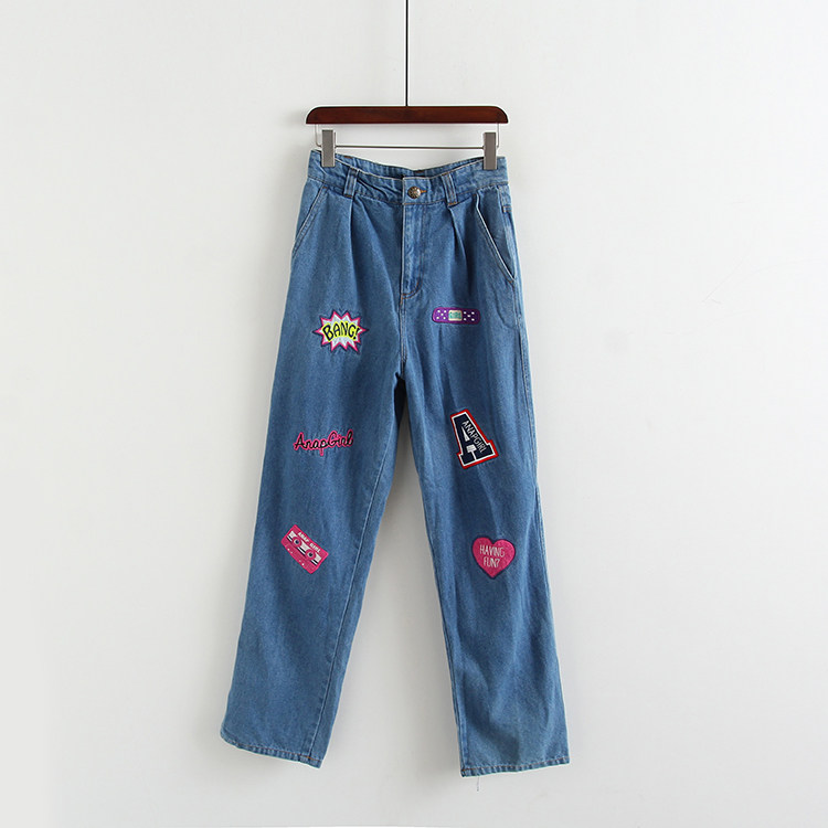 (Трансграничная торговля), летние джинсы, штаны, с вышивкой, свободный крой, высокая талия