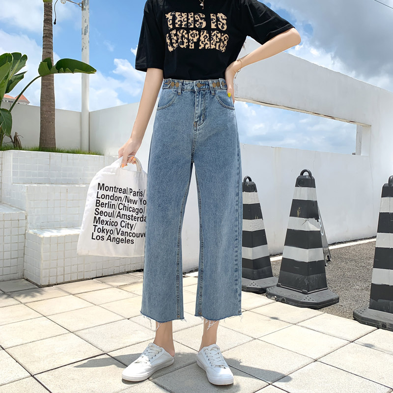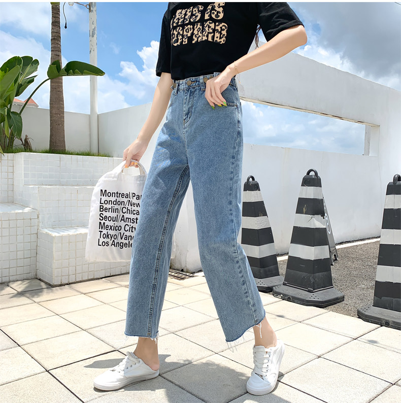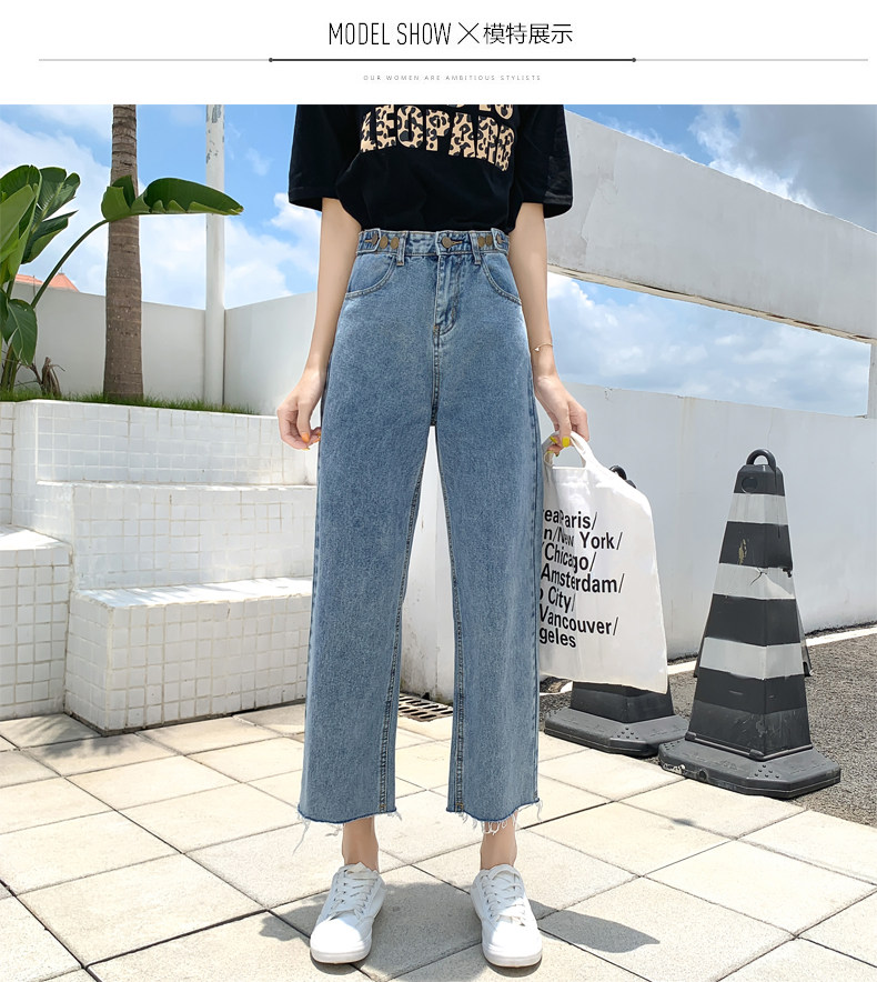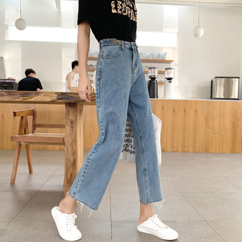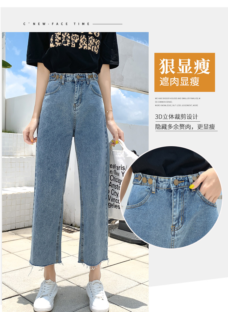 Джинсы, штаны, высокая талия, свободный прямой крой, большой размер, подходит для полных девушек