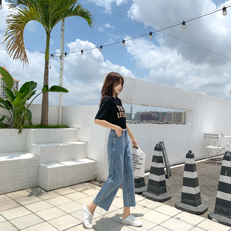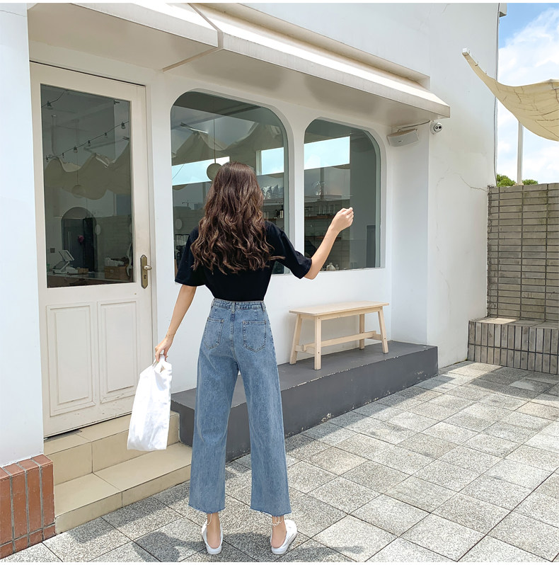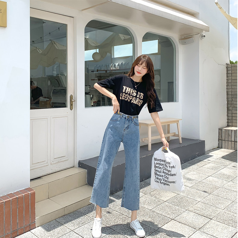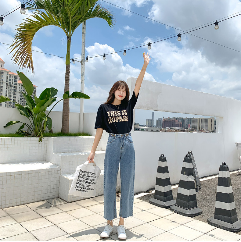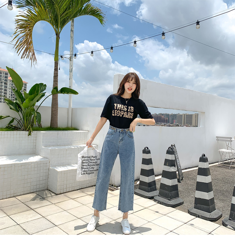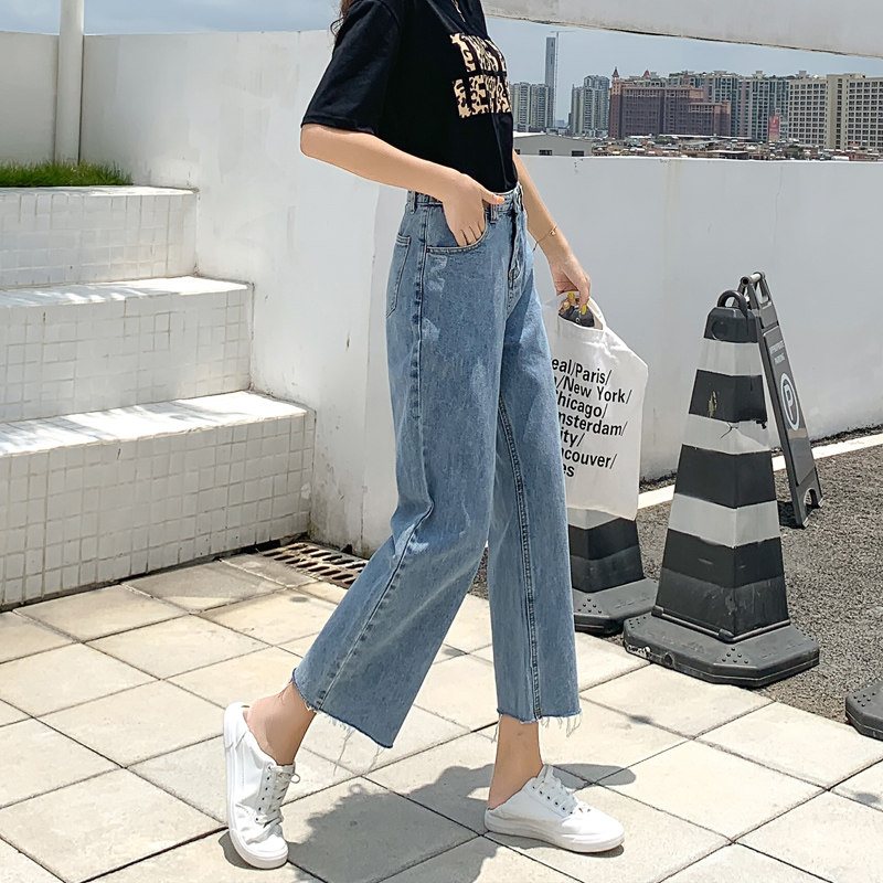 Джинсы, штаны, высокая талия, свободный прямой крой, большой размер, подходит для полных девушек