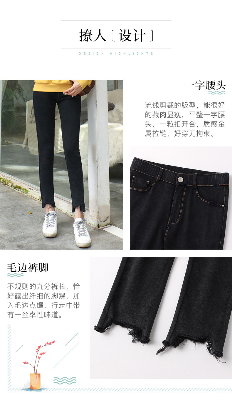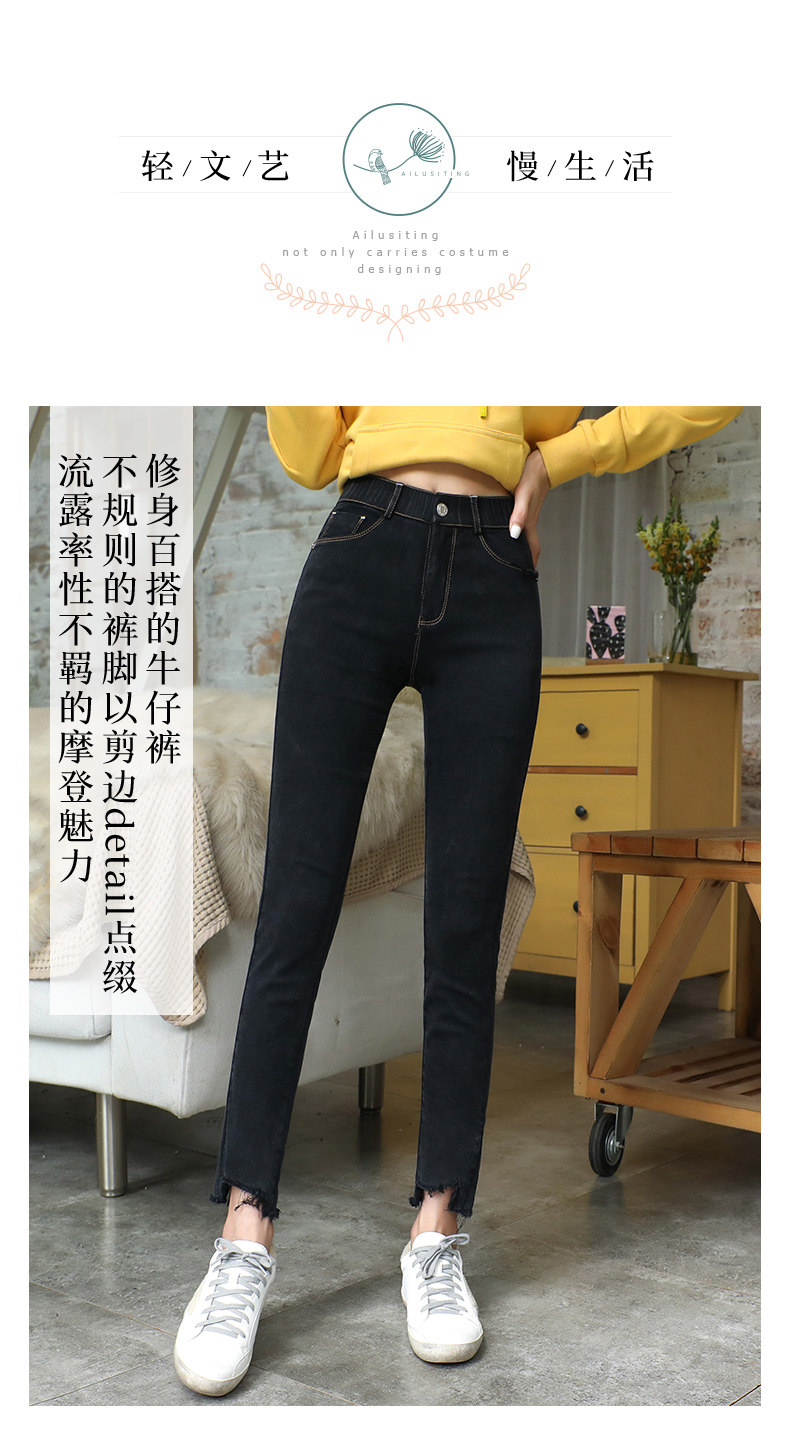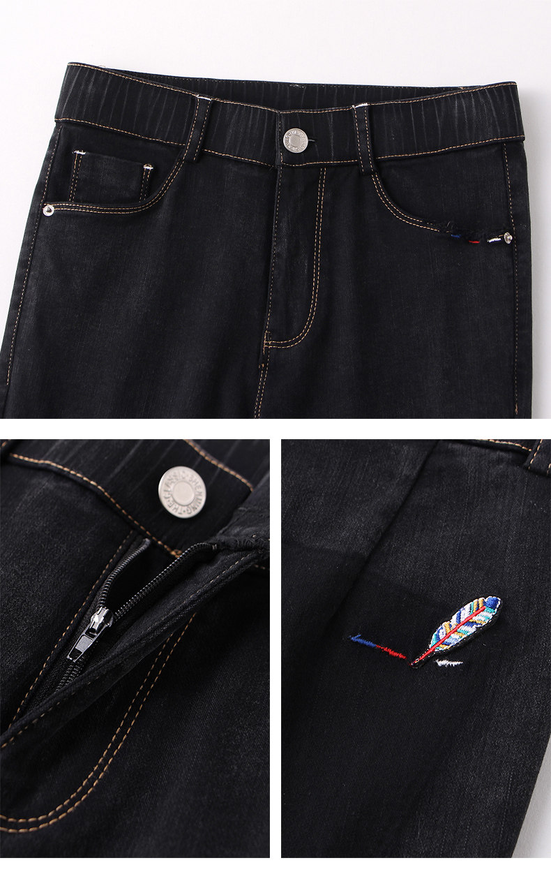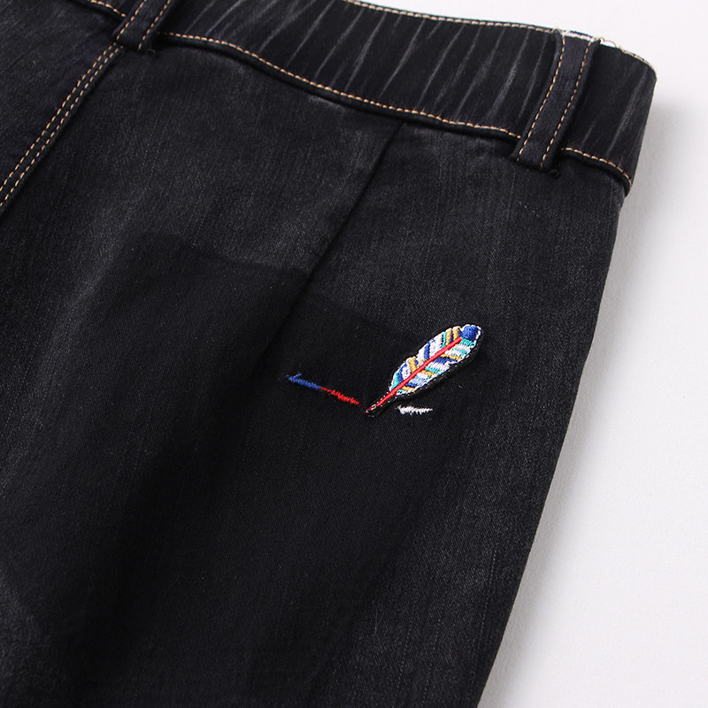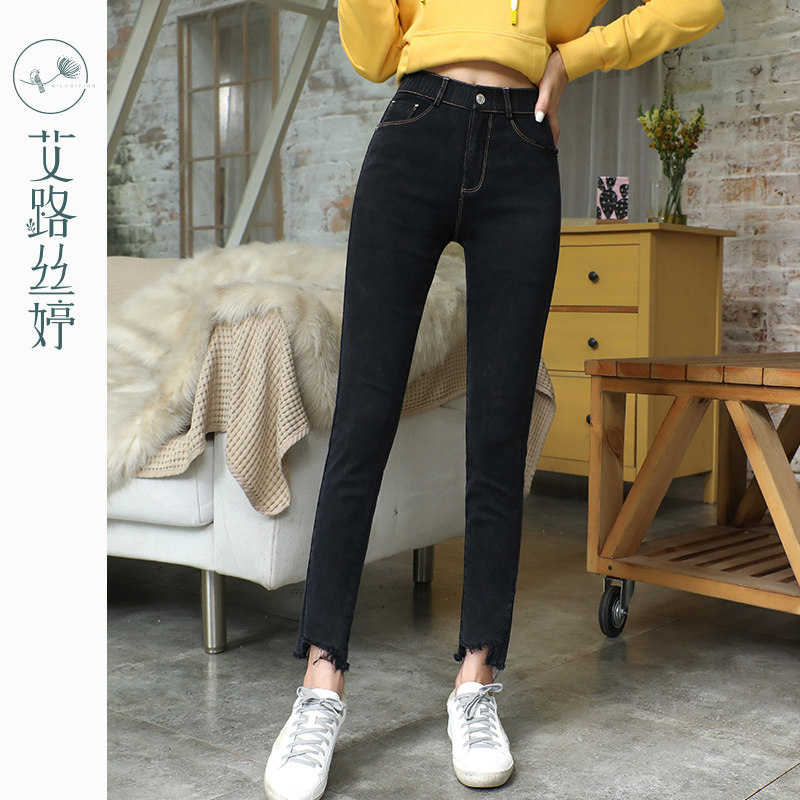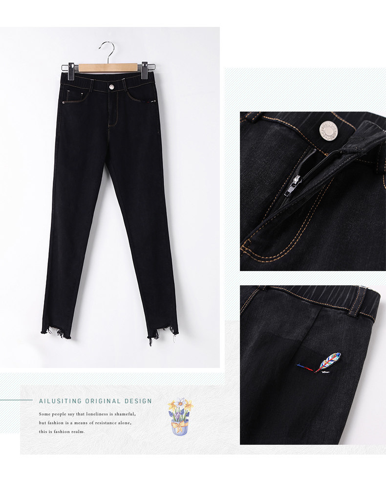 艾路丝婷 Черные джинсы, осенние штаны, карандаш, 2019, в корейском стиле, с вышивкой, по фигуре