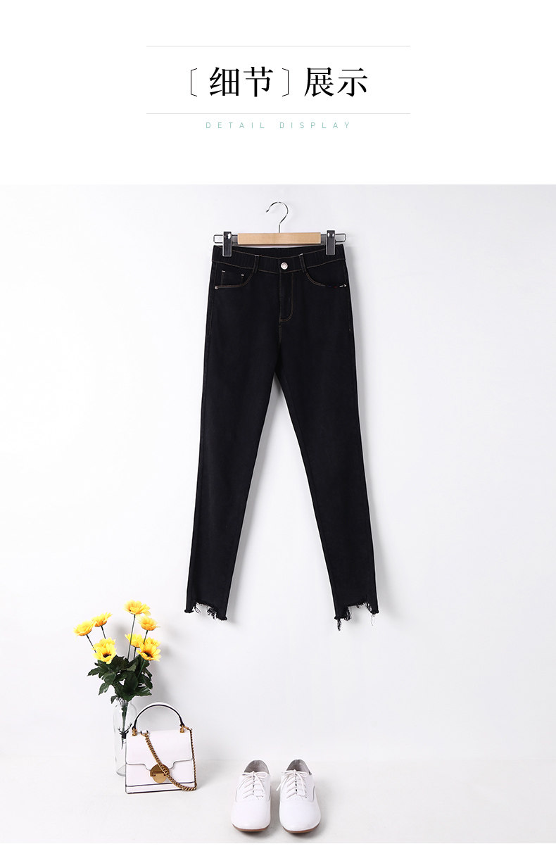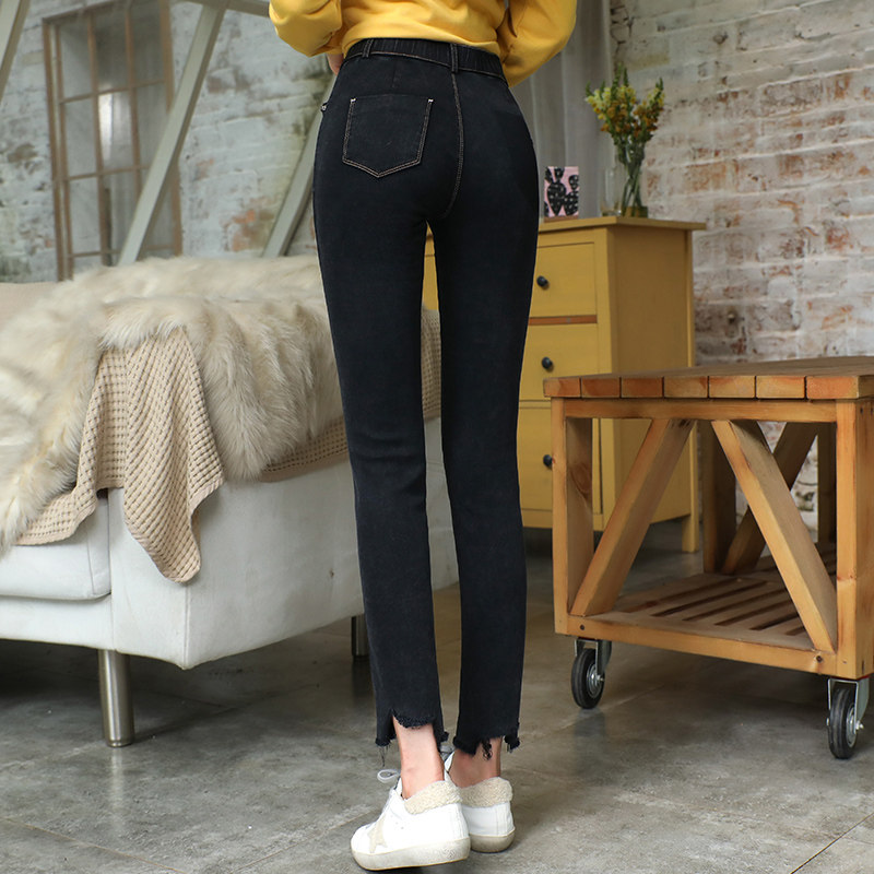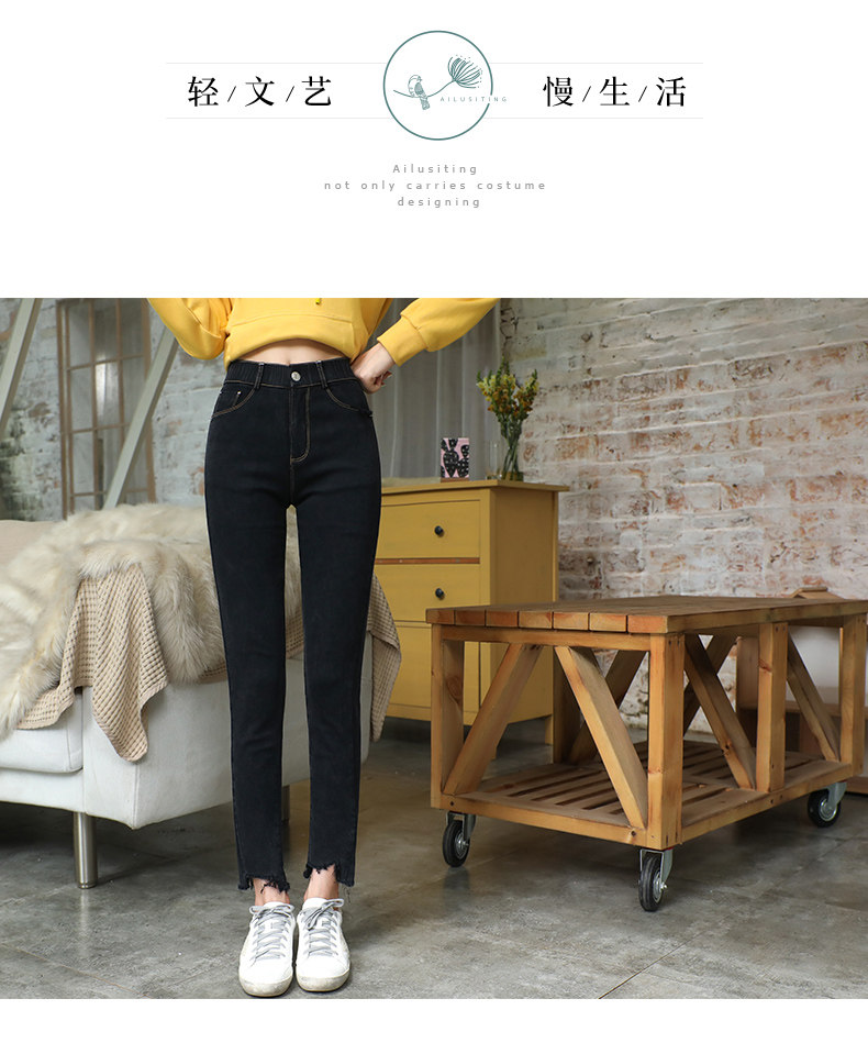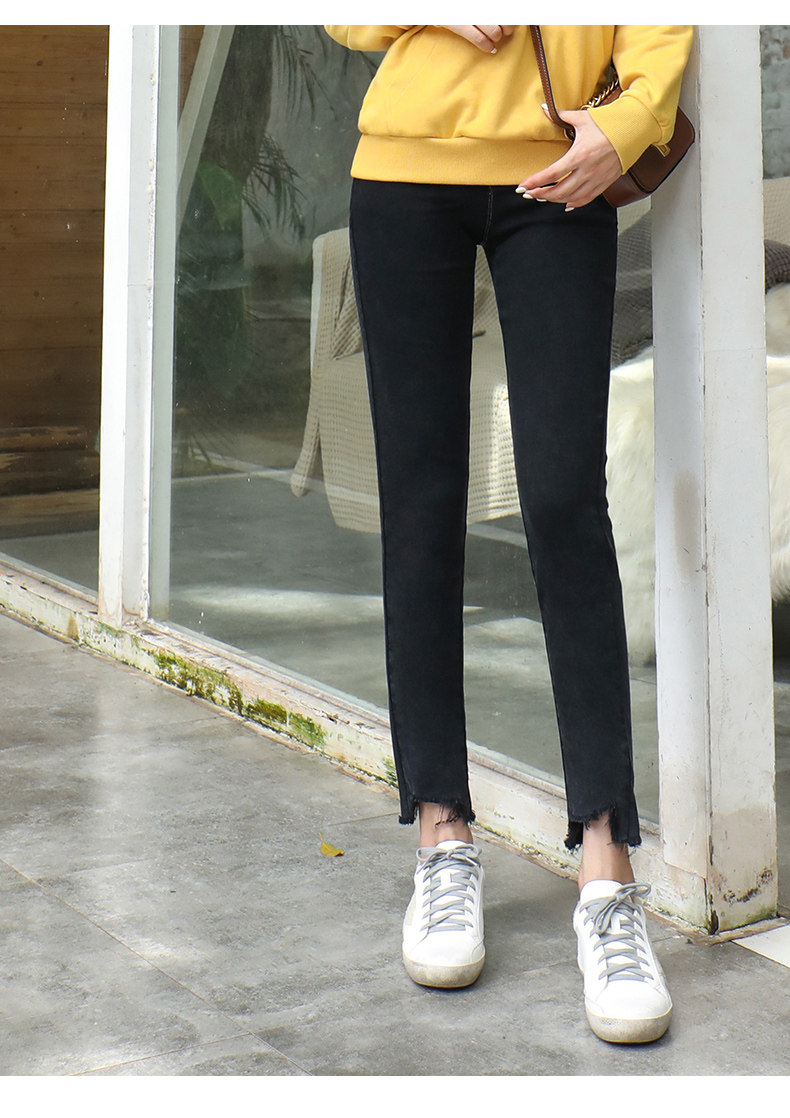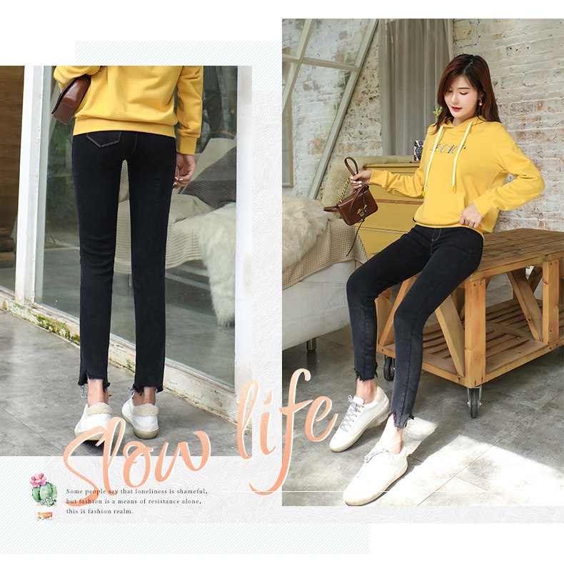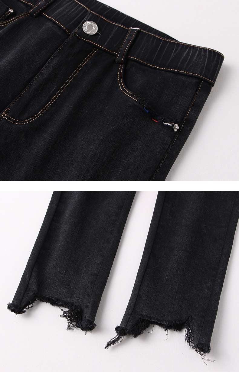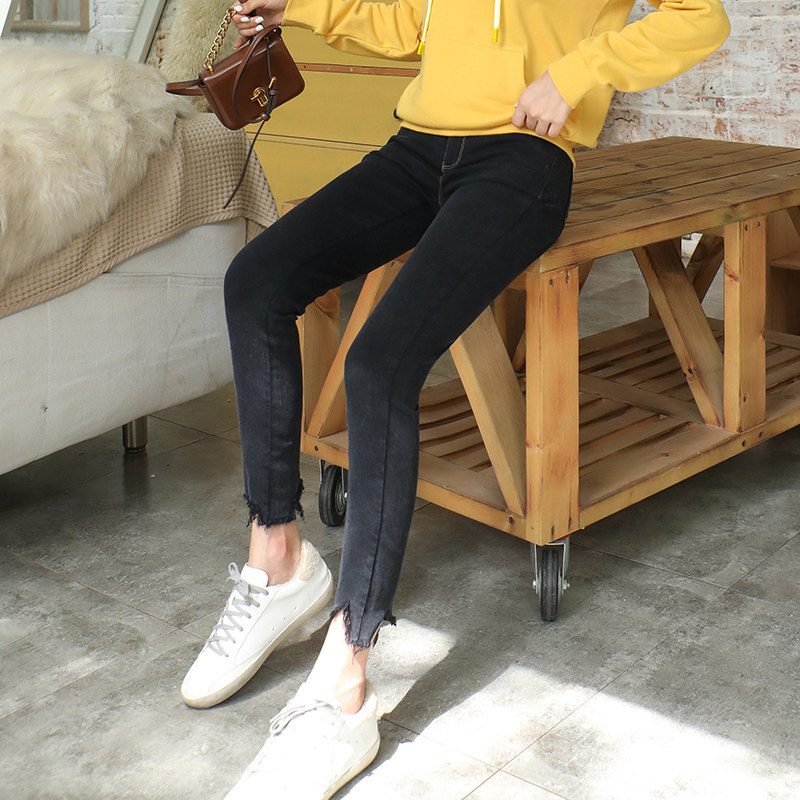 艾路丝婷 Черные джинсы, осенние штаны, карандаш, 2019, в корейском стиле, с вышивкой, по фигуре