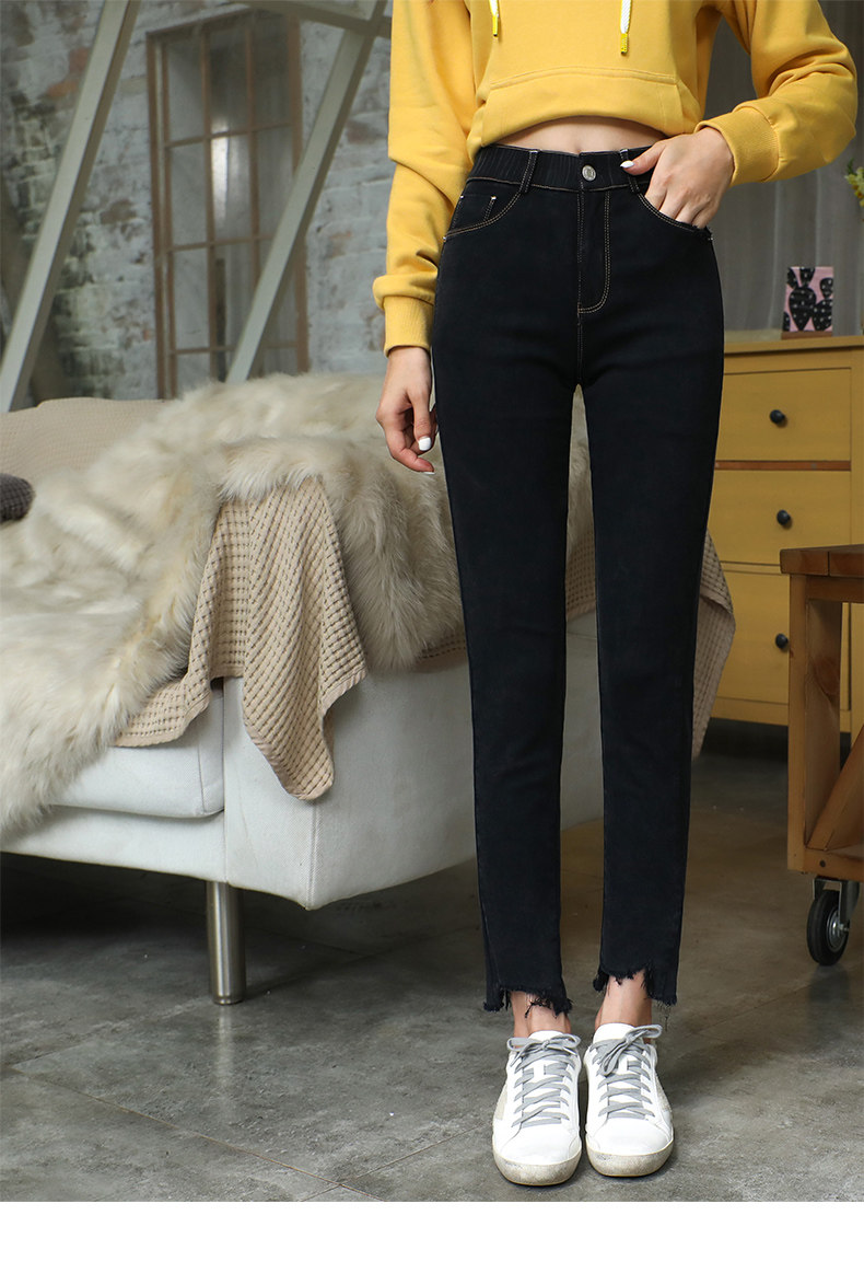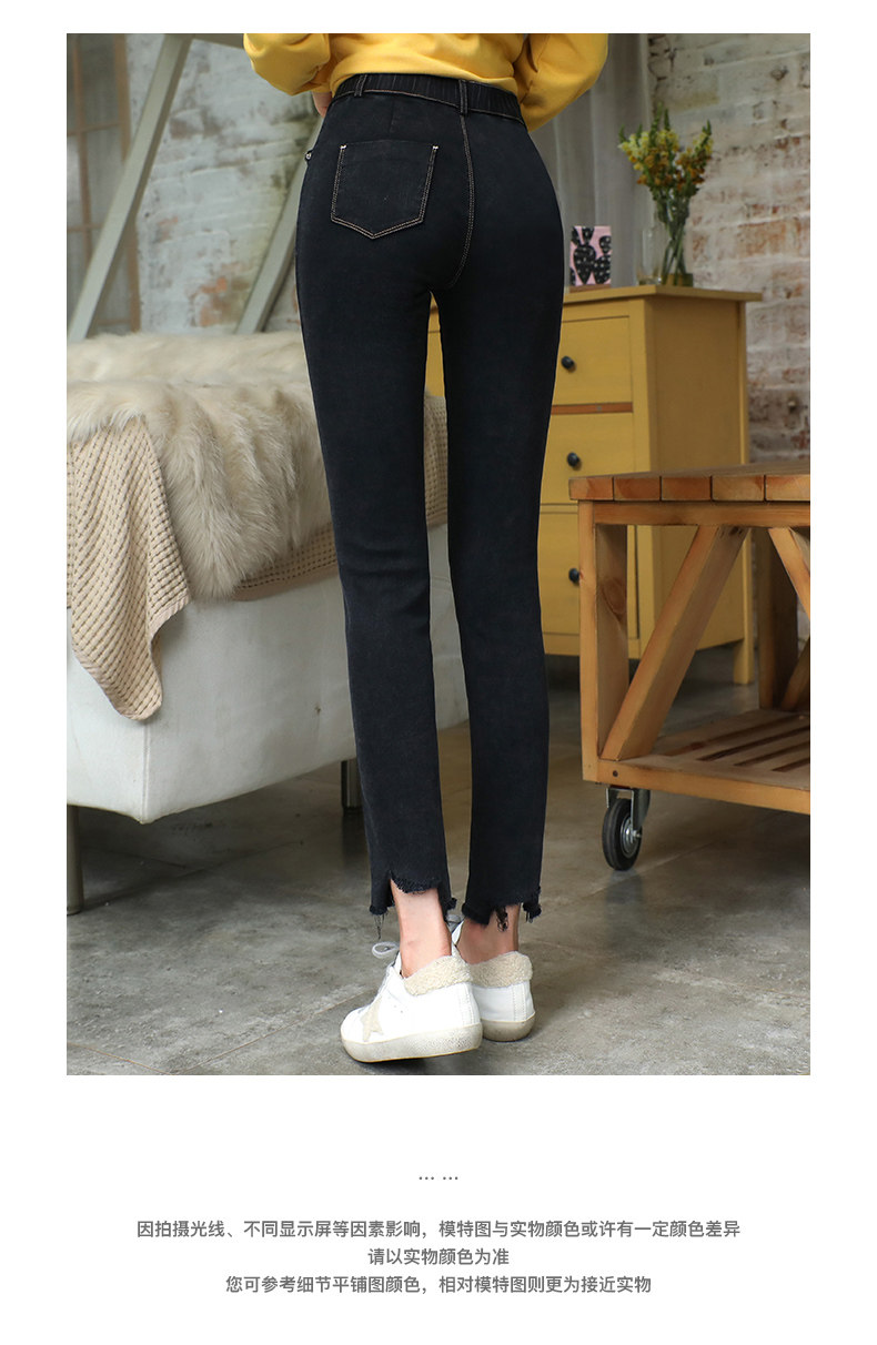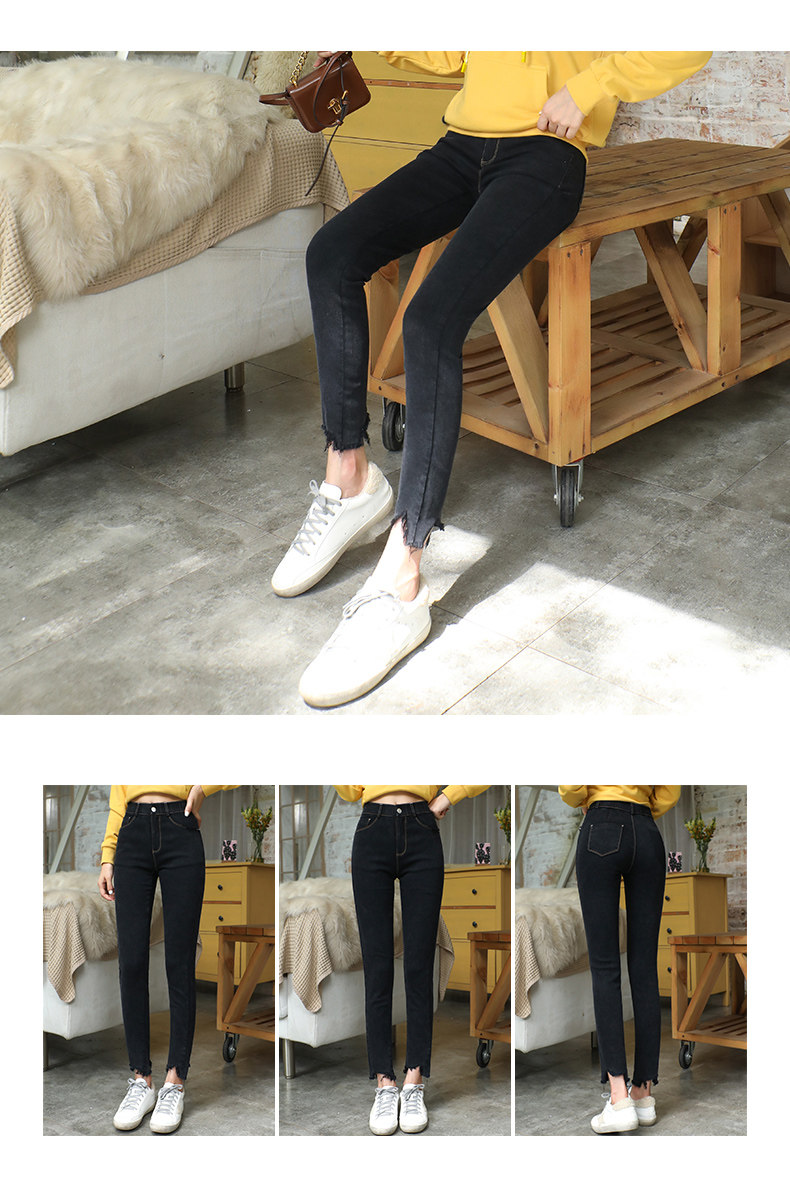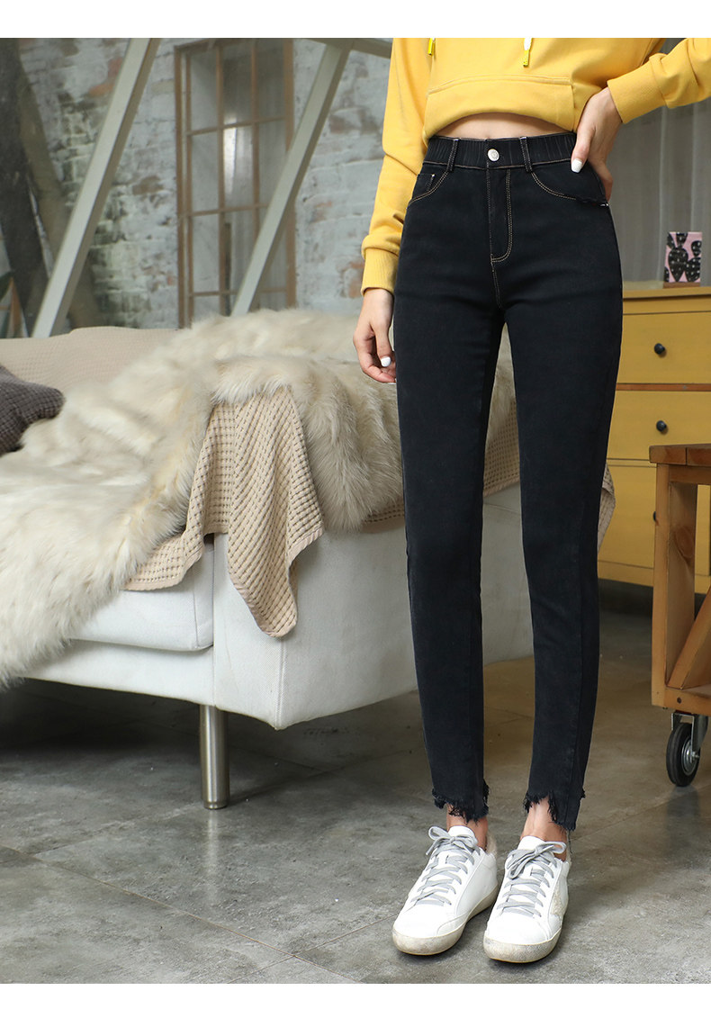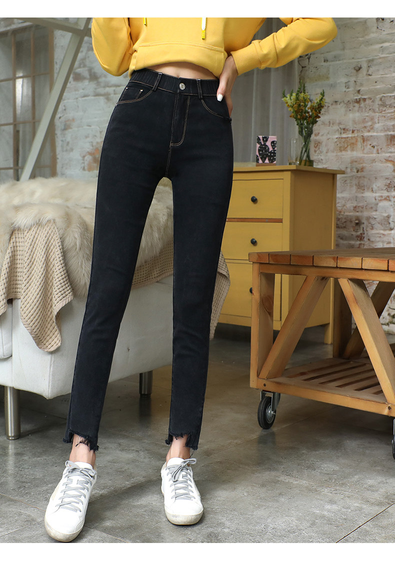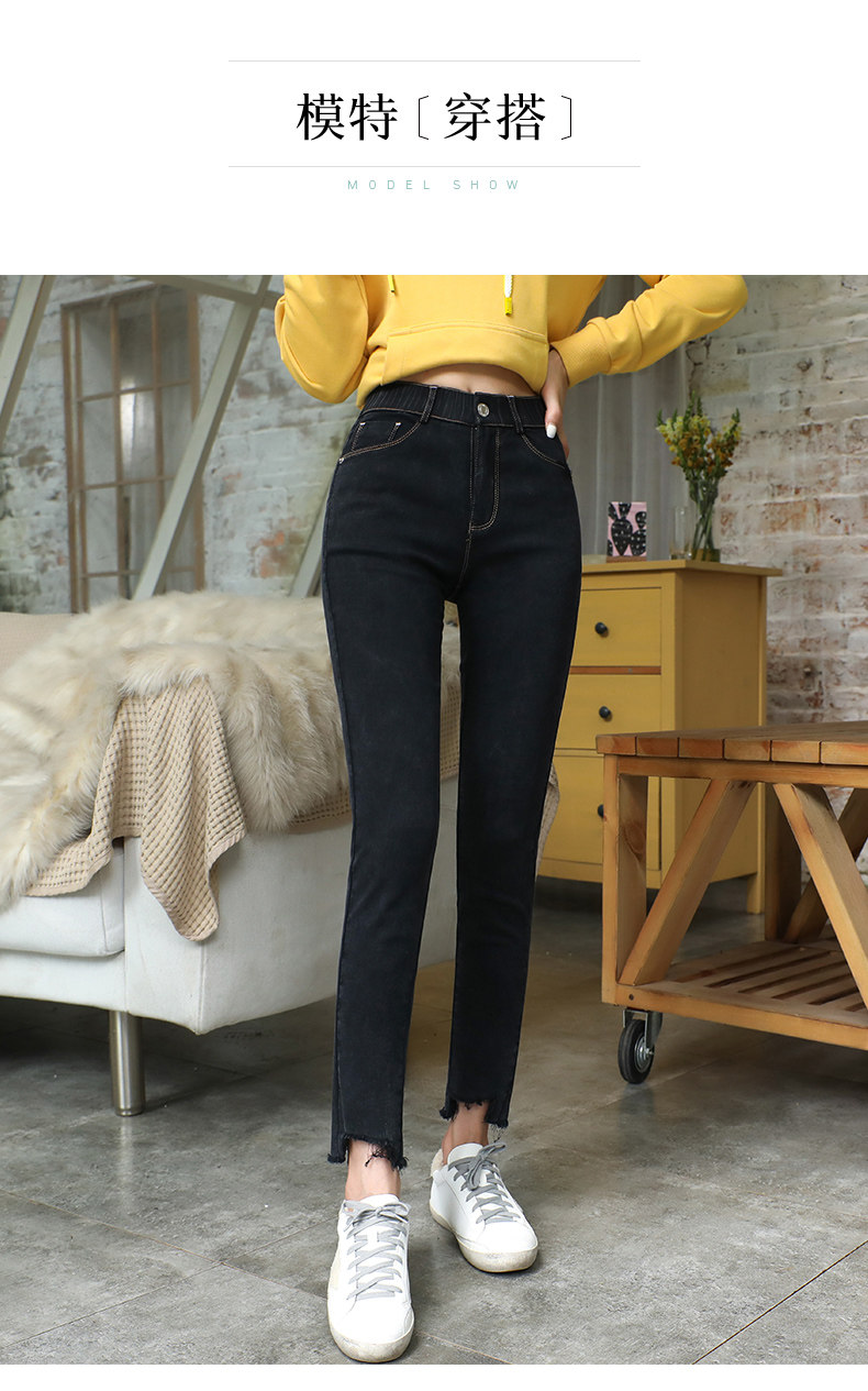 艾路丝婷 Черные джинсы, осенние штаны, карандаш, 2019, в корейском стиле, с вышивкой, по фигуре
