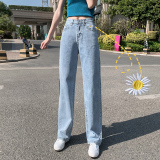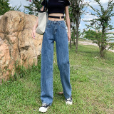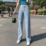 Джинсы, приталенные летние штаны, высокая талия, свободный прямой крой, 2024 года, подходит для подростков