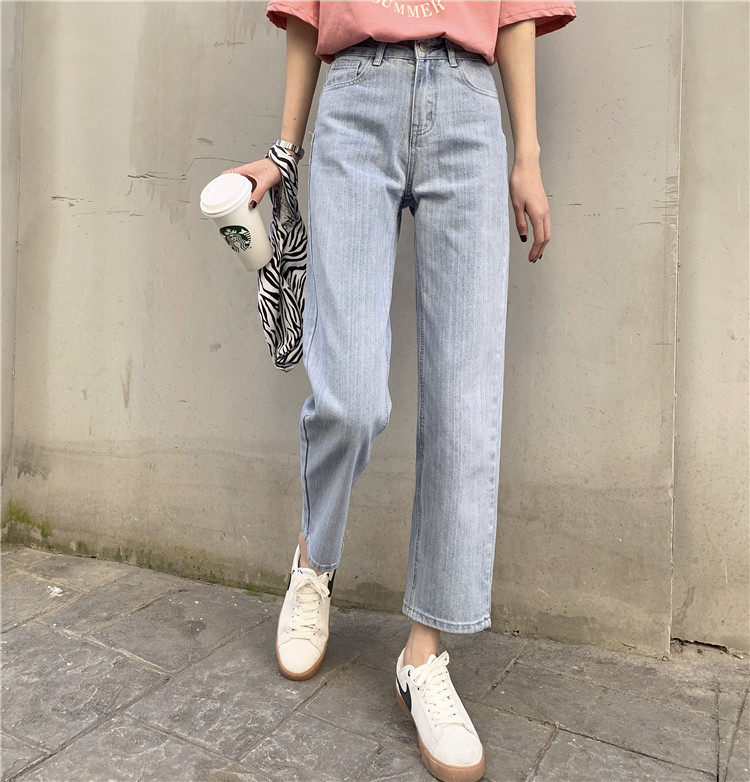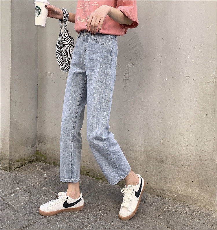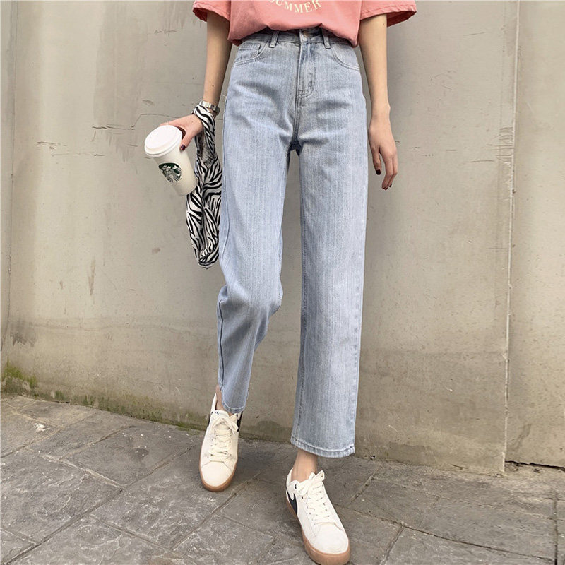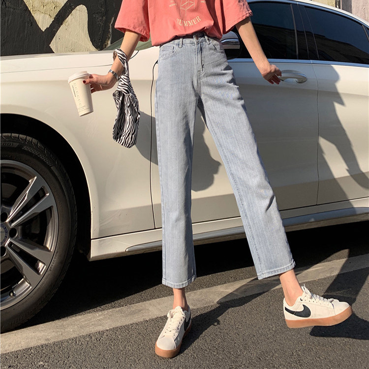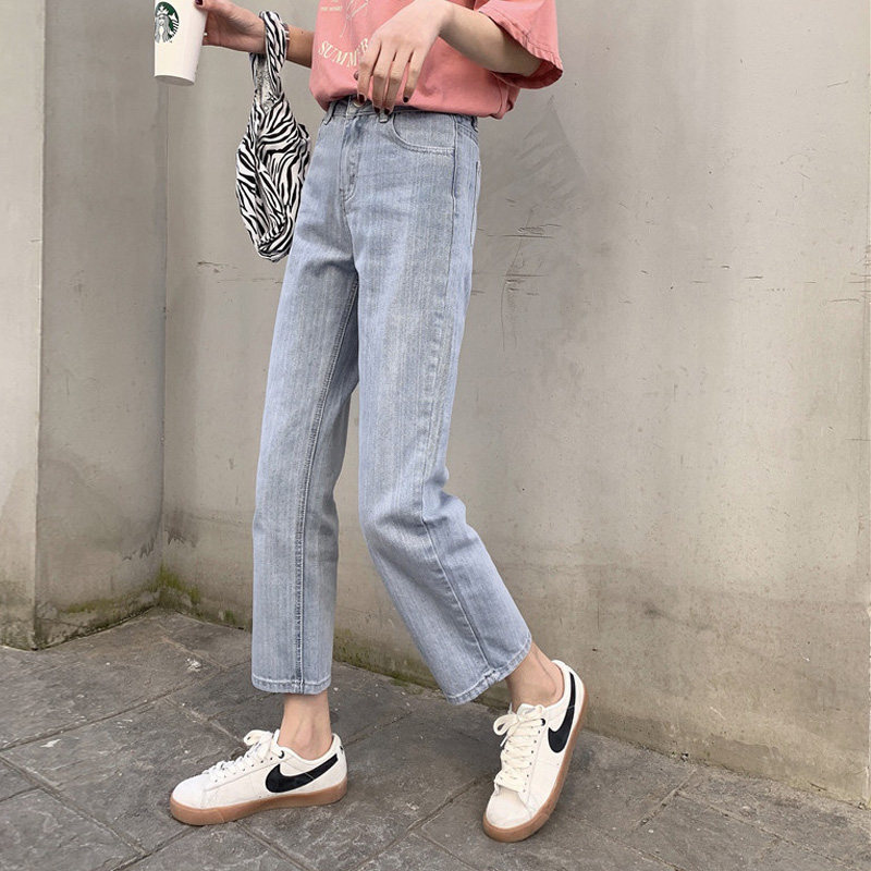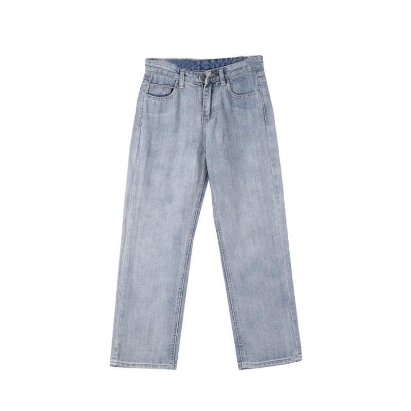 Синие джинсы, брендовые приталенные штаны для школьников и студентов, высокая талия, свободный прямой крой