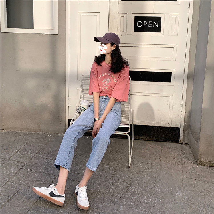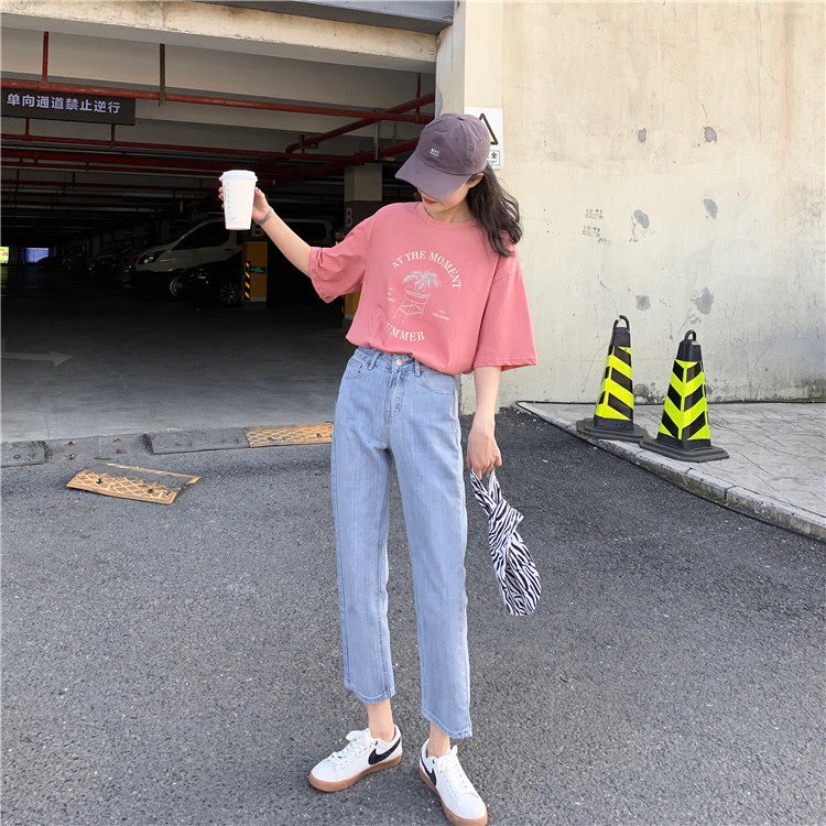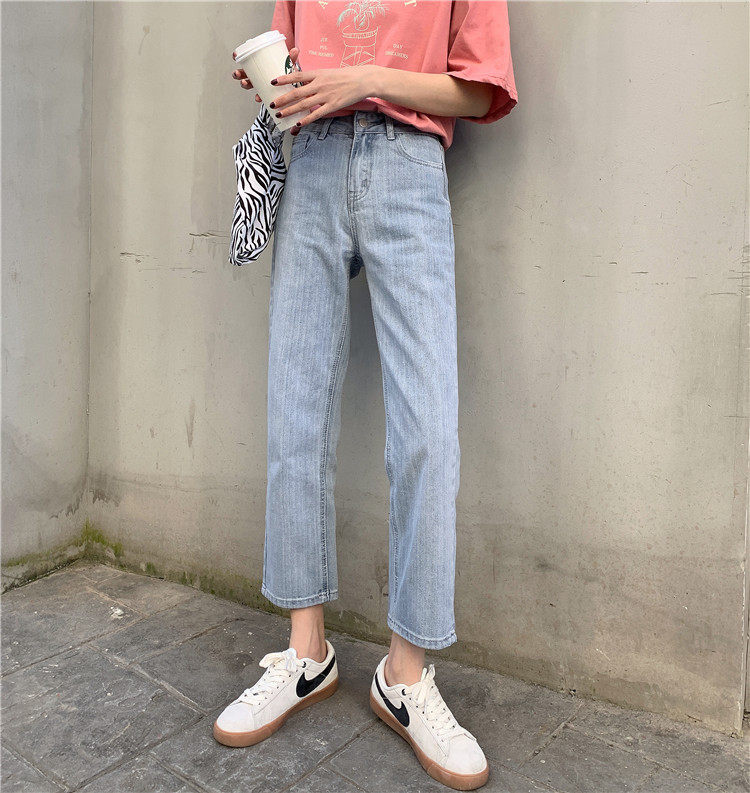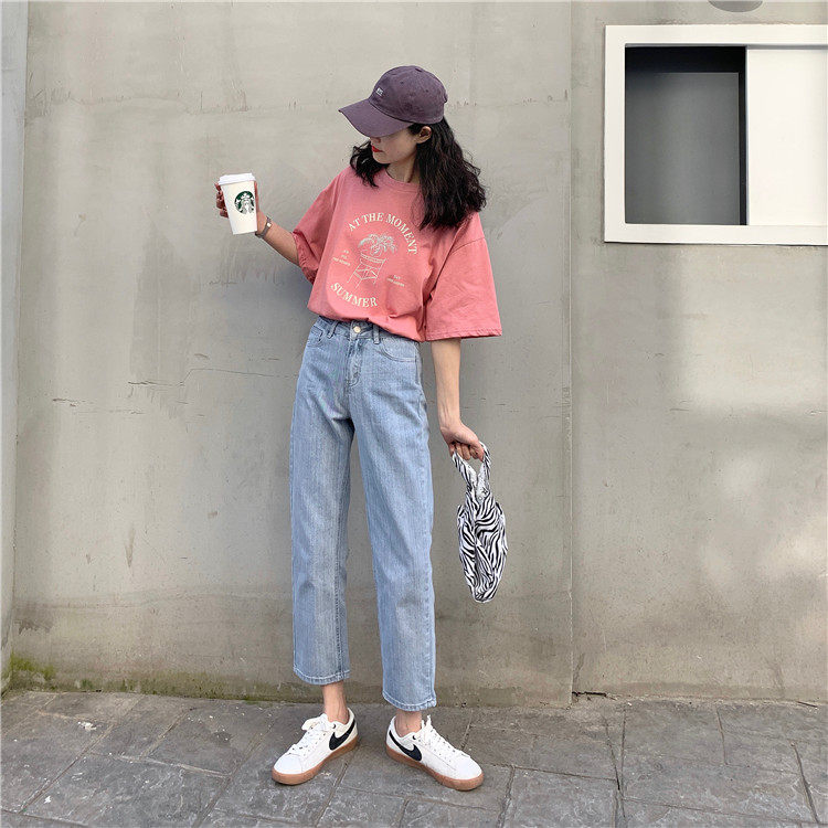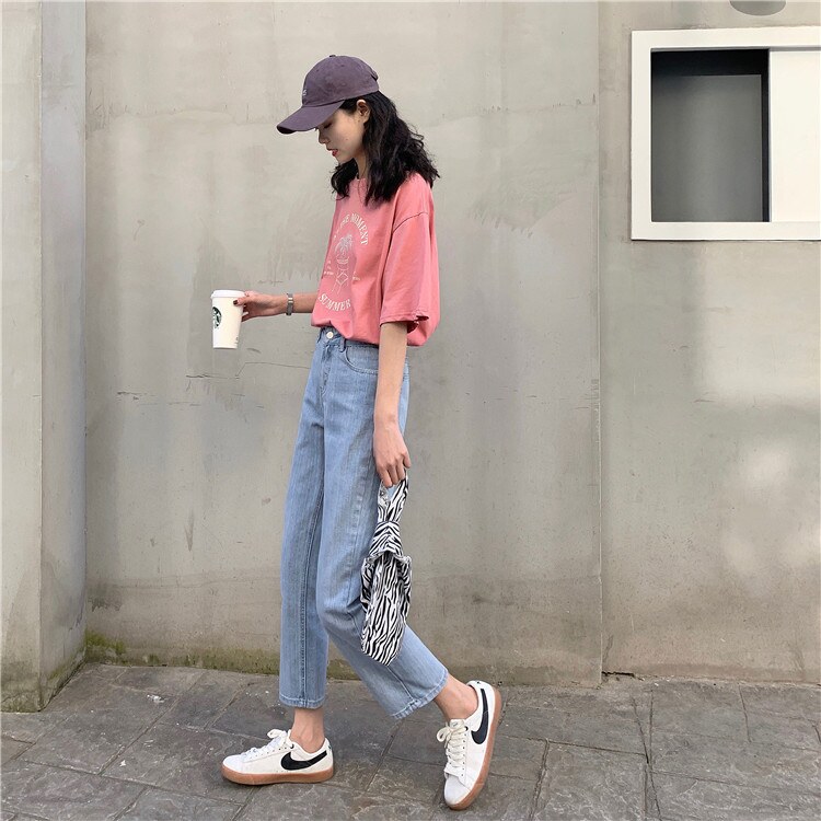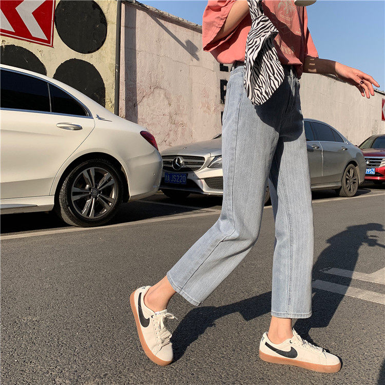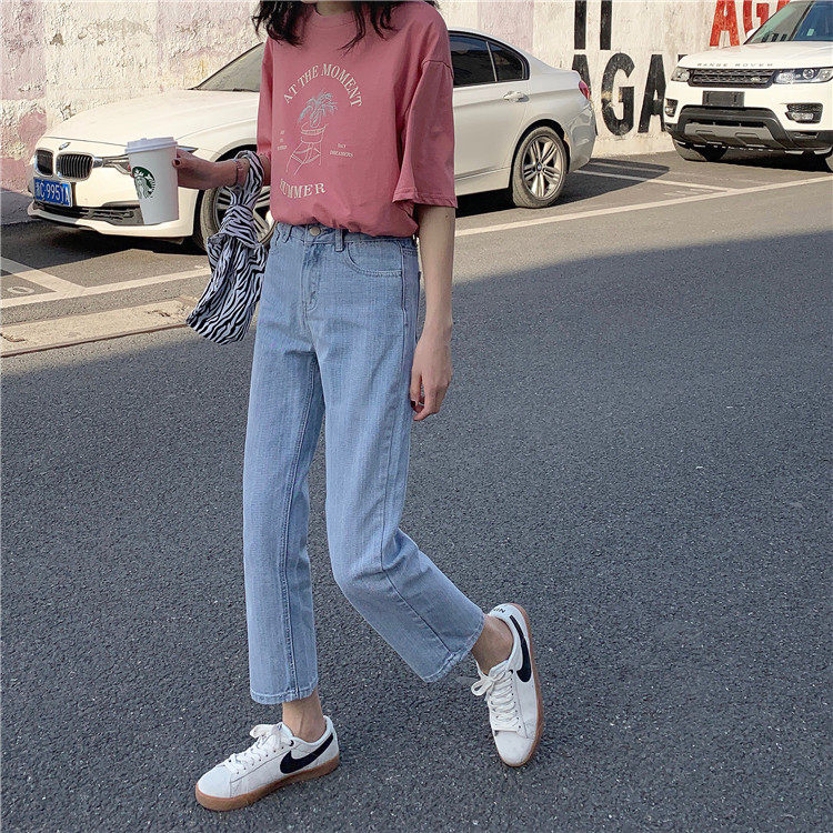 Синие джинсы, брендовые приталенные штаны для школьников и студентов, высокая талия, свободный прямой крой