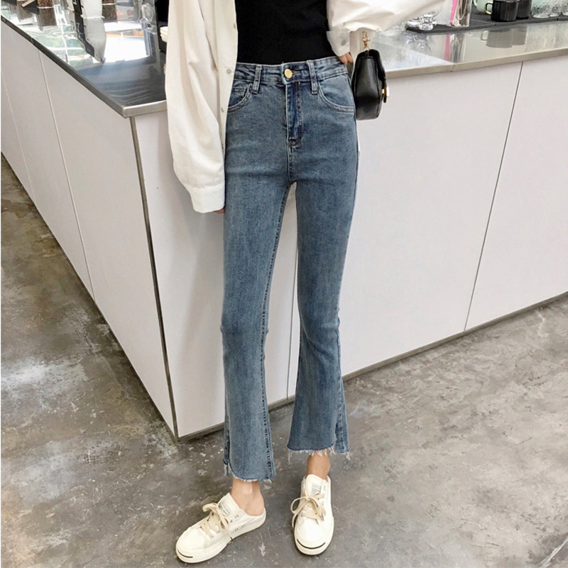 Осенние джинсы, штаны для школьников и студентов, приталенные штаны-клёш, большой размер, высокая талия, свободный прямой крой