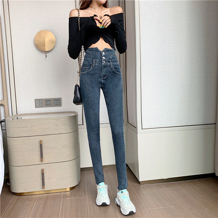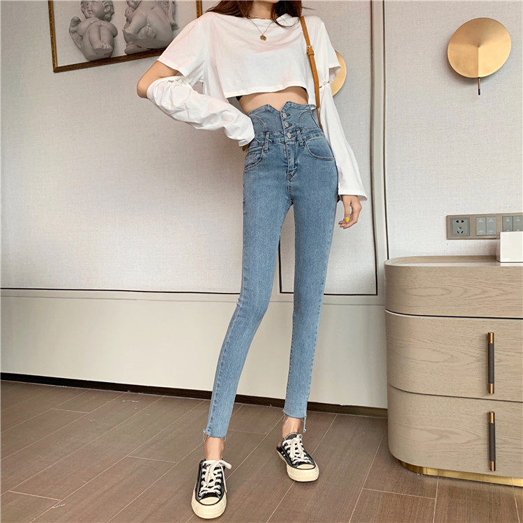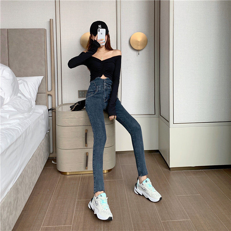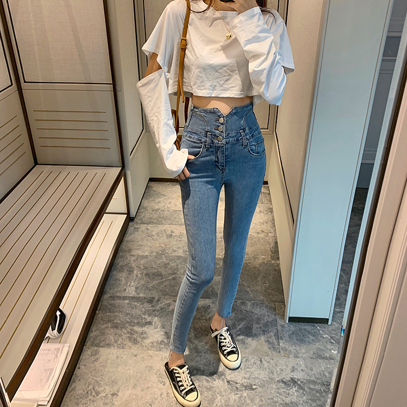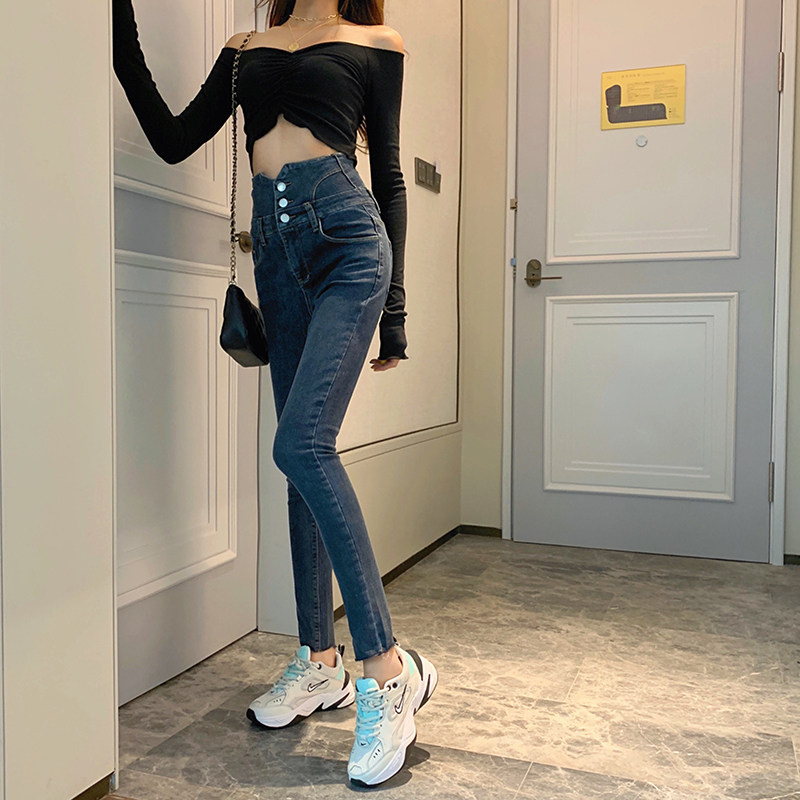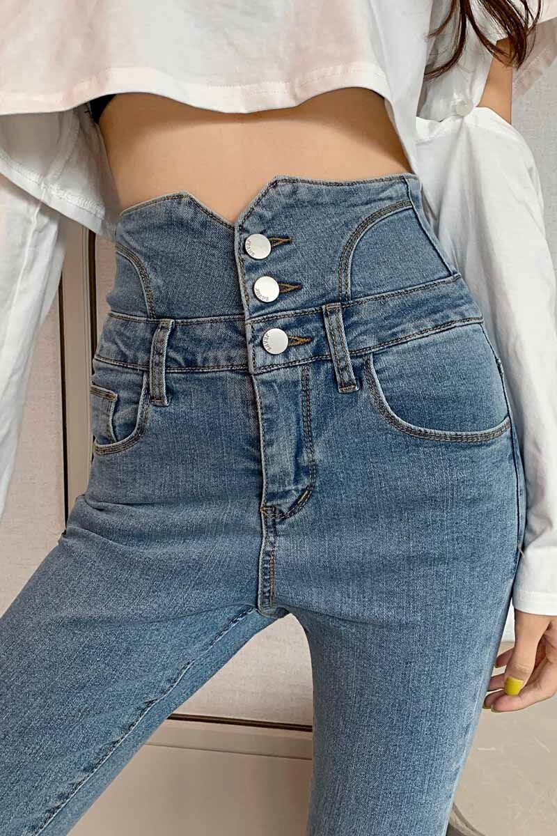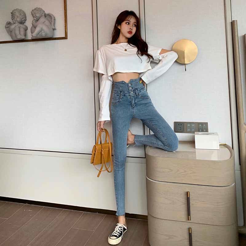 Весенние джинсы, штаны, приталенный эластичный карандаш, популярно в интернете, новая коллекция, высокая талия