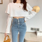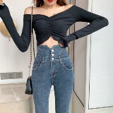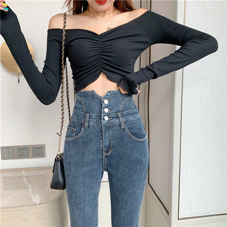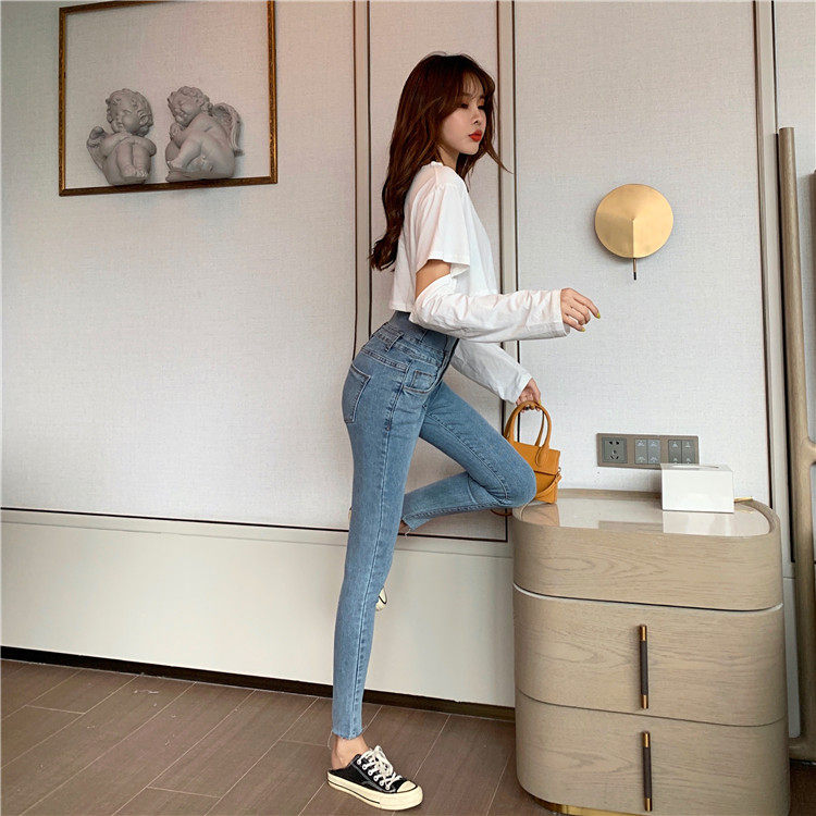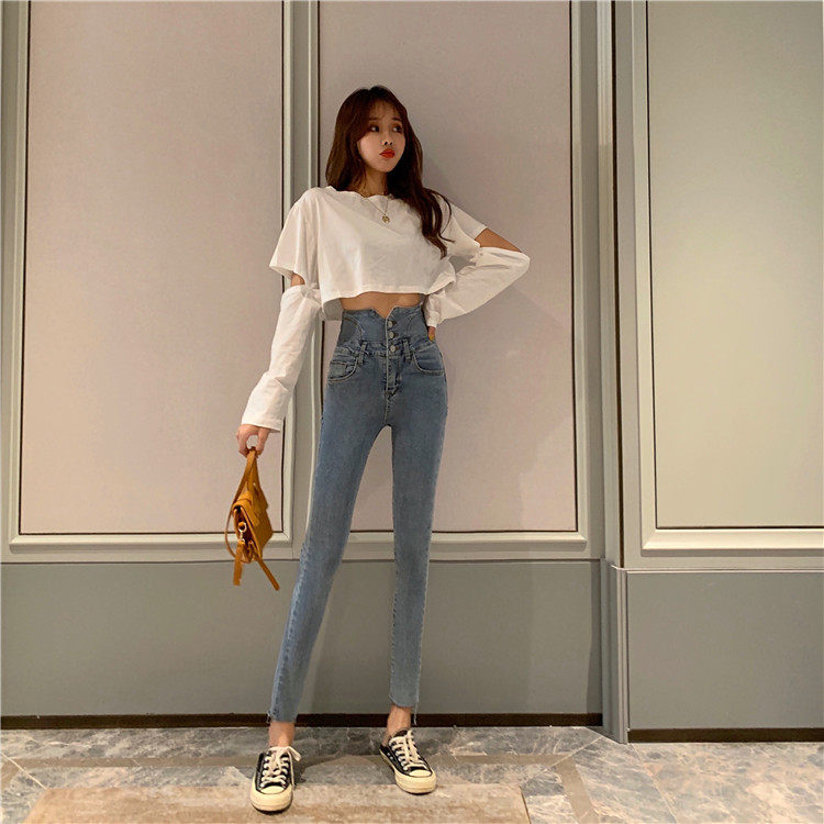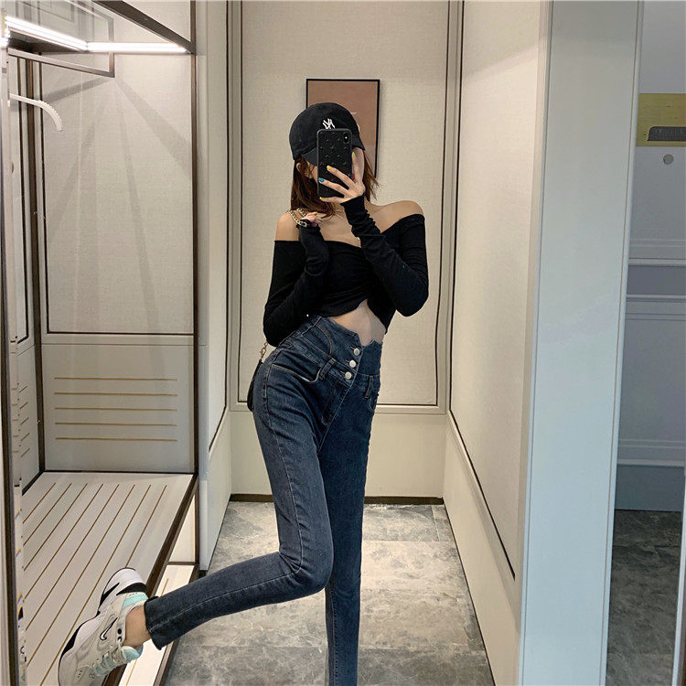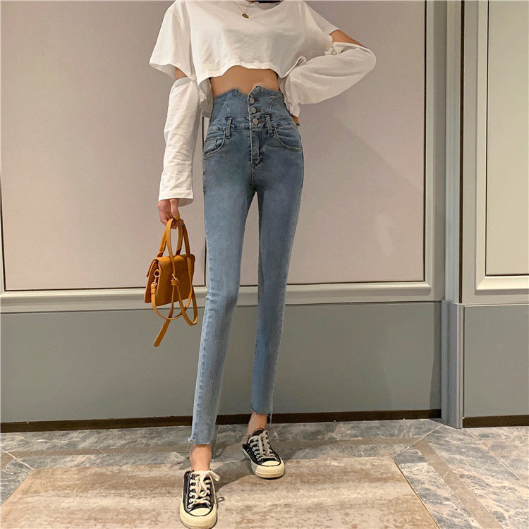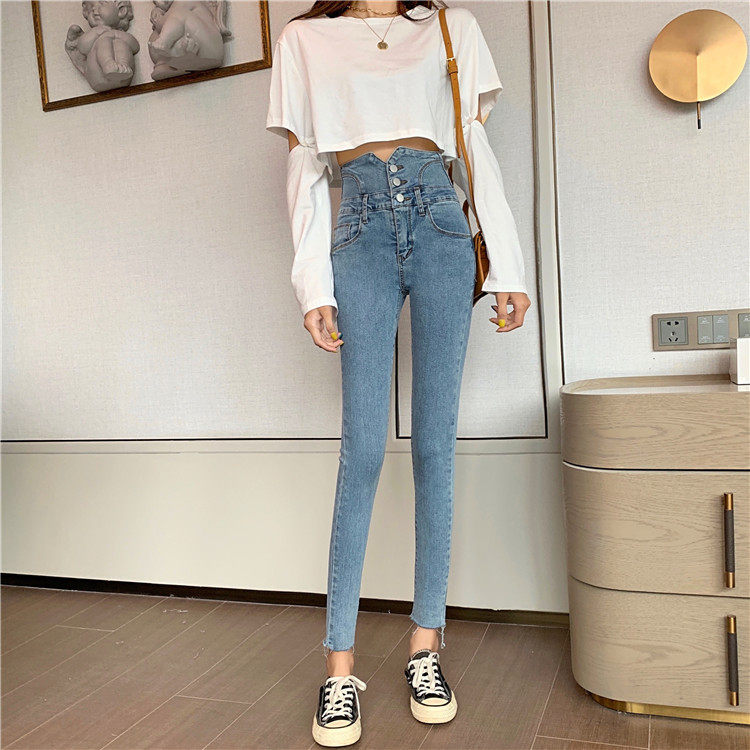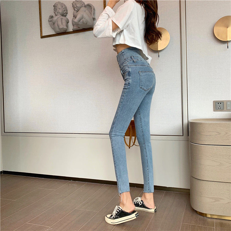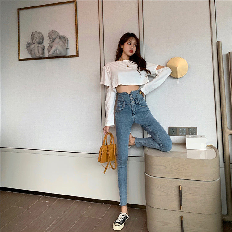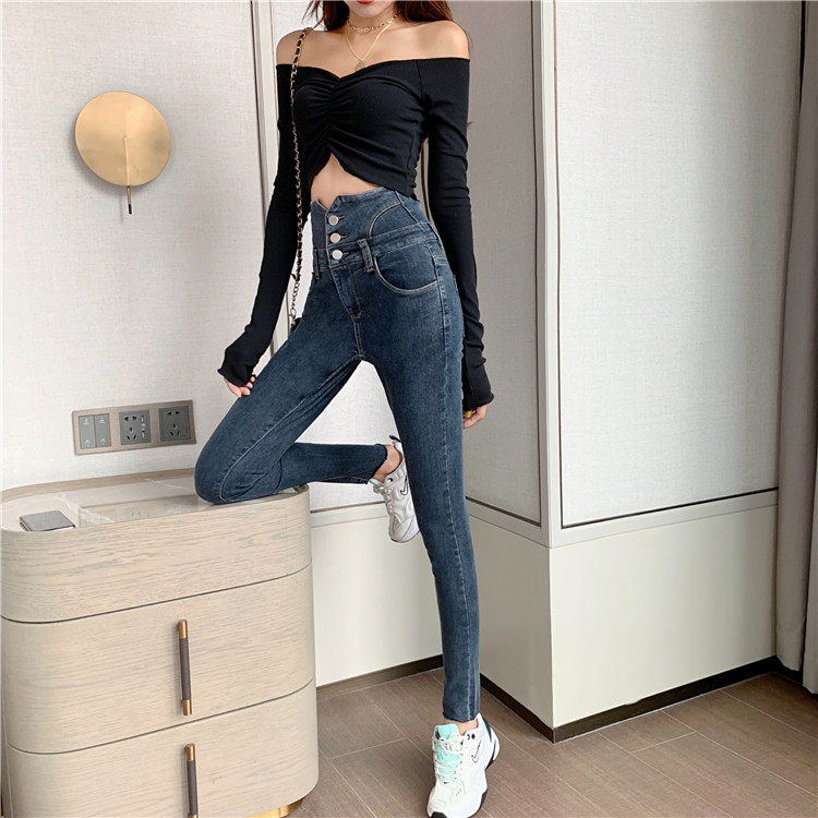 Весенние джинсы, штаны, приталенный эластичный карандаш, популярно в интернете, новая коллекция, высокая талия