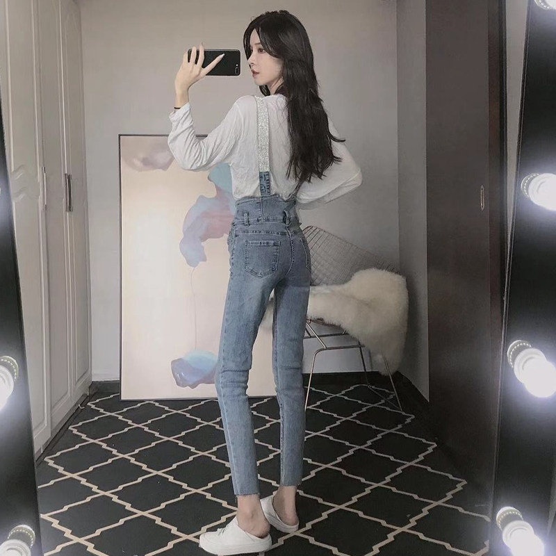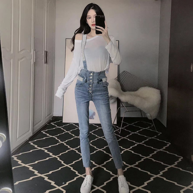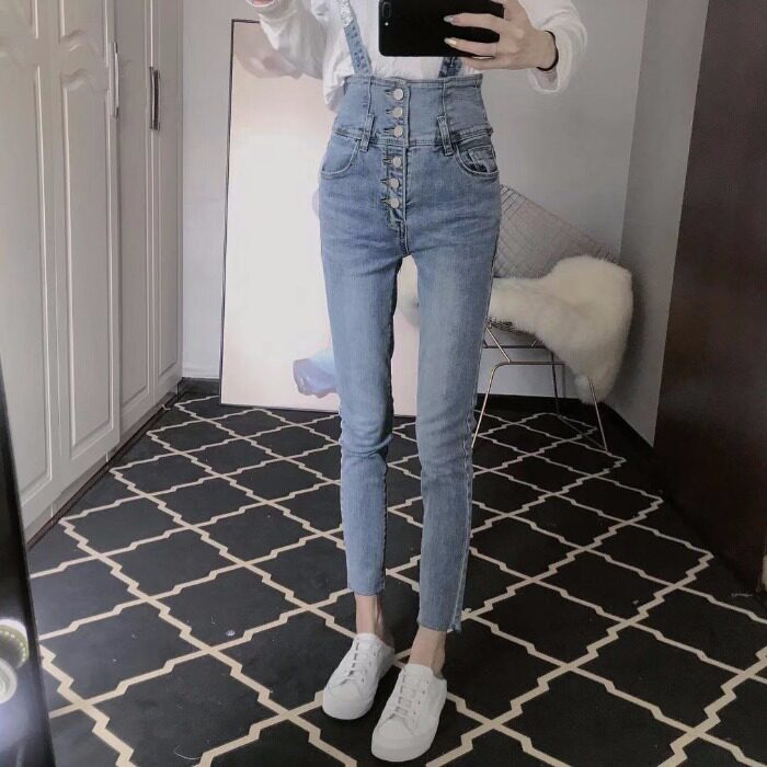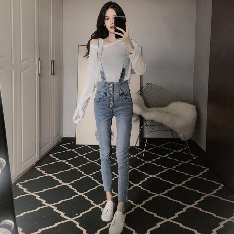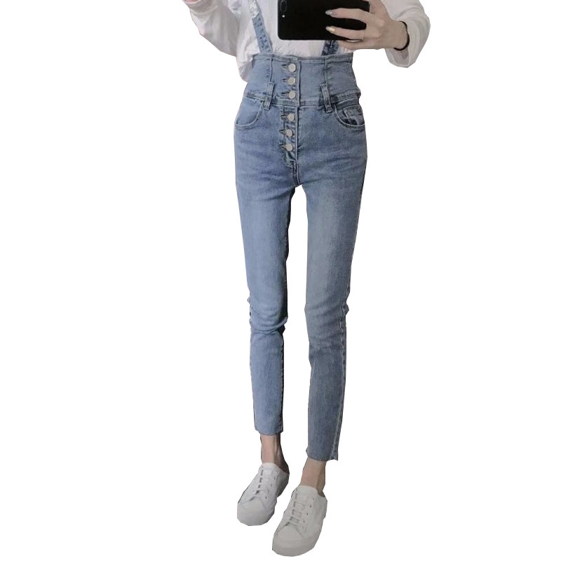 Весенние ретро джинсовые подтяжки, приталенные штаны, карандаш, высокая талия