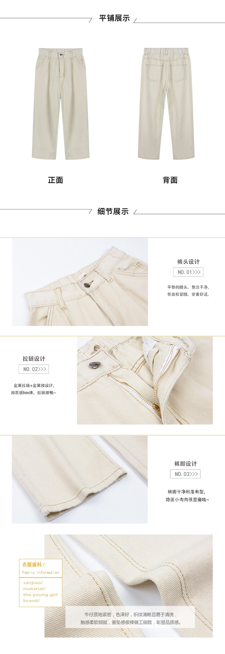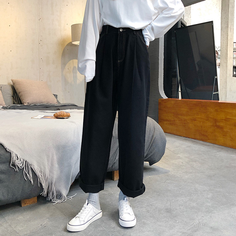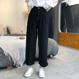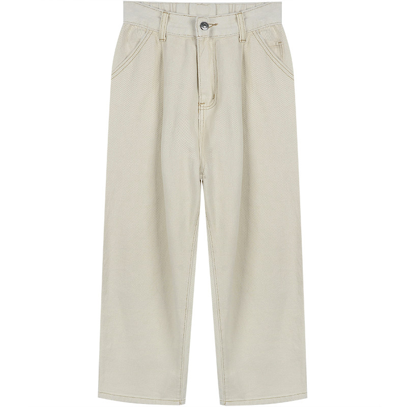 Бежевые цветные джинсовые джинсы, белые штаны для школьников, высокая талия, в корейском стиле, свободный прямой крой