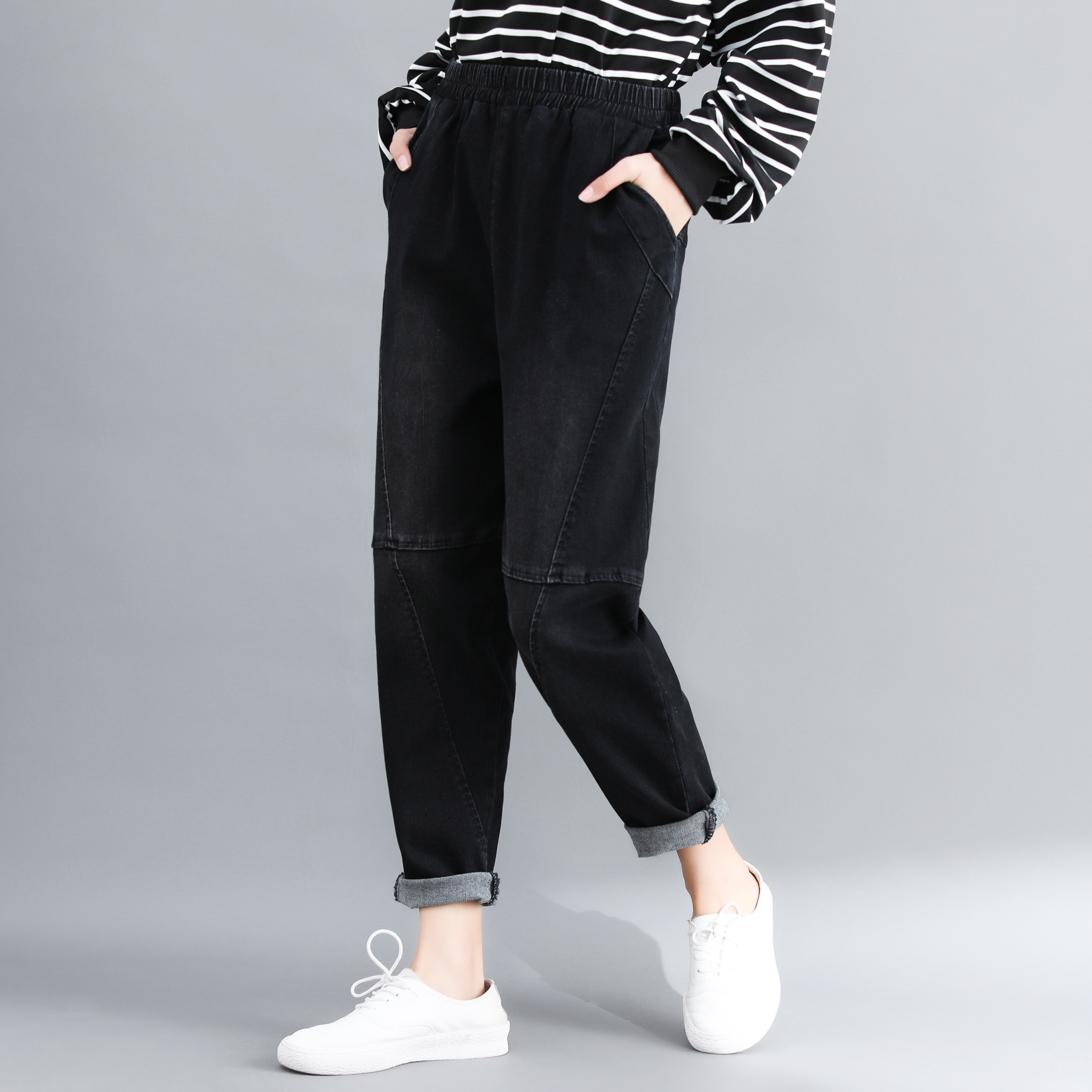 Ретро джинсы, штаны, осенние, оверсайз, большой размер, по фигуре