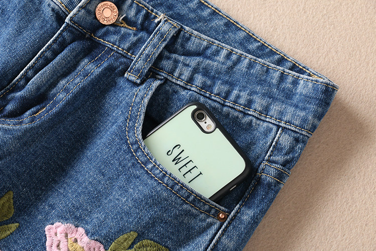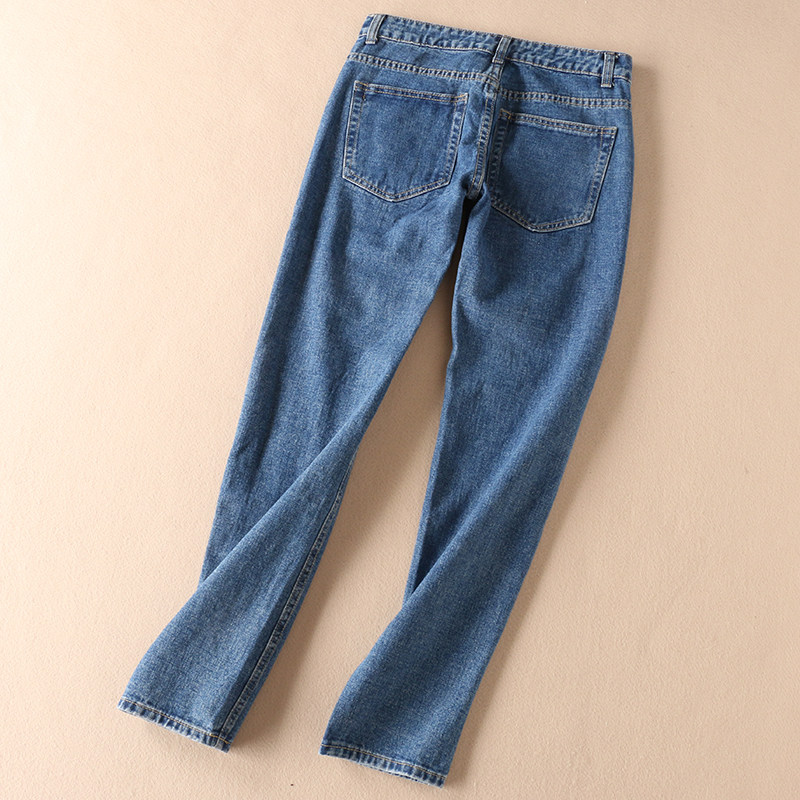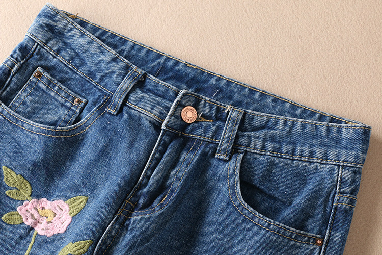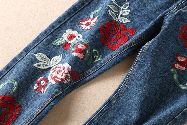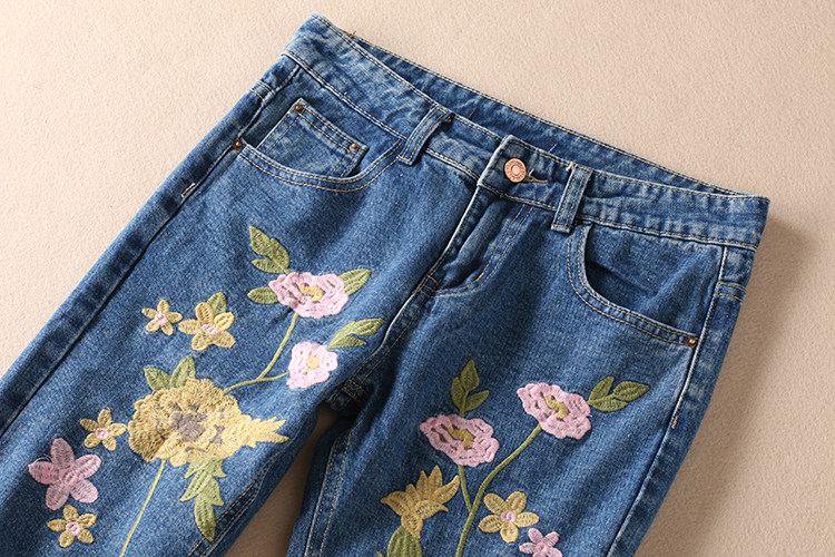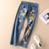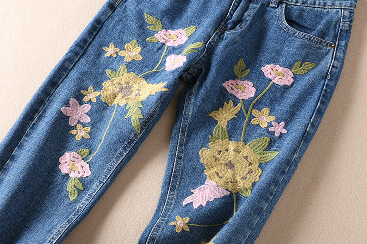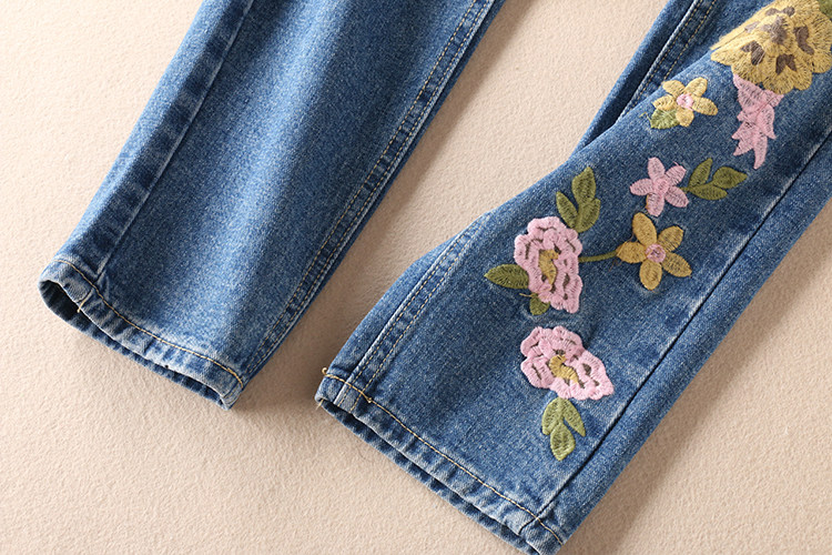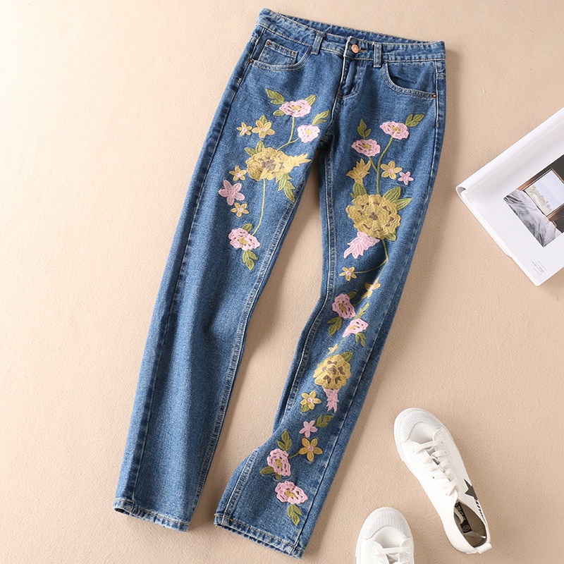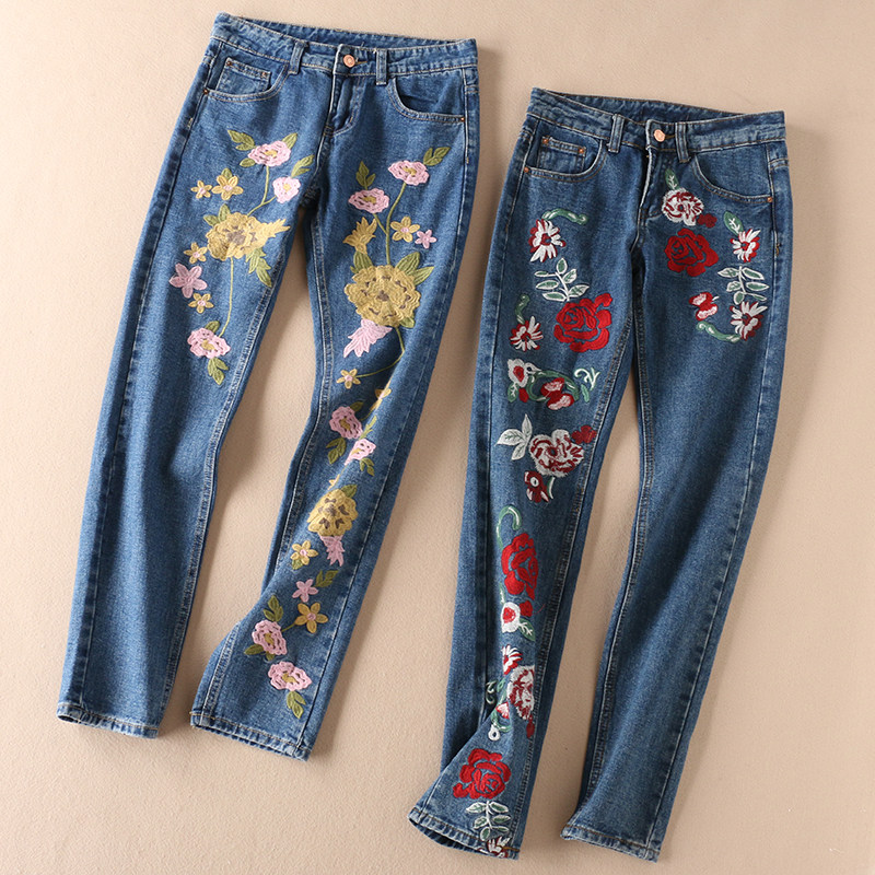 Этнические джинсы, осенние приталенные штаны, этнический стиль, с вышивкой, свободный прямой крой, средняя посадка