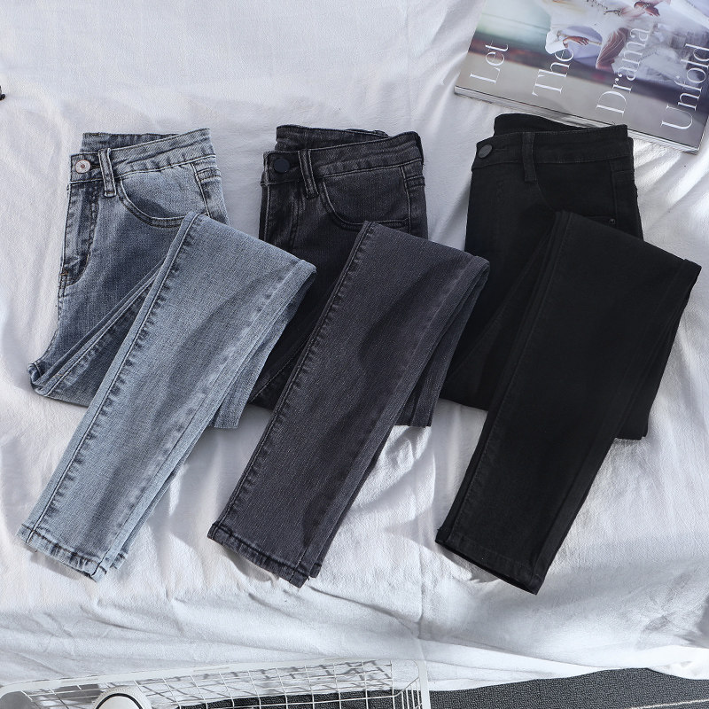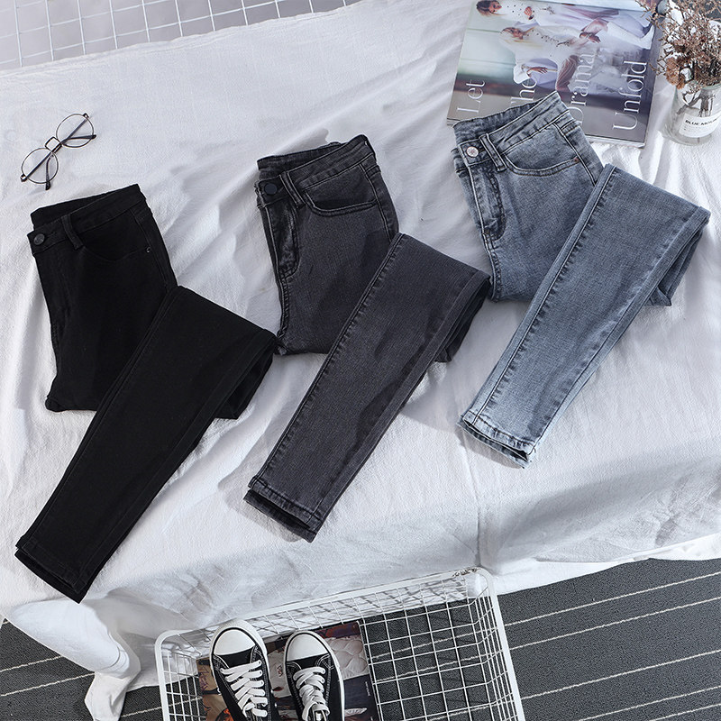 Черные цветные приталенные джинсы, осенние штаны, карандаш, высокая талия, в обтяжку, по фигуре, в корейском стиле, новая коллекция