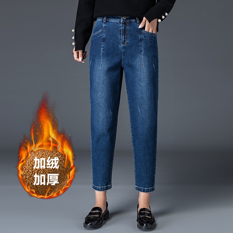 Джинсы, флисовые демисезонные утепленные штаны, в корейском стиле, 2019 года