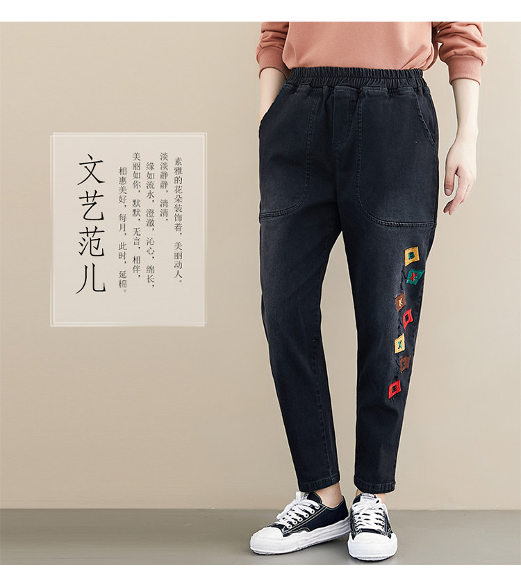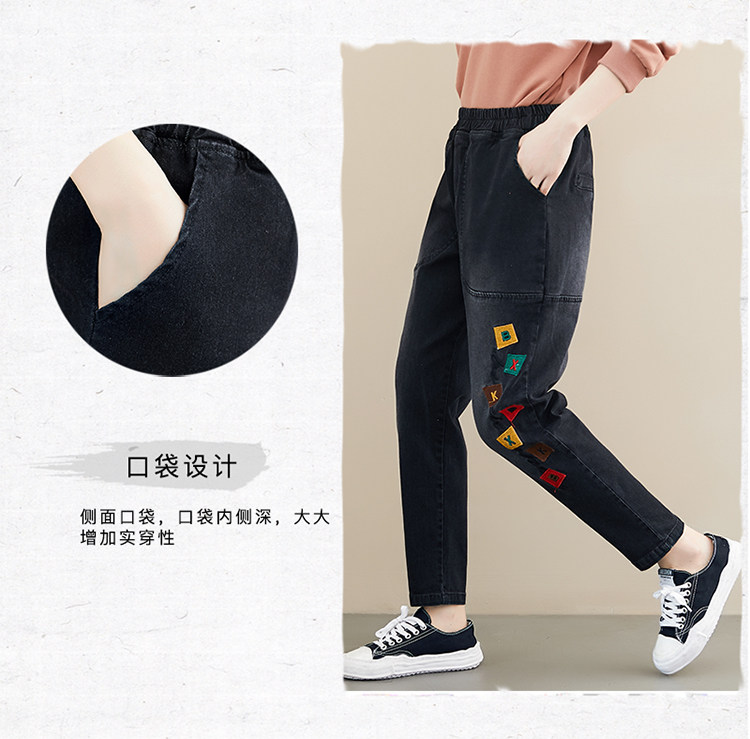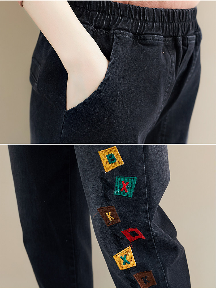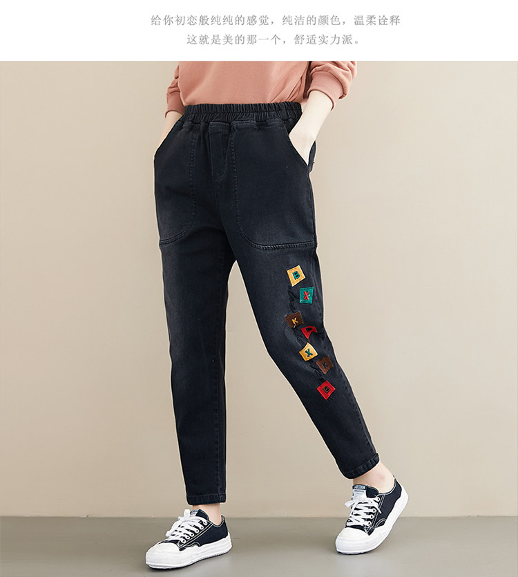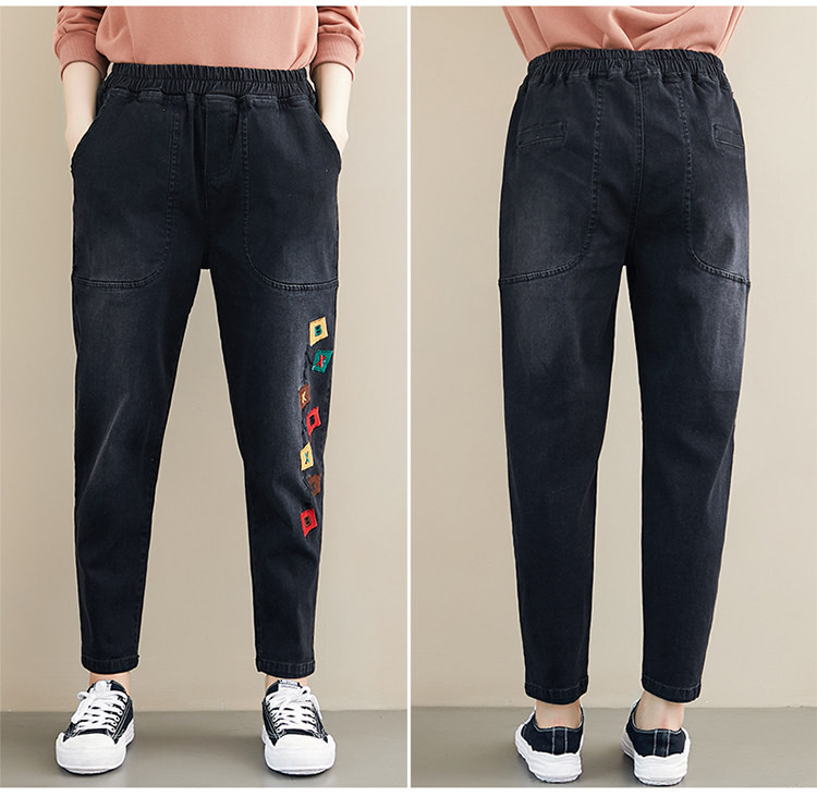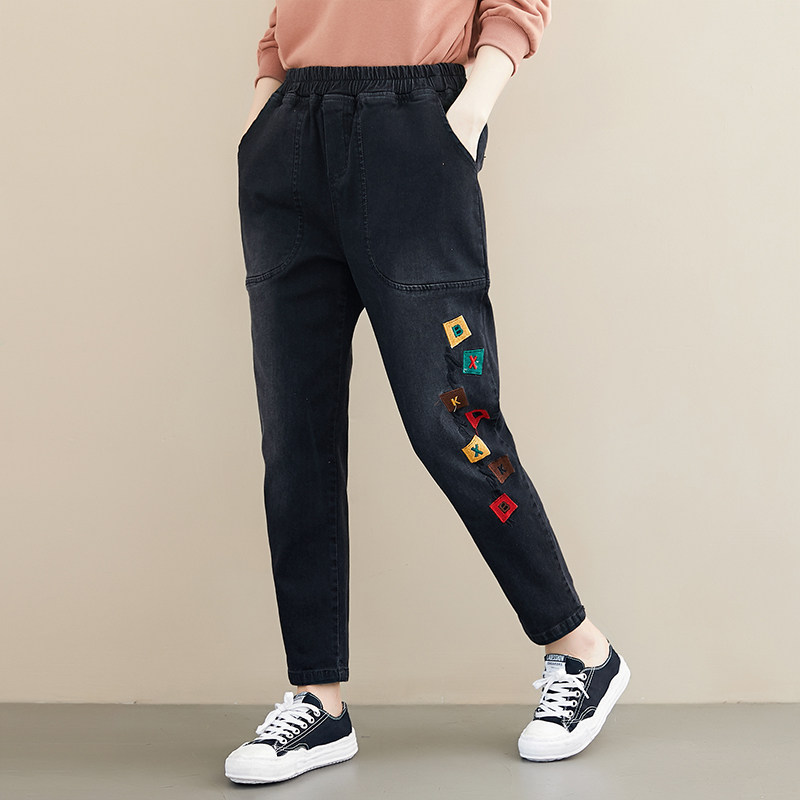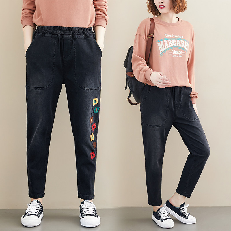 Весенние джинсы для отдыха, штаны, в корейском стиле, большой размер, с вышивкой, эластичная талия