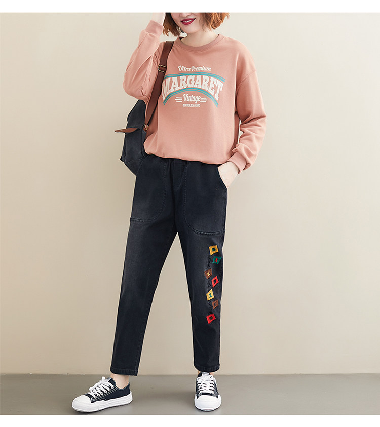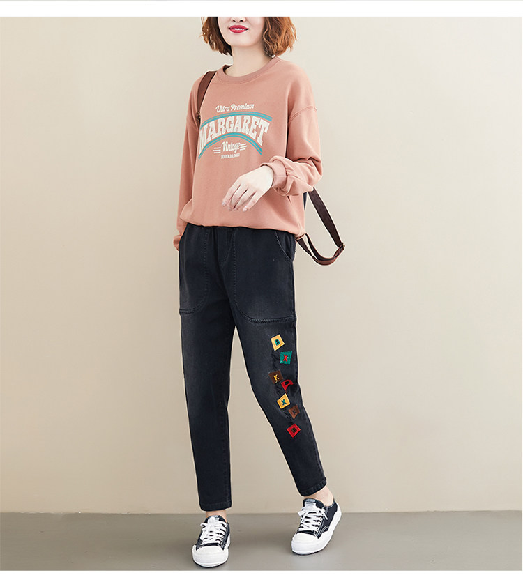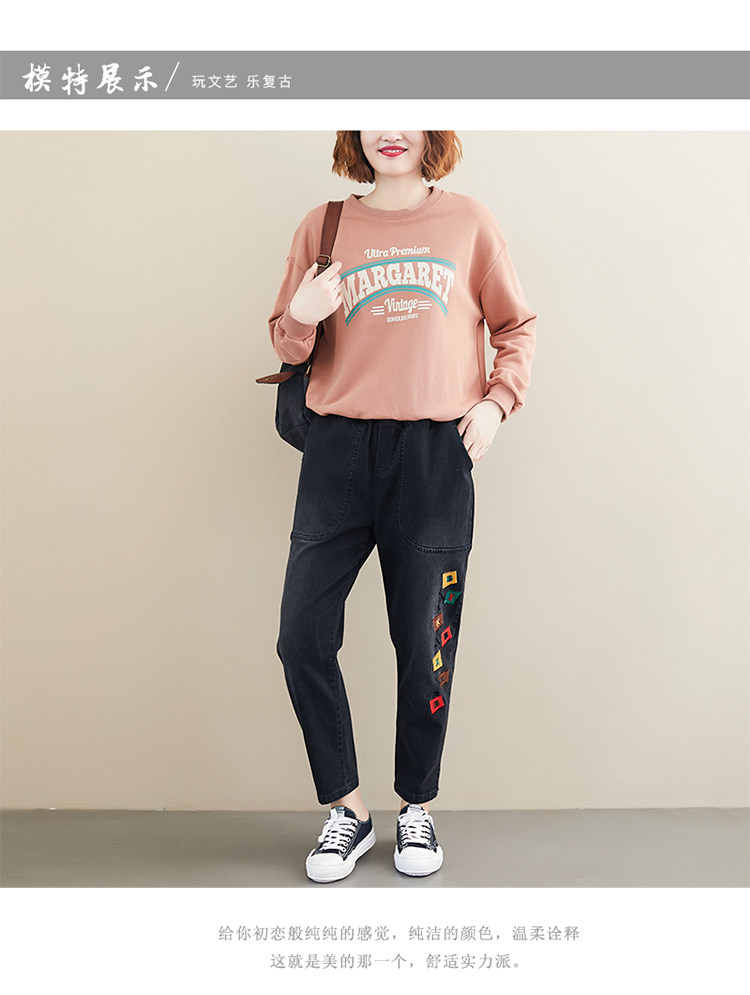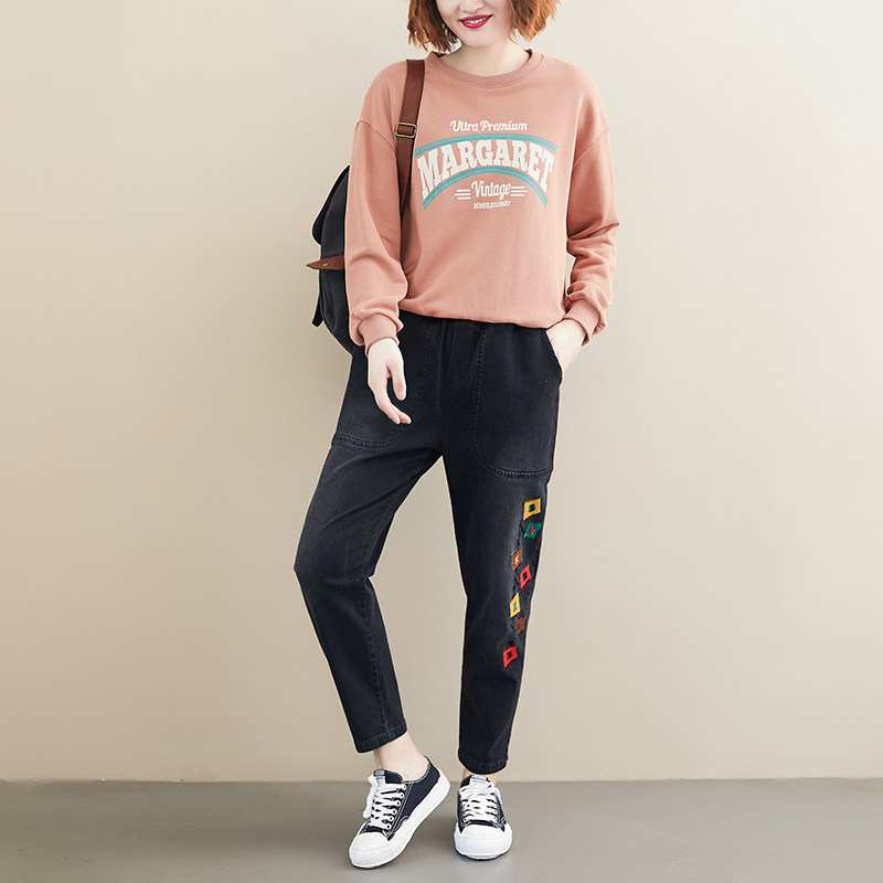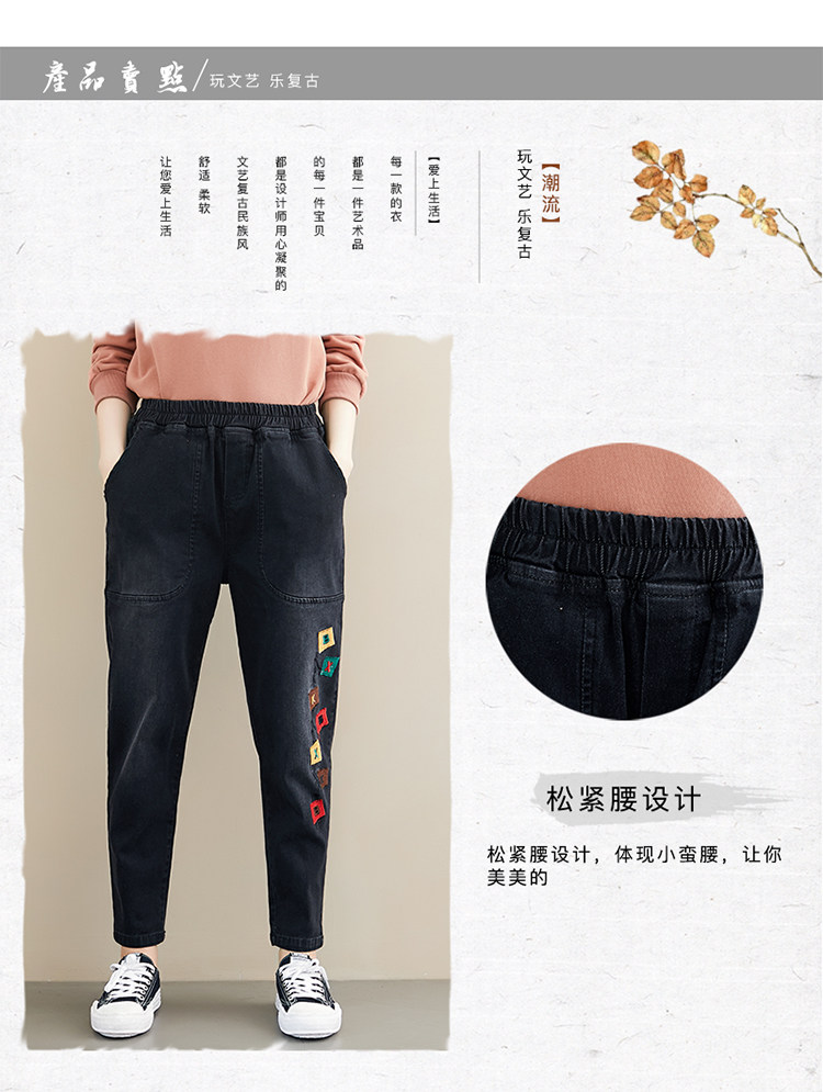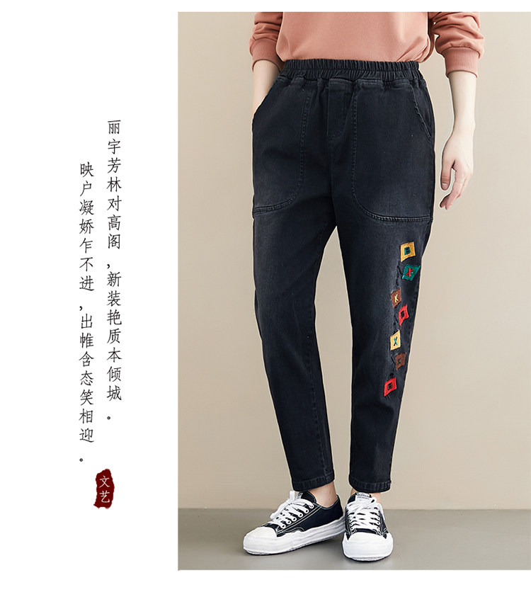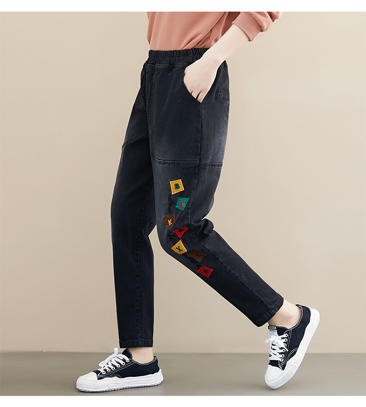 Весенние джинсы для отдыха, штаны, в корейском стиле, большой размер, с вышивкой, эластичная талия