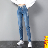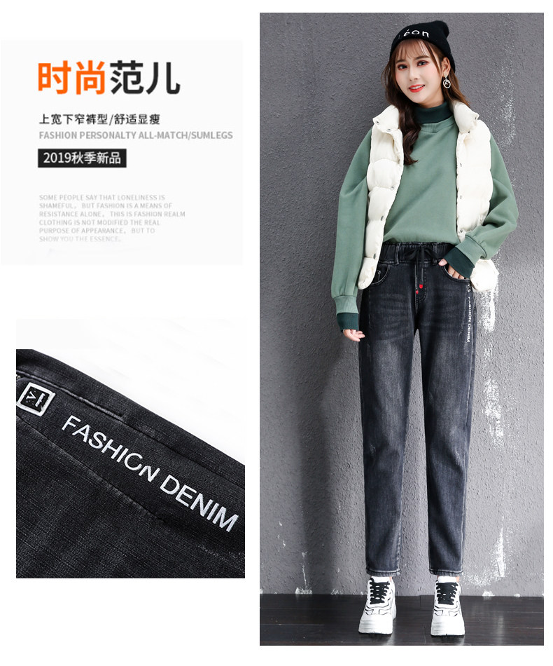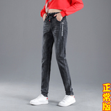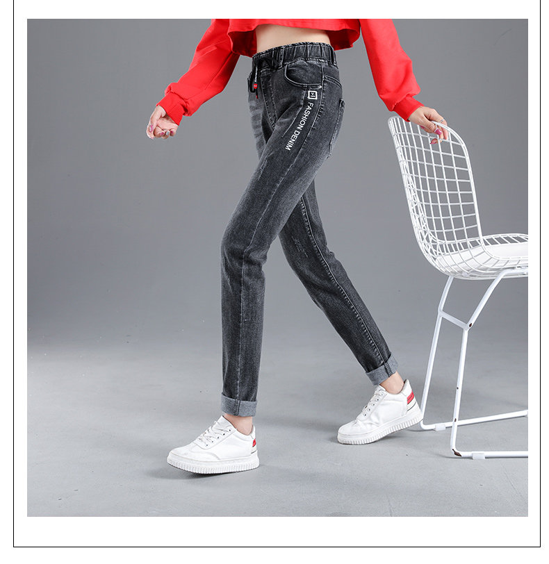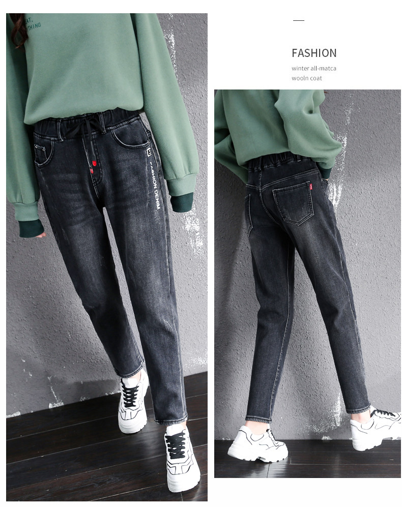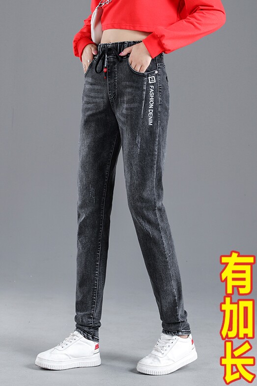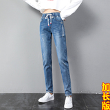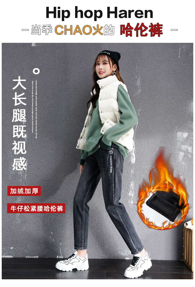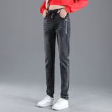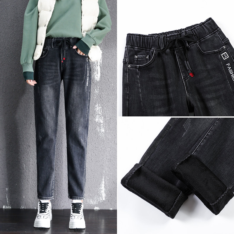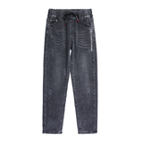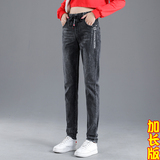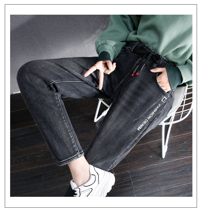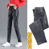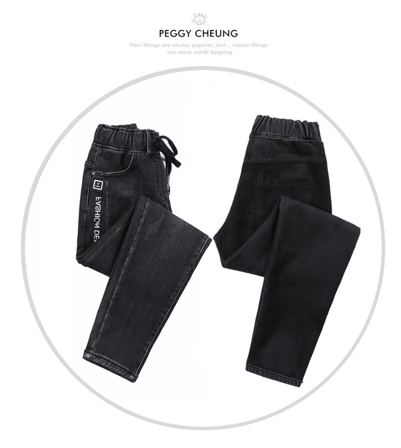 Осенние длинные джинсы, флисовые зимние штаны для школьников, высокая талия