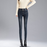Джинсы, демисезонные приталенные штаны, универсальный флисовый карандаш, 2019, в обтяжку