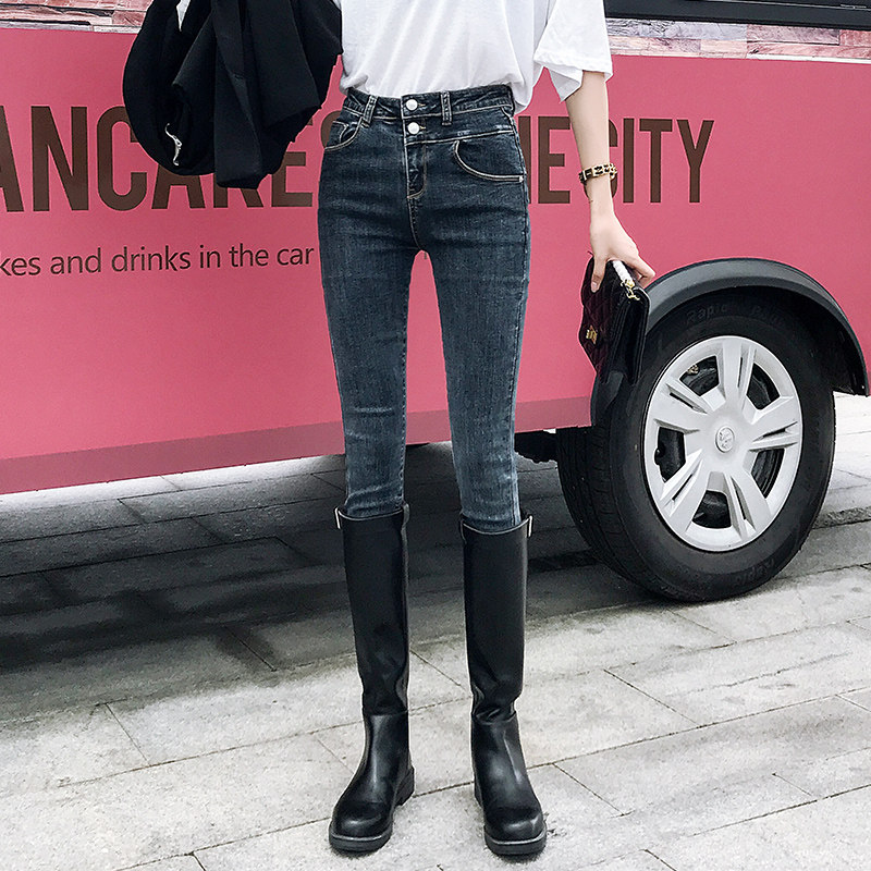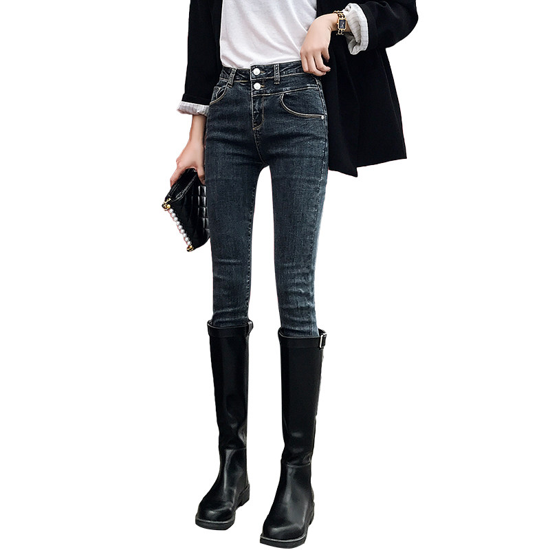 Джинсы, утепленные приталенные черные штаны, коллекция 2021, высокая талия, в обтяжку