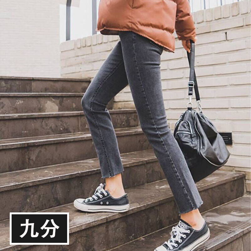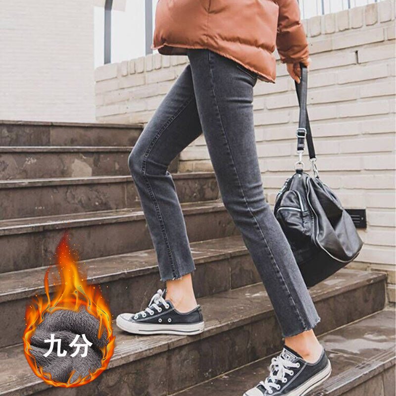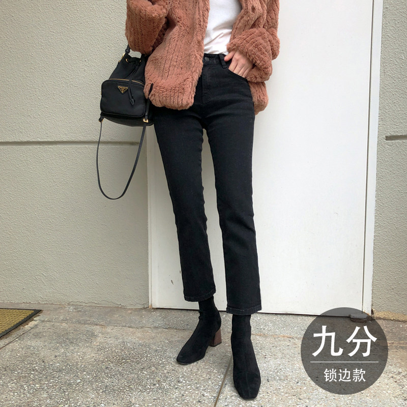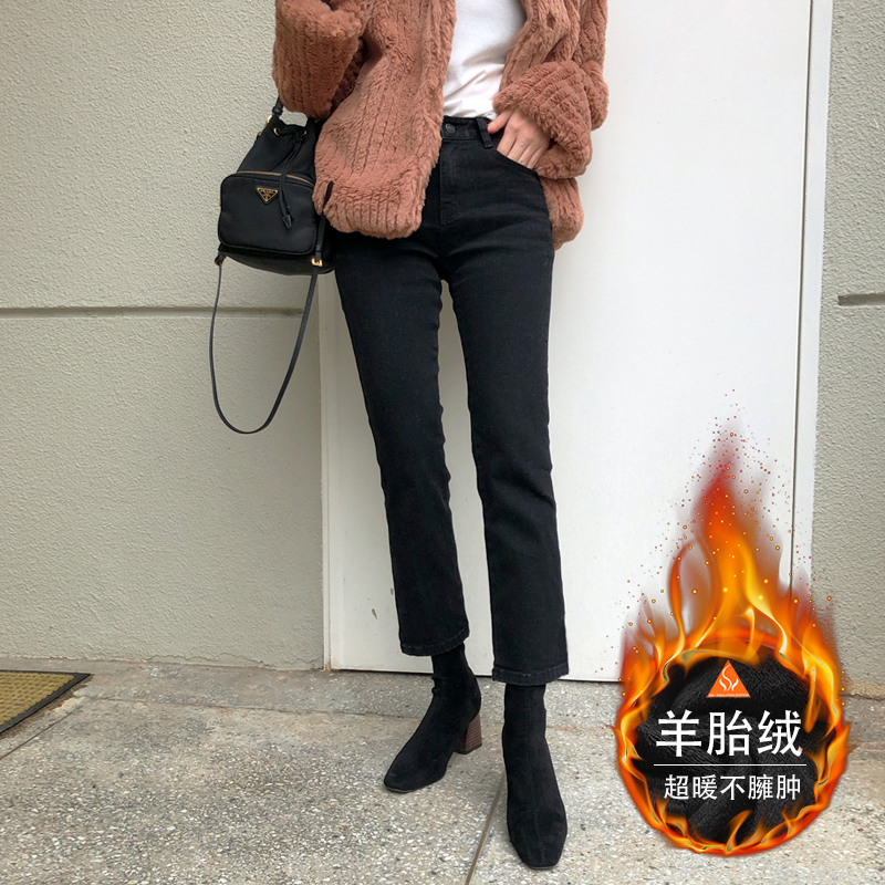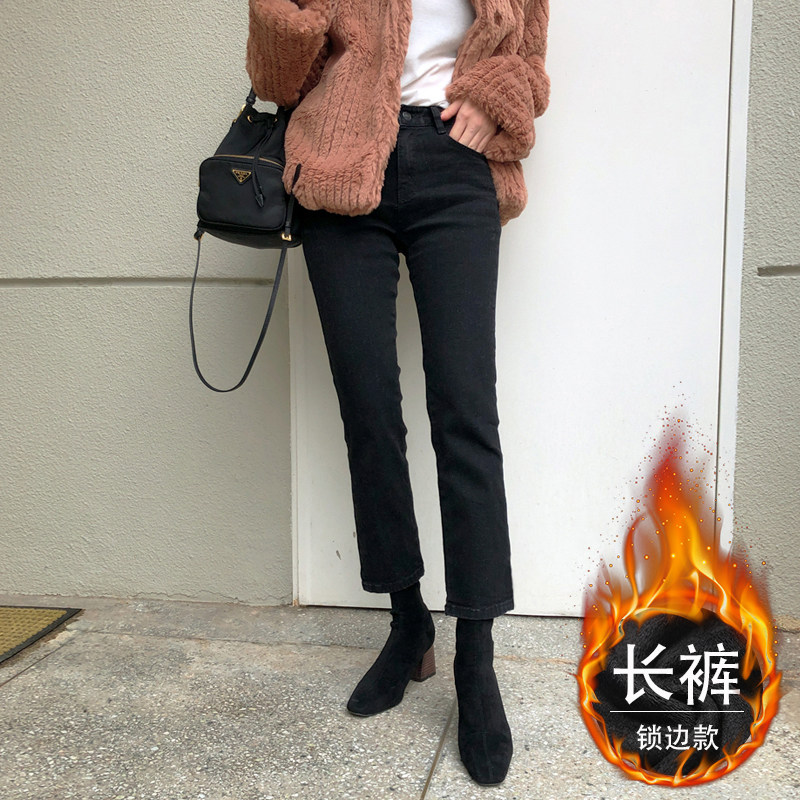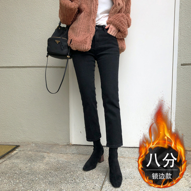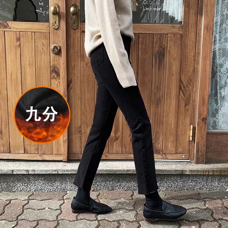 Демисезонные черные джинсы, утепленные штаны, высокая талия, свободный прямой крой