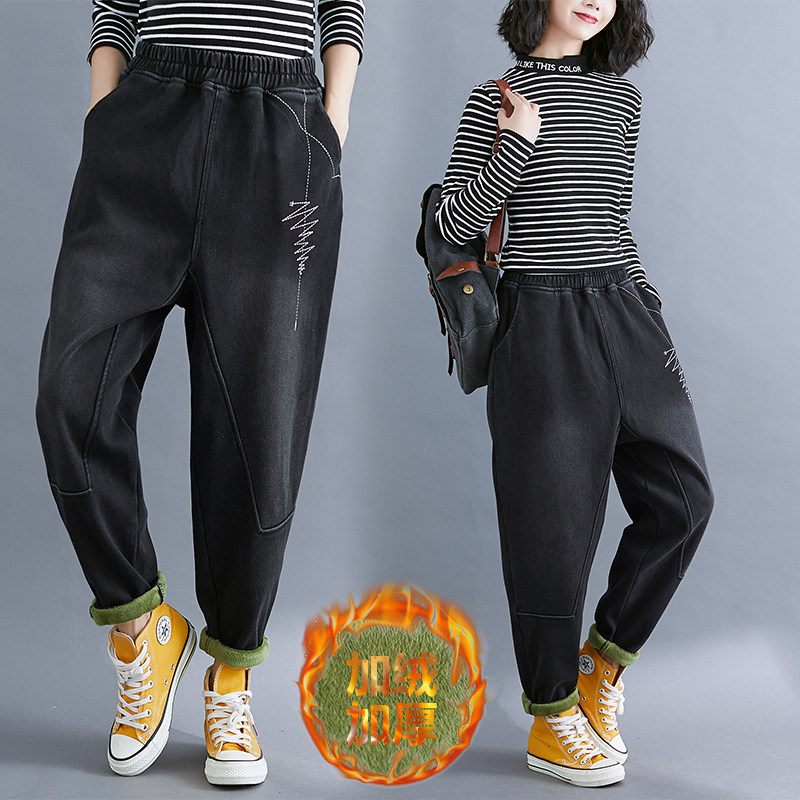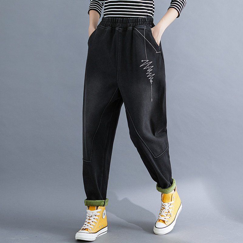 Джинсы, зимние утепленные штаны, высокая талия, большой размер, по фигуре
