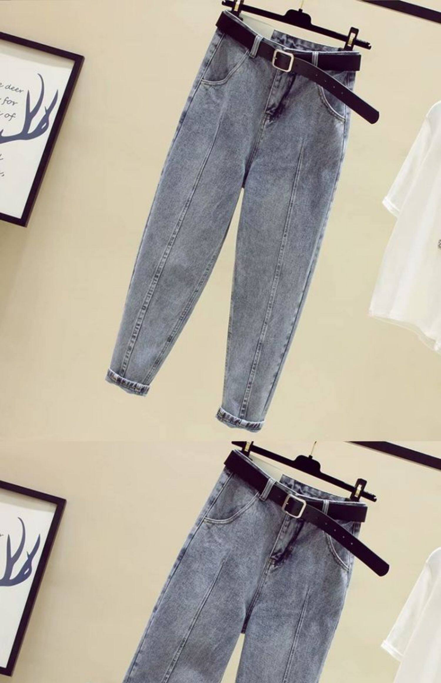 Джинсы, осенние штаны для школьников, большой размер, в корейском стиле, свободный прямой крой