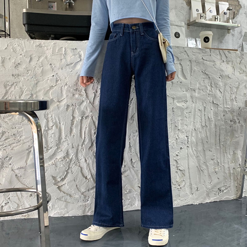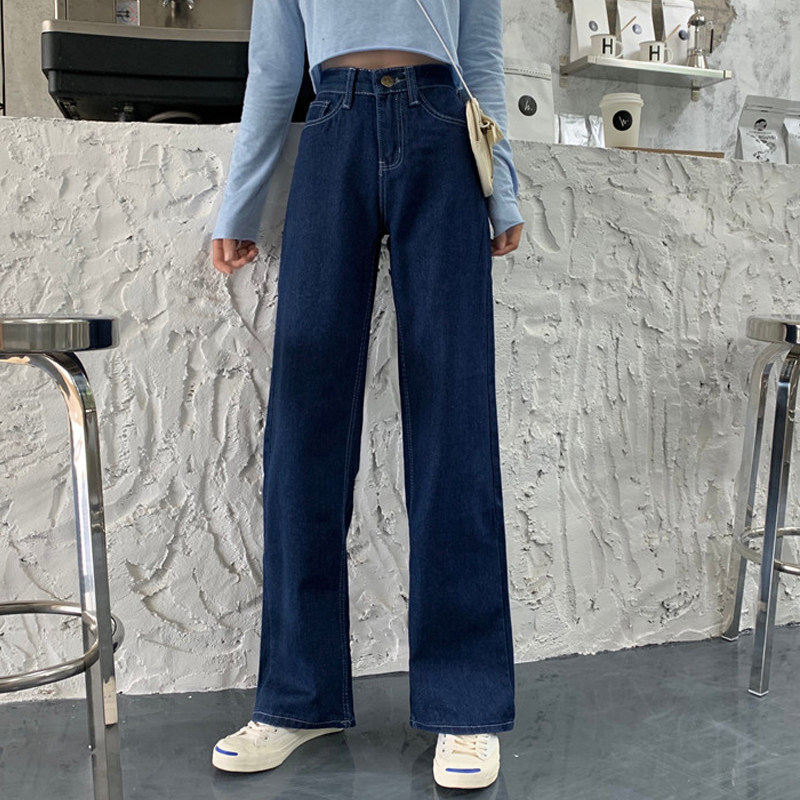 Летние темно-синие джинсы, приталенные штаны, 2020, высокая талия, свободный прямой крой