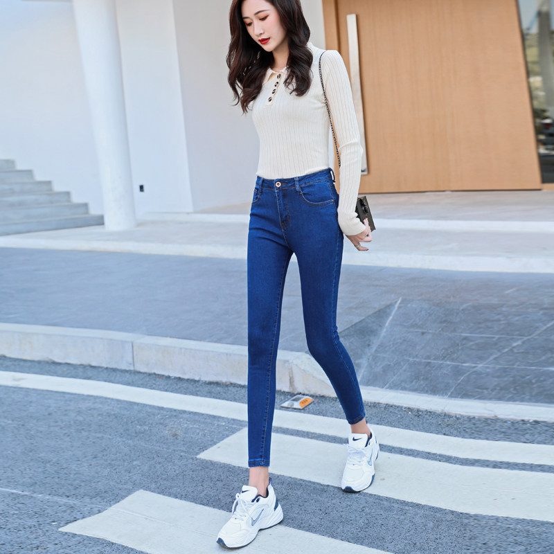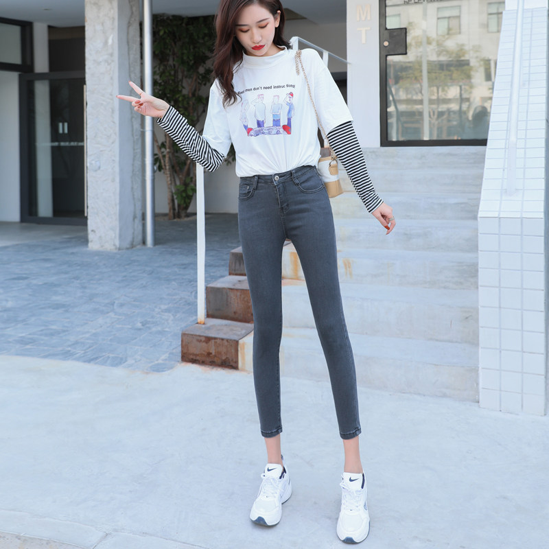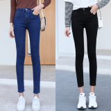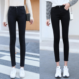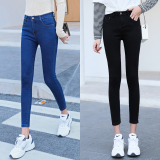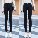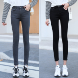 Джинсы, осенние черные штаны, высокая талия, 2020, в корейском стиле, по фигуре, в обтяжку