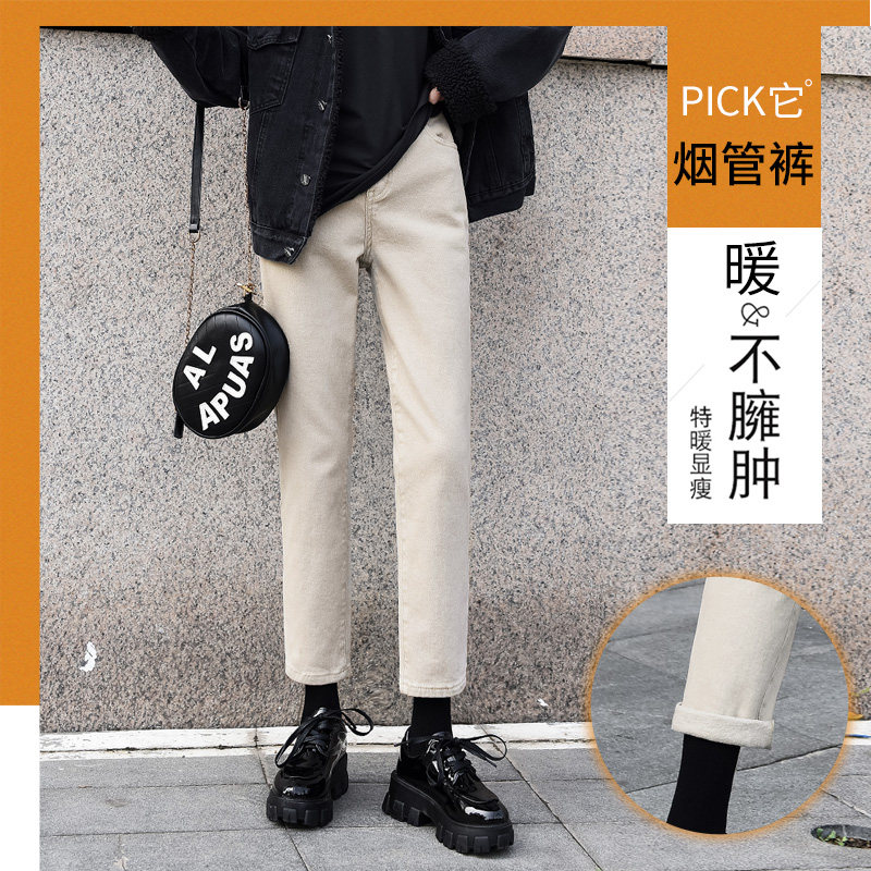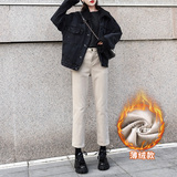 Флисовые джинсы с начесом, демисезонные черные штаны, свободный прямой крой, высокая талия