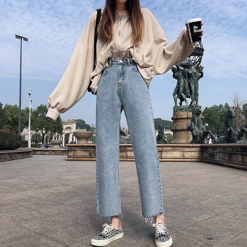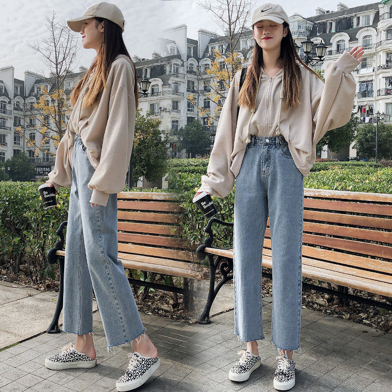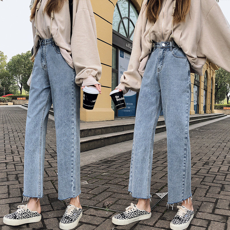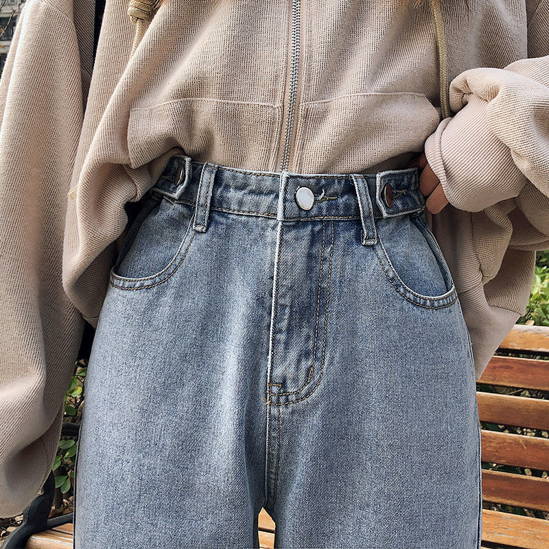 Джинсы, штаны, свободный прямой крой, высокая талия, большой размер, подходит для полных девушек