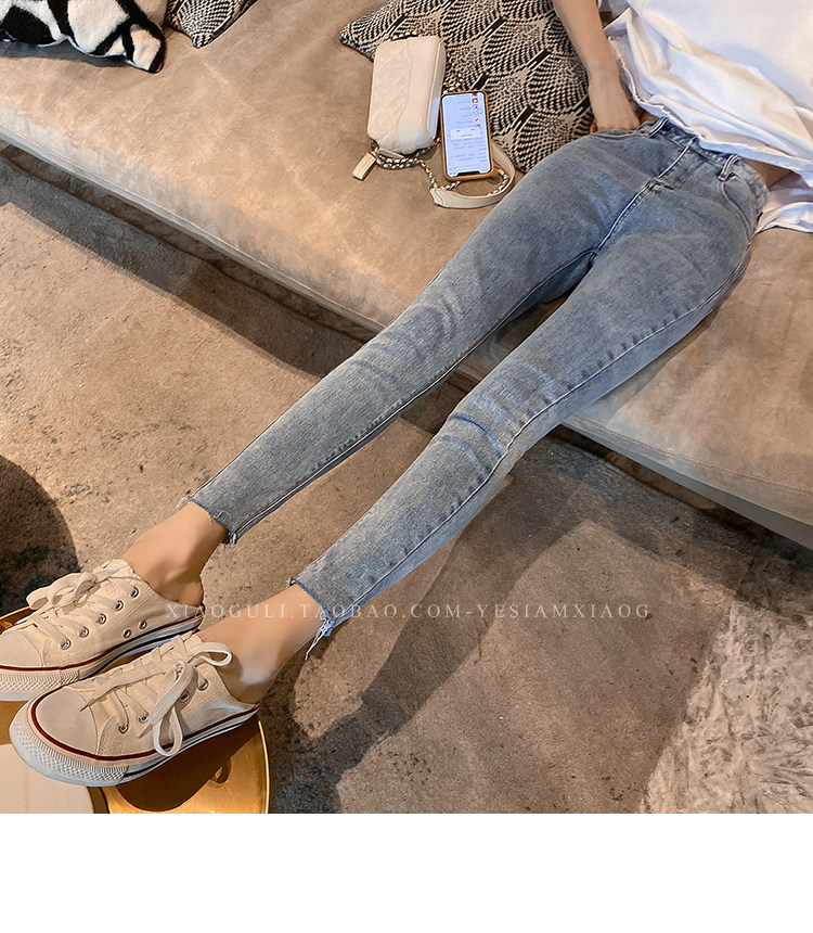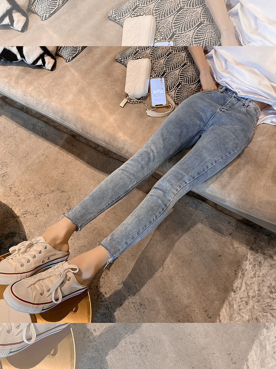 Джинсы, приталенные штаны, универсальный синий карандаш, в обтяжку