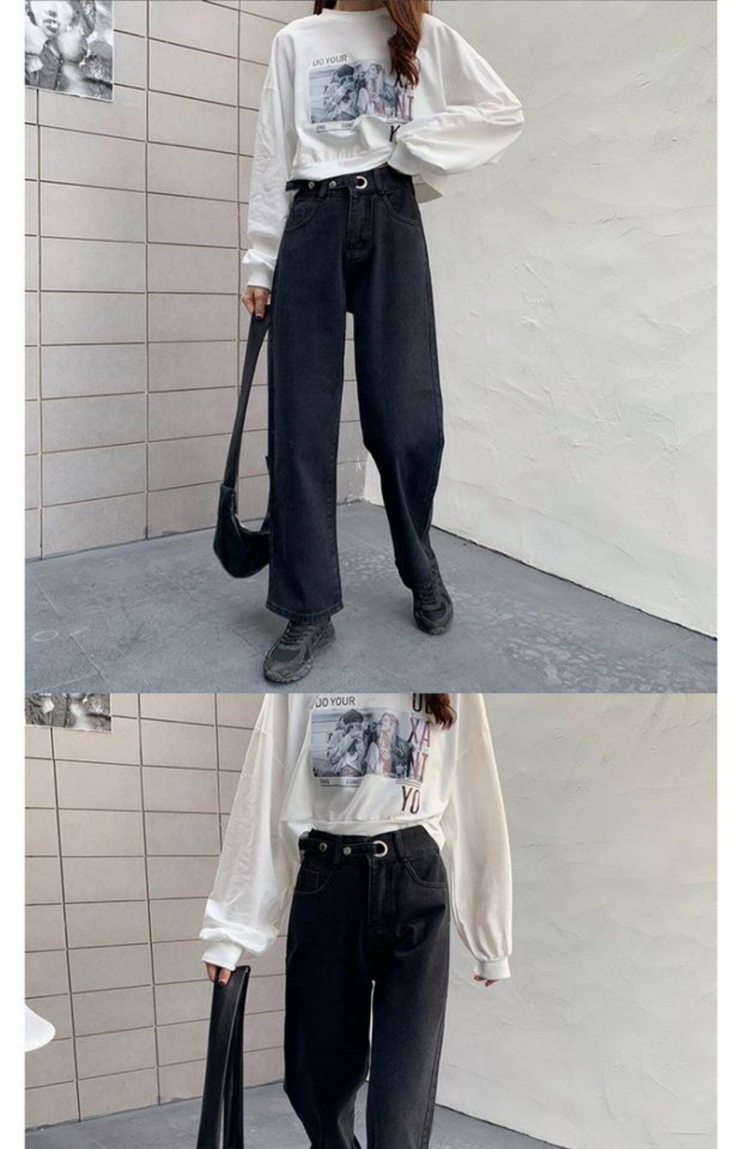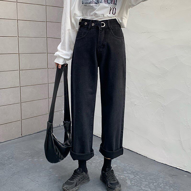 Осенние джинсы, штаны, большой размер, высокая талия, свободный прямой крой