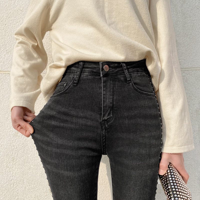 Трендовые высокие джинсы, осенние штаны, карандаш, сапоги, высокая талия, коллекция 2021, по фигуре, в обтяжку
